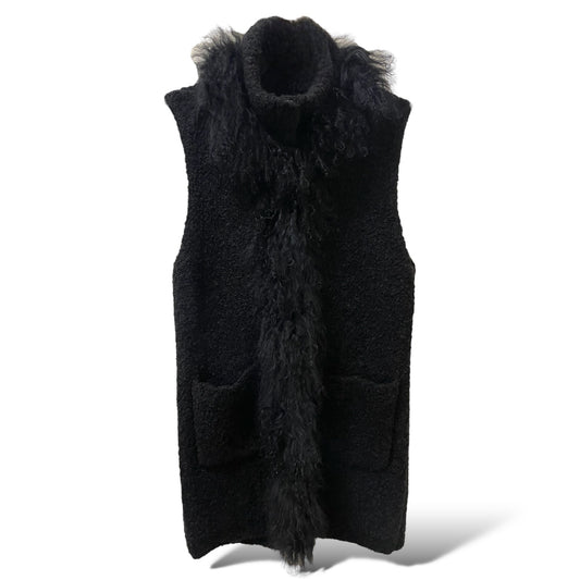 DOLCE CABO Wool Vest with Real Tibet Lamb Fur Trim |Size: M|