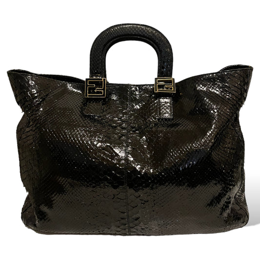 FENDI Vintage Exotic Twins Tote in Black Genuine Python