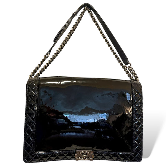 CHANEL Reverso Boy Flap Bag Patent Large in Midnight Blue