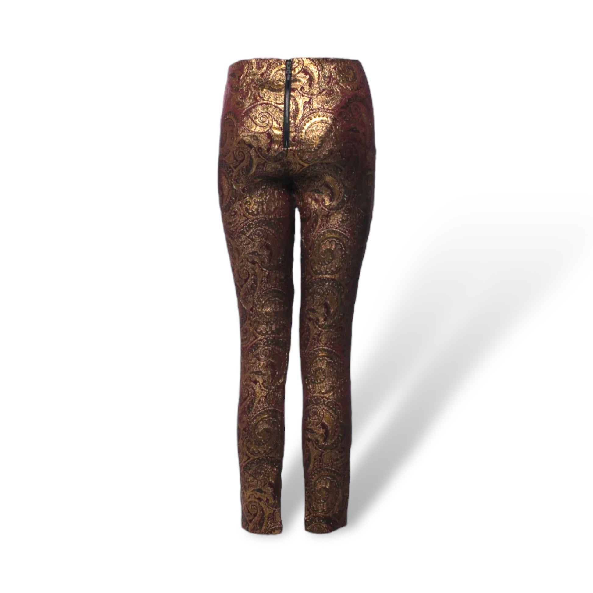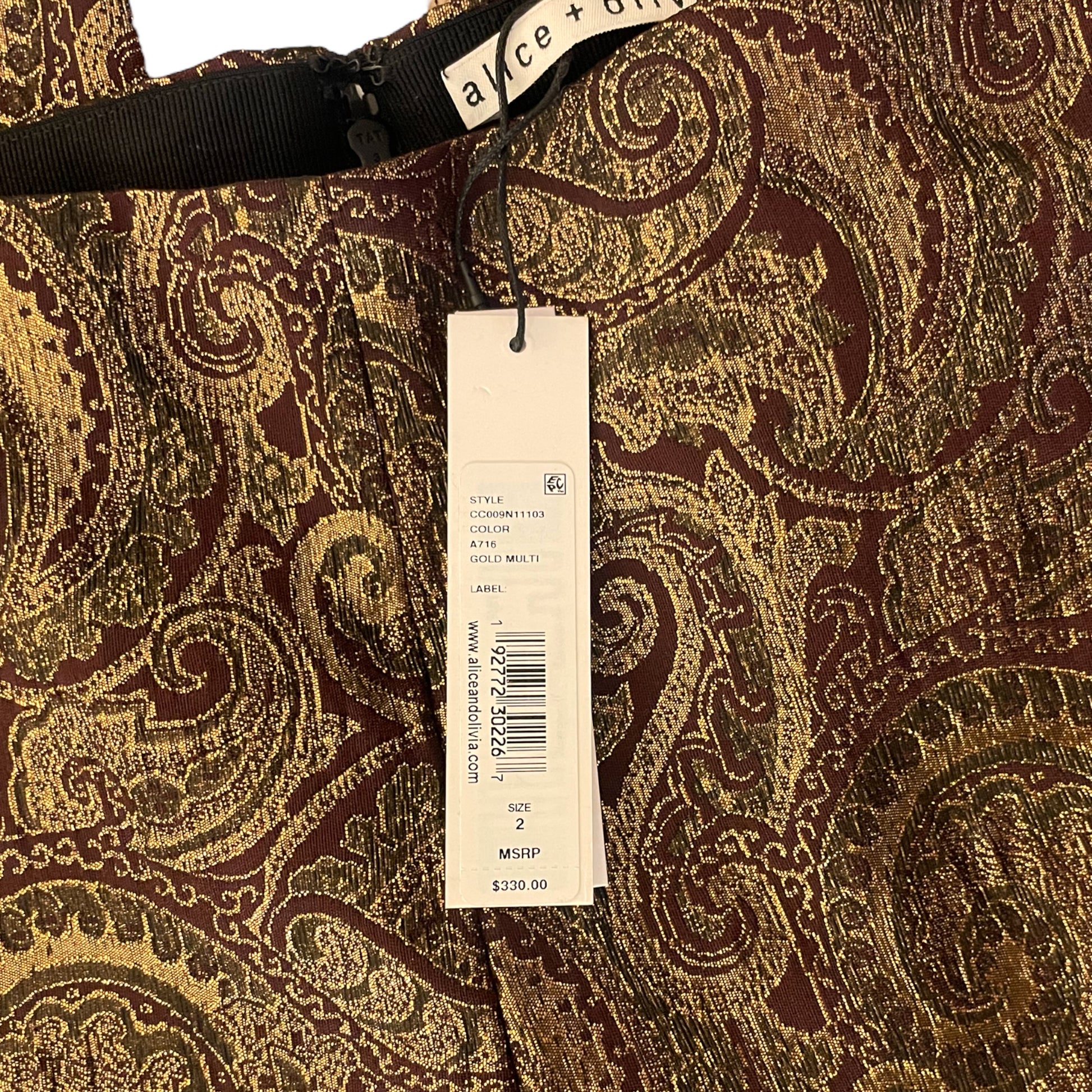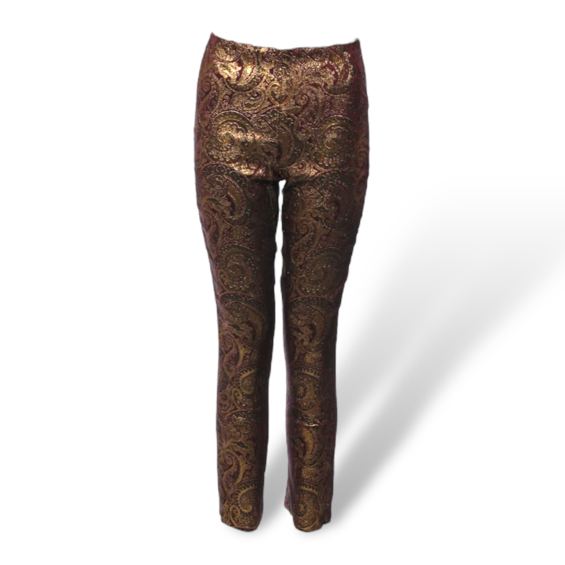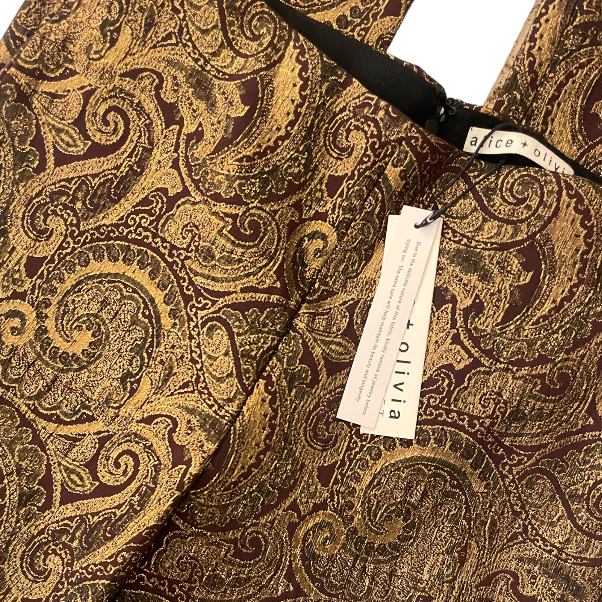 Alice + Olivia Gold Lamè Paisley Printed Straight Leg Pants |Size: 2|