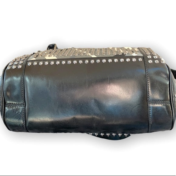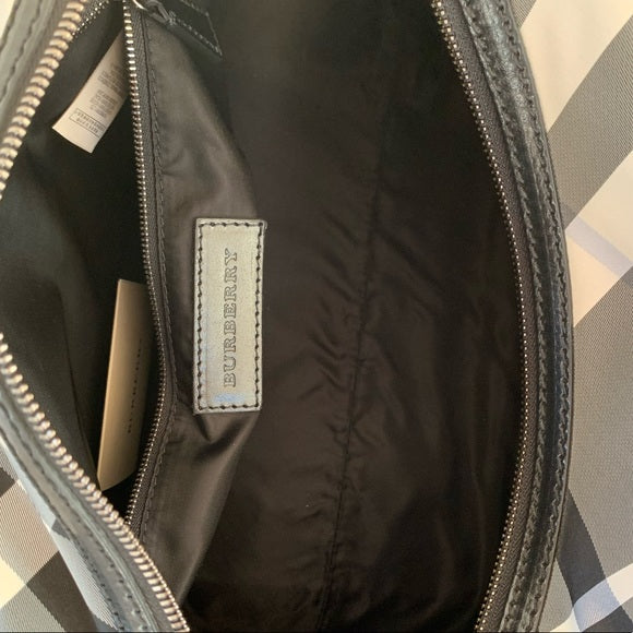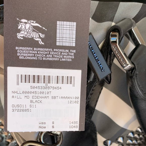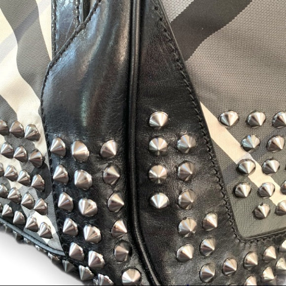 BURBERRY Nylon Beat Check Studded Medium Edenham Satchel Black