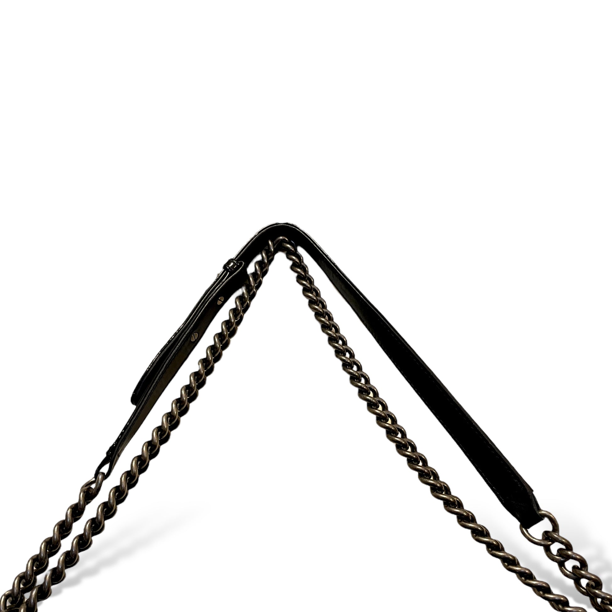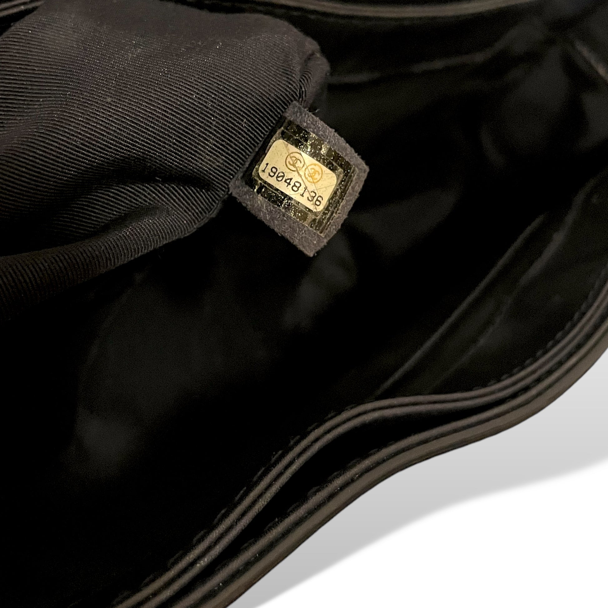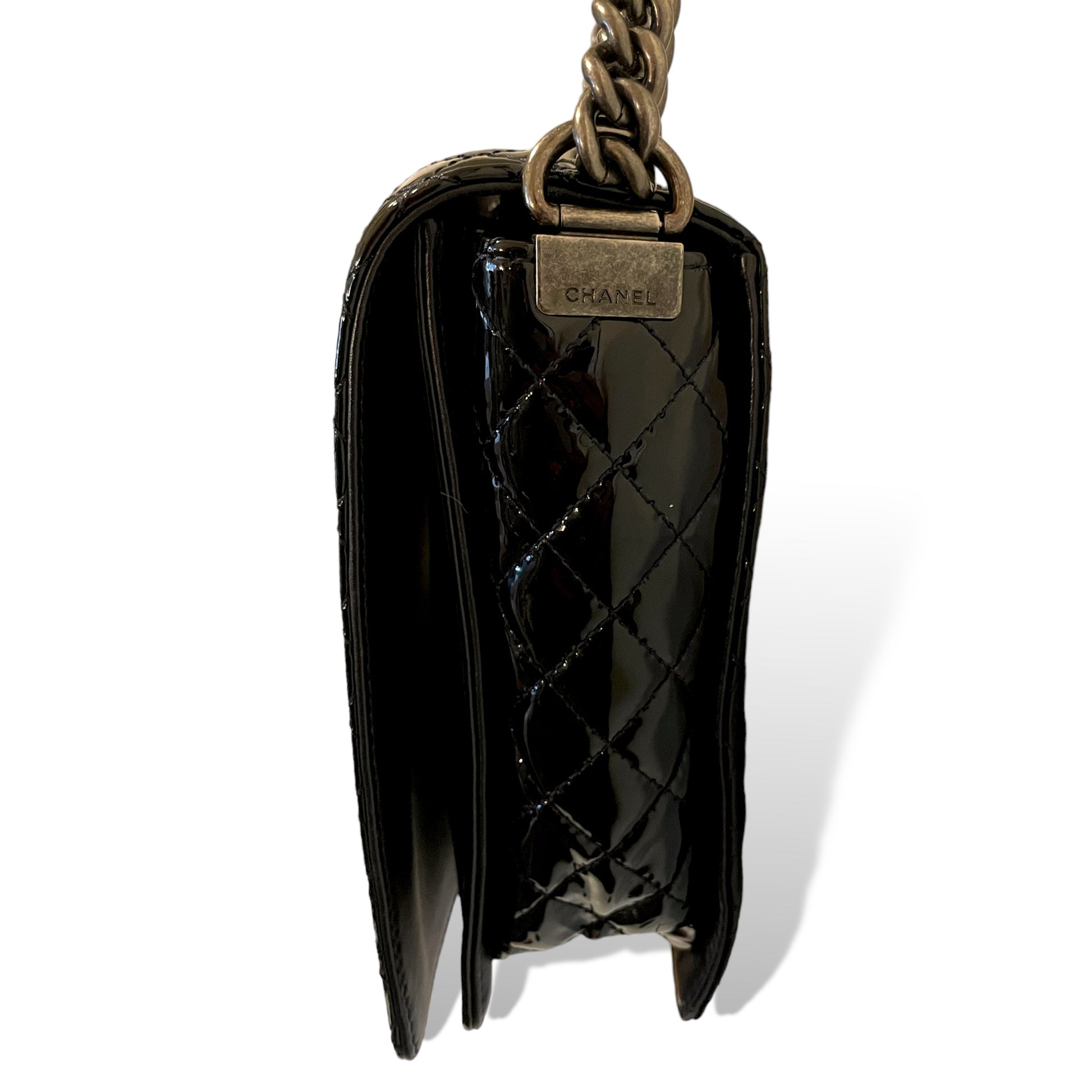 Crafted with the highest attention to detail, this Chanel Reverso Boy Flap Bag Patent Large is a  timeless investment piece that will elevate any outfit and last for years to come.