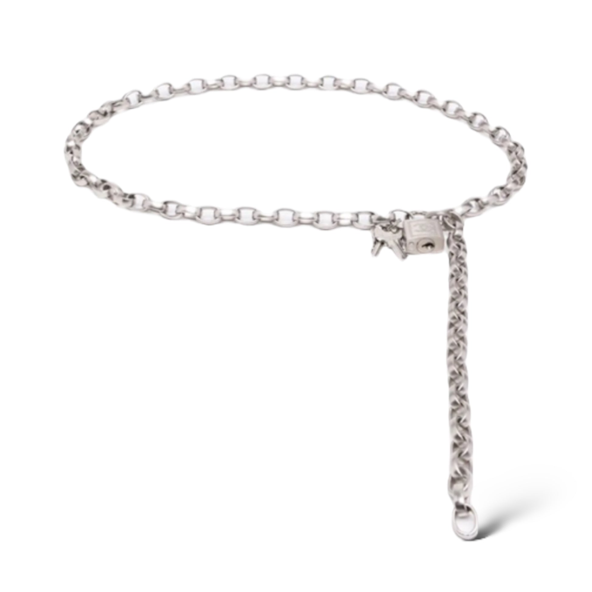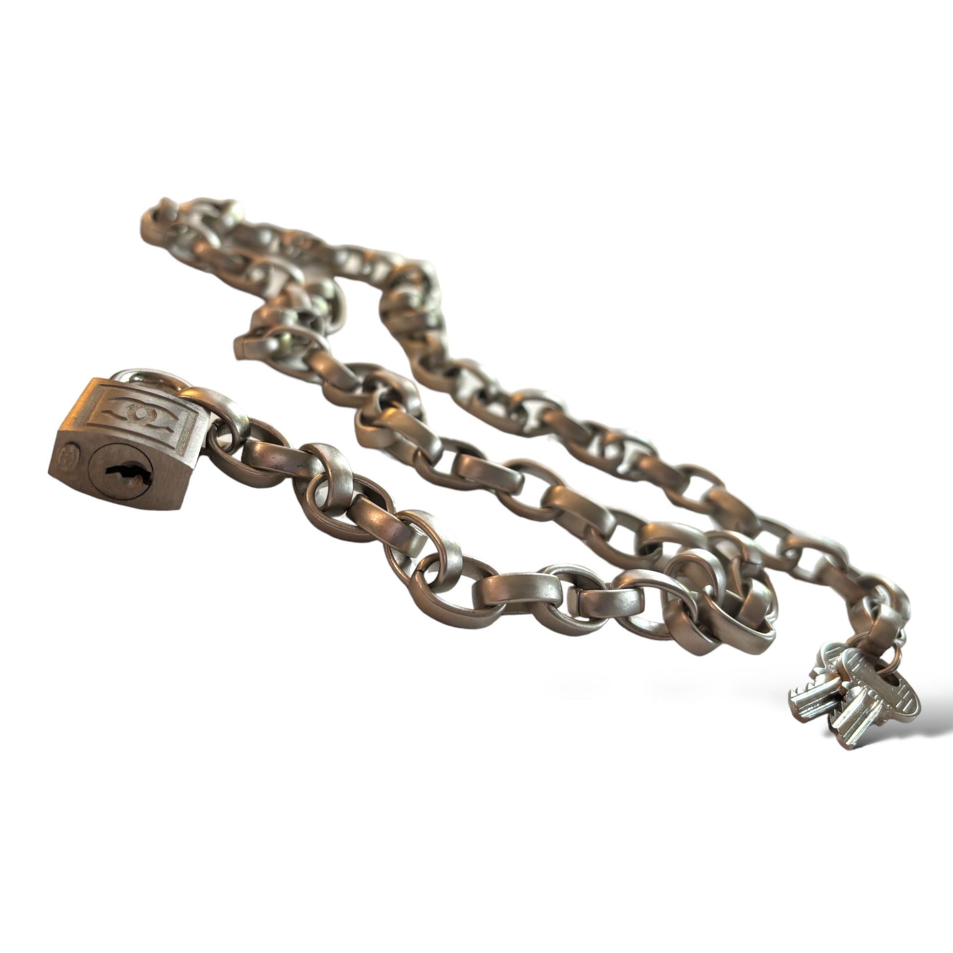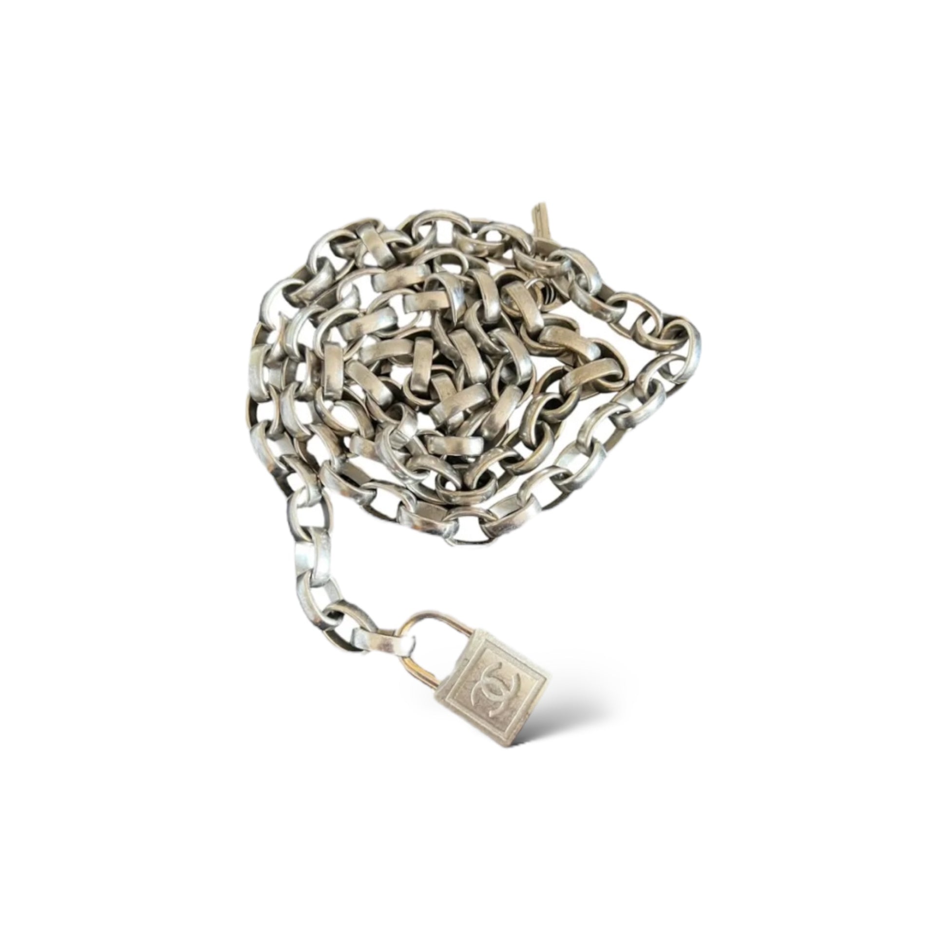 CHANEL 2003 CC Logo Padlock Chainlink Belt/Necklace in Silver