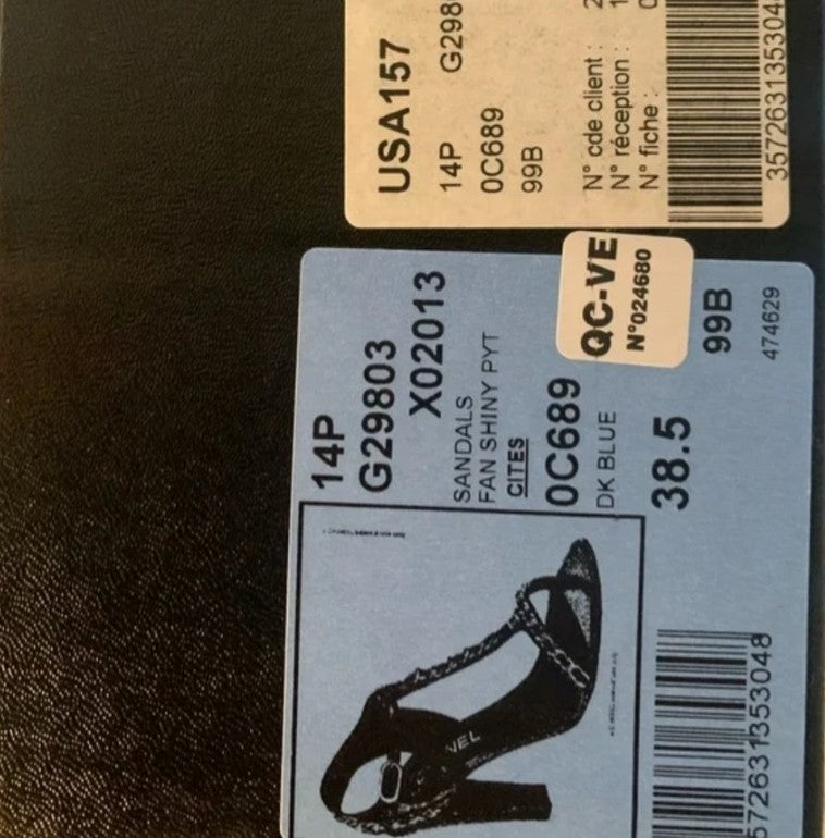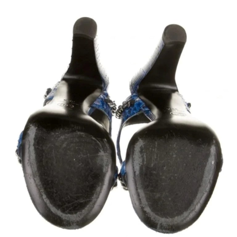 CHANEL Blue Python Heels Chainlink Detail/CC Logo |size: EU 38.5|
