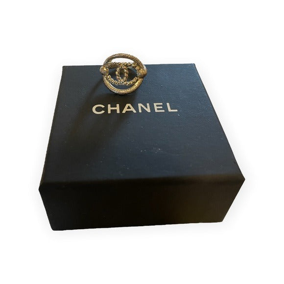 CHANEL CC Gold-Tone Cocktail Ring |Size: 6.5|