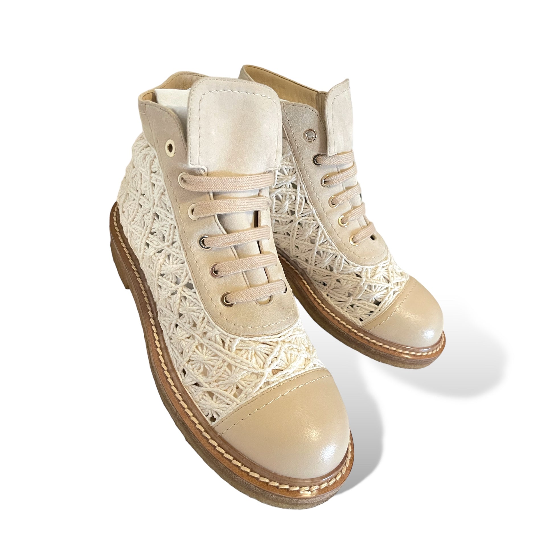 Chanel S19 Beige Crochet/leather/Suede Boot | Size: 38.5 EU |