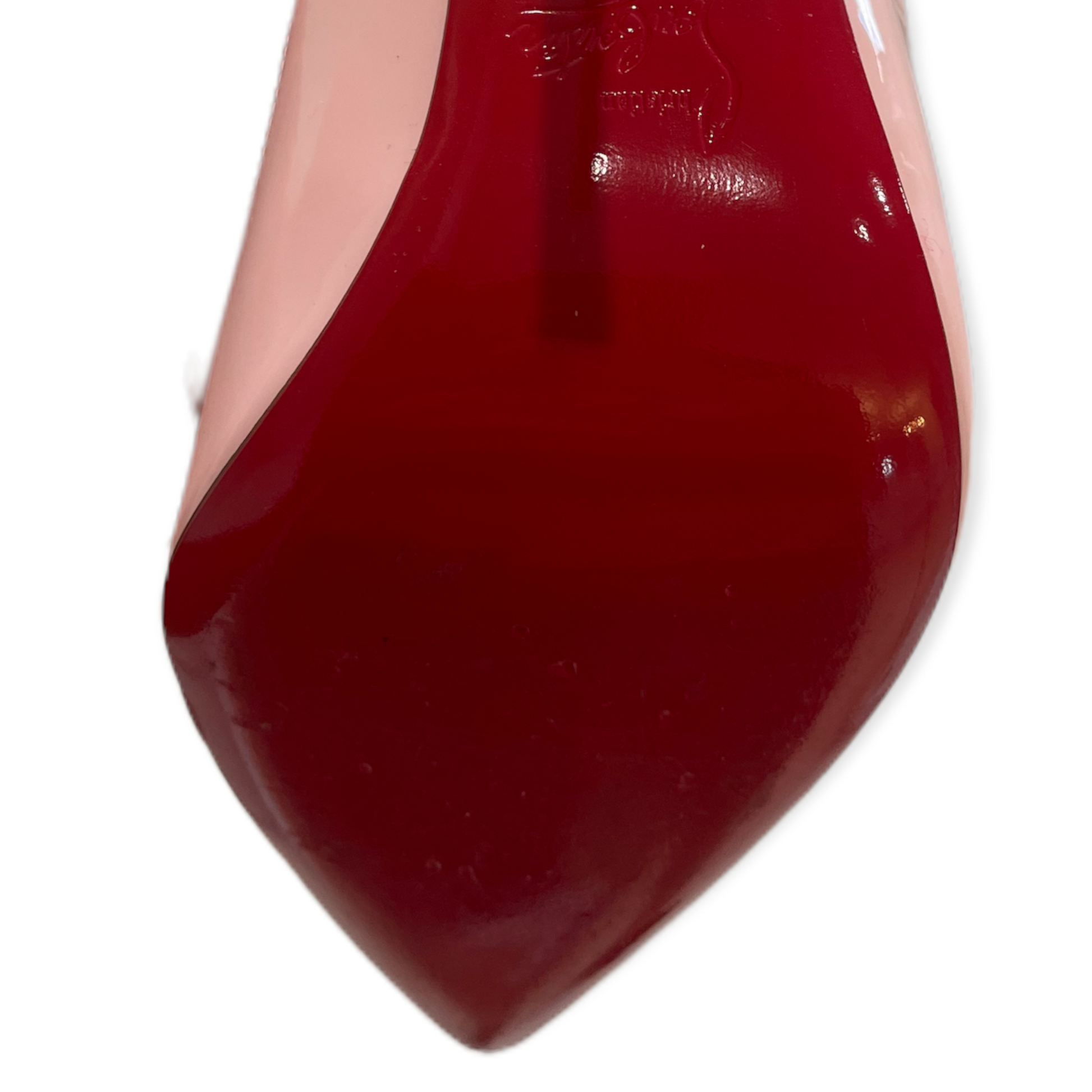Worn one time, each heel is in pristine condition (patent & red sole). Minimal if any wear on red sole (front) Please see photos.