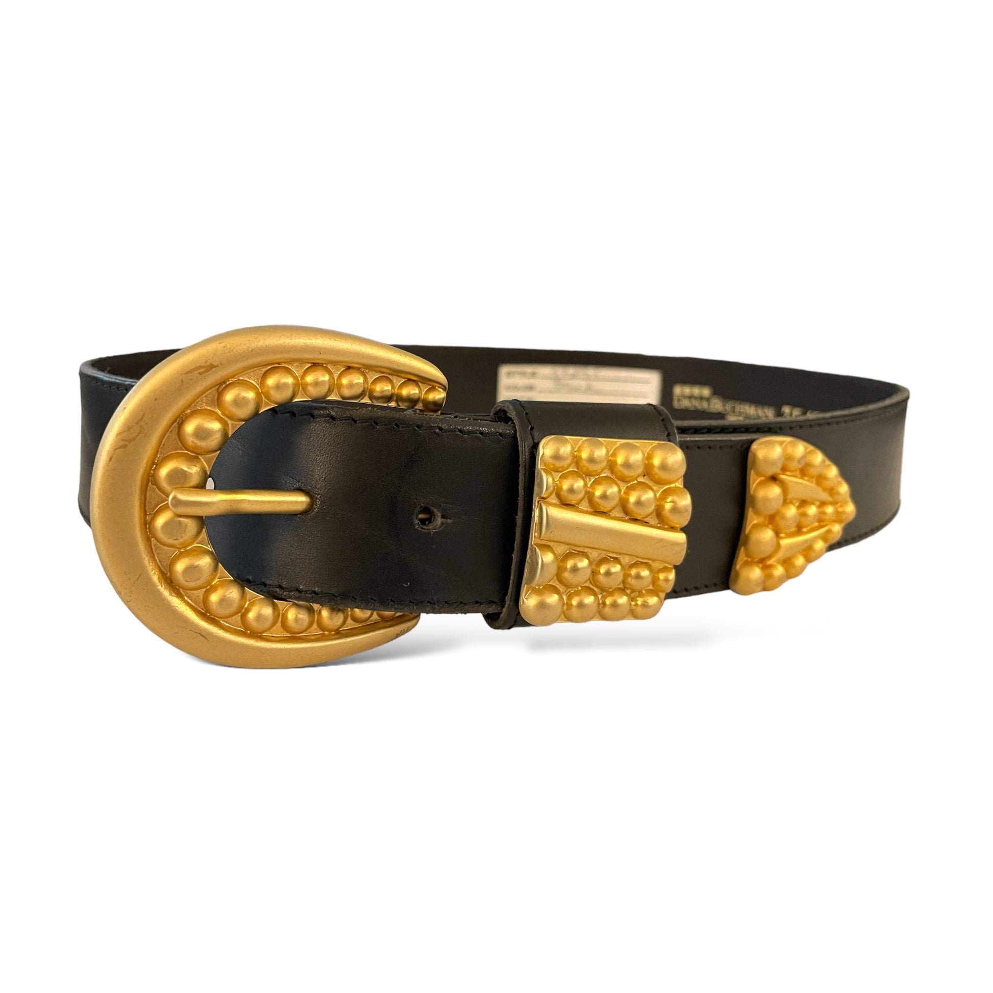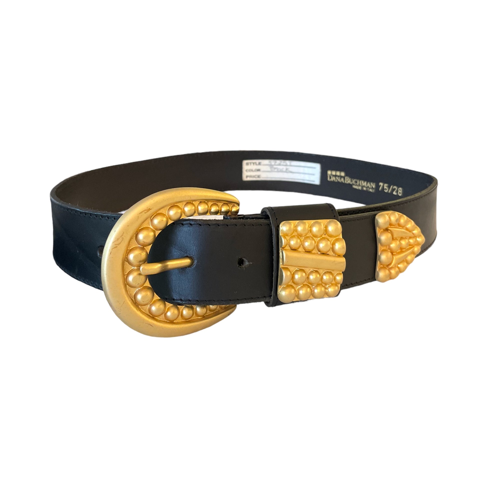 DANA BUCHMAN Black Leather Belt with Brushed Gold Buckle