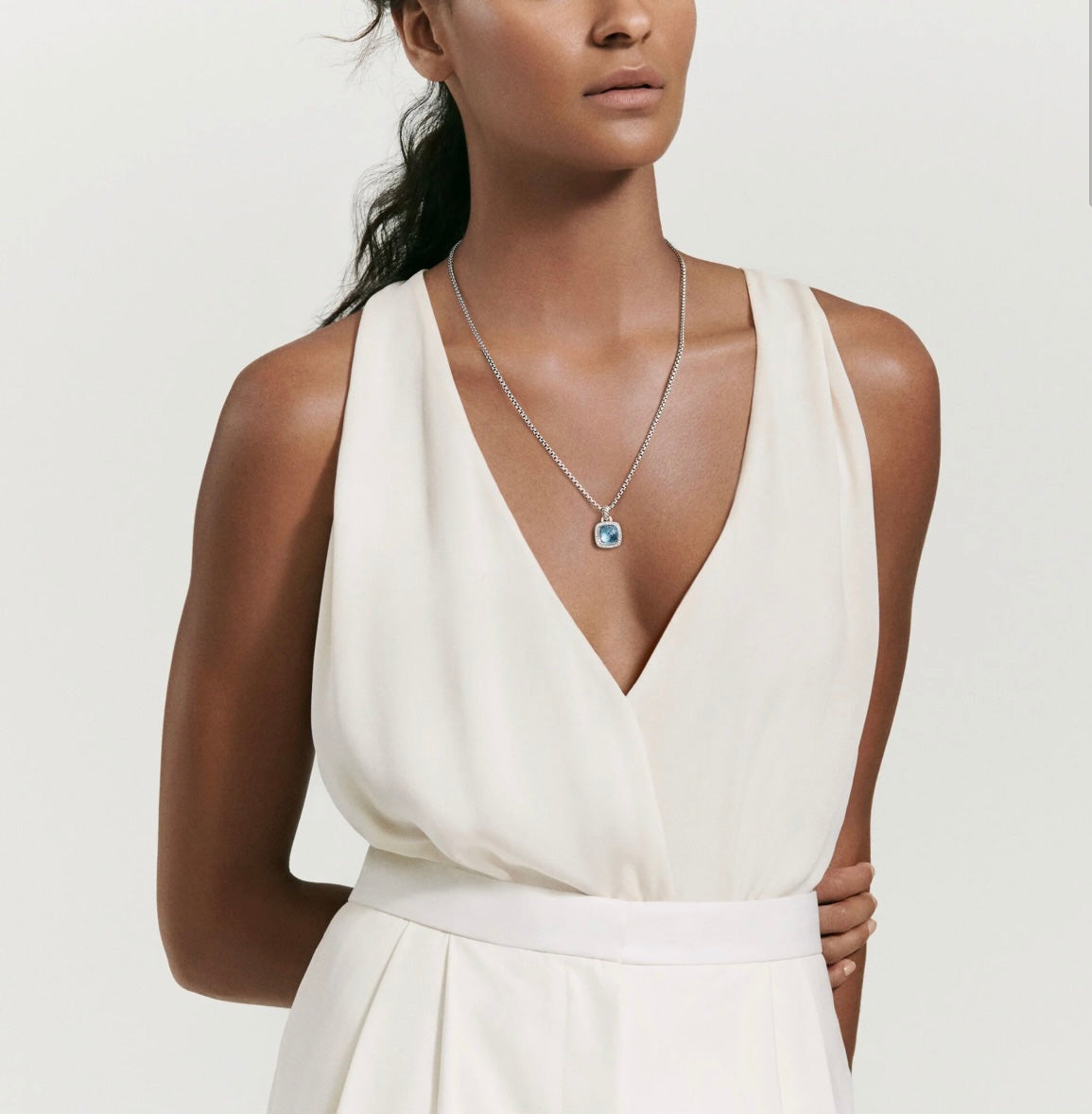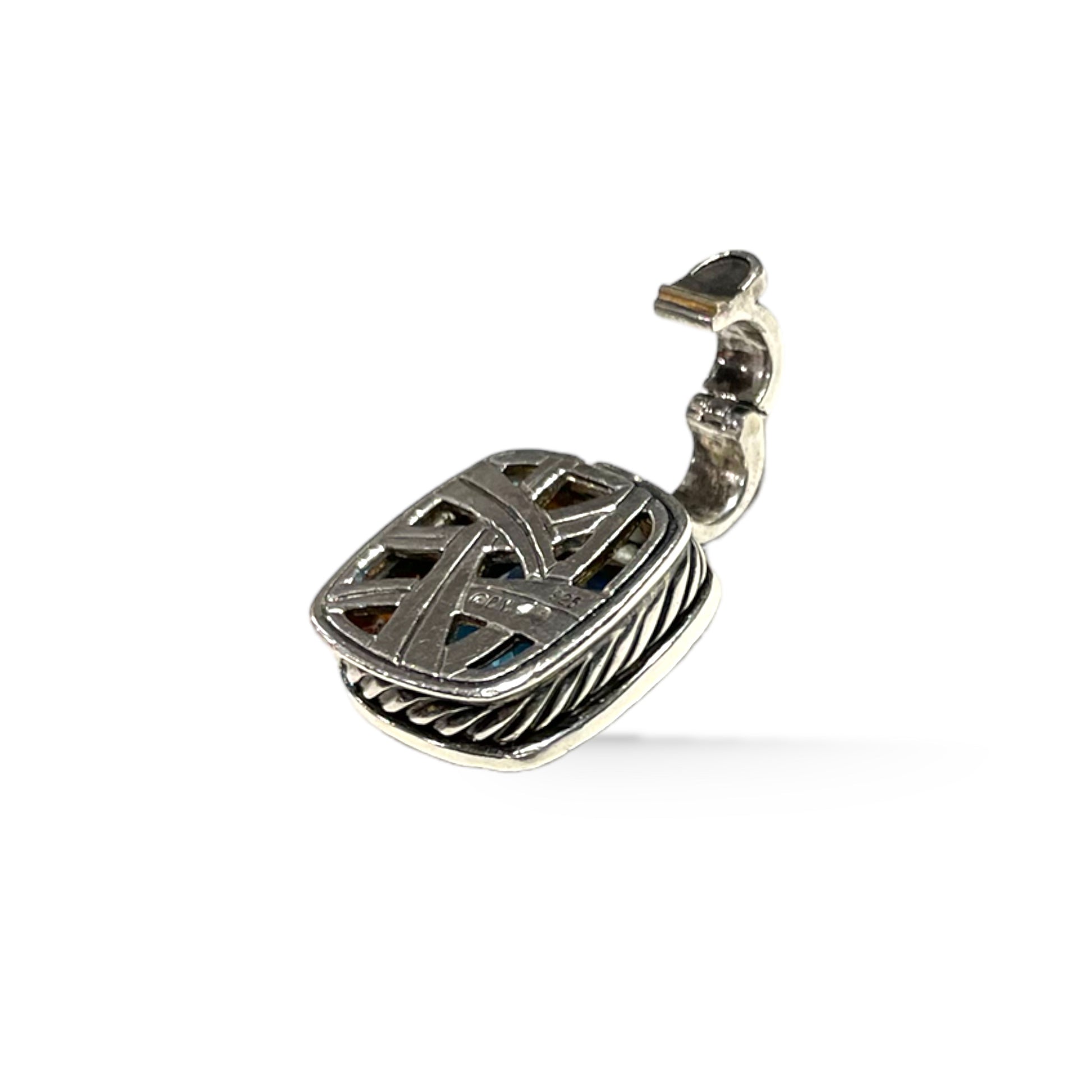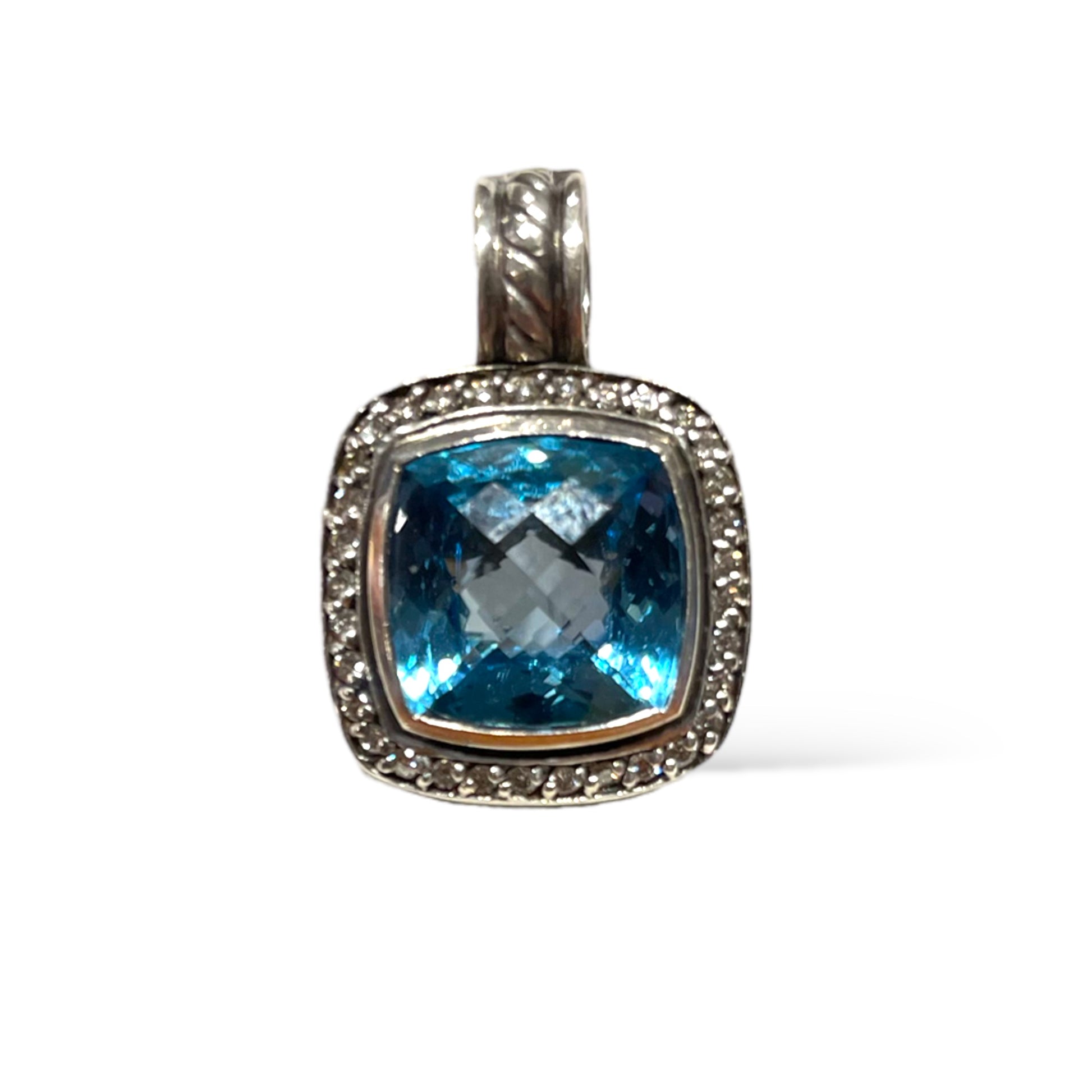 DAVID YURMAN Albion Pendant in Sterling Silver with Blue Topaz & Pavé Diamonds
