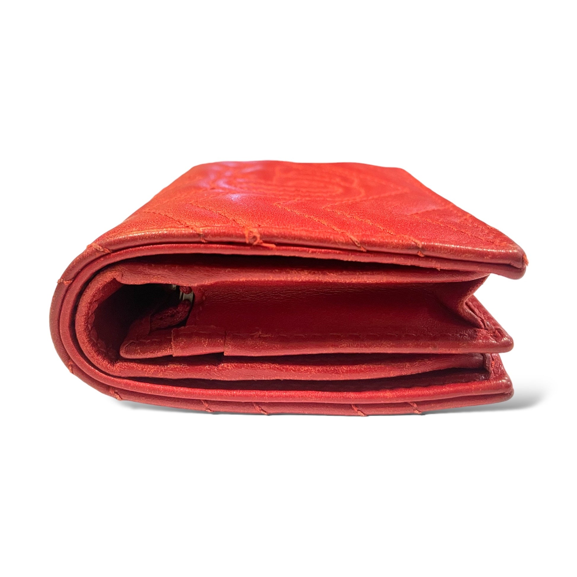 -Red matelassé chevron leather