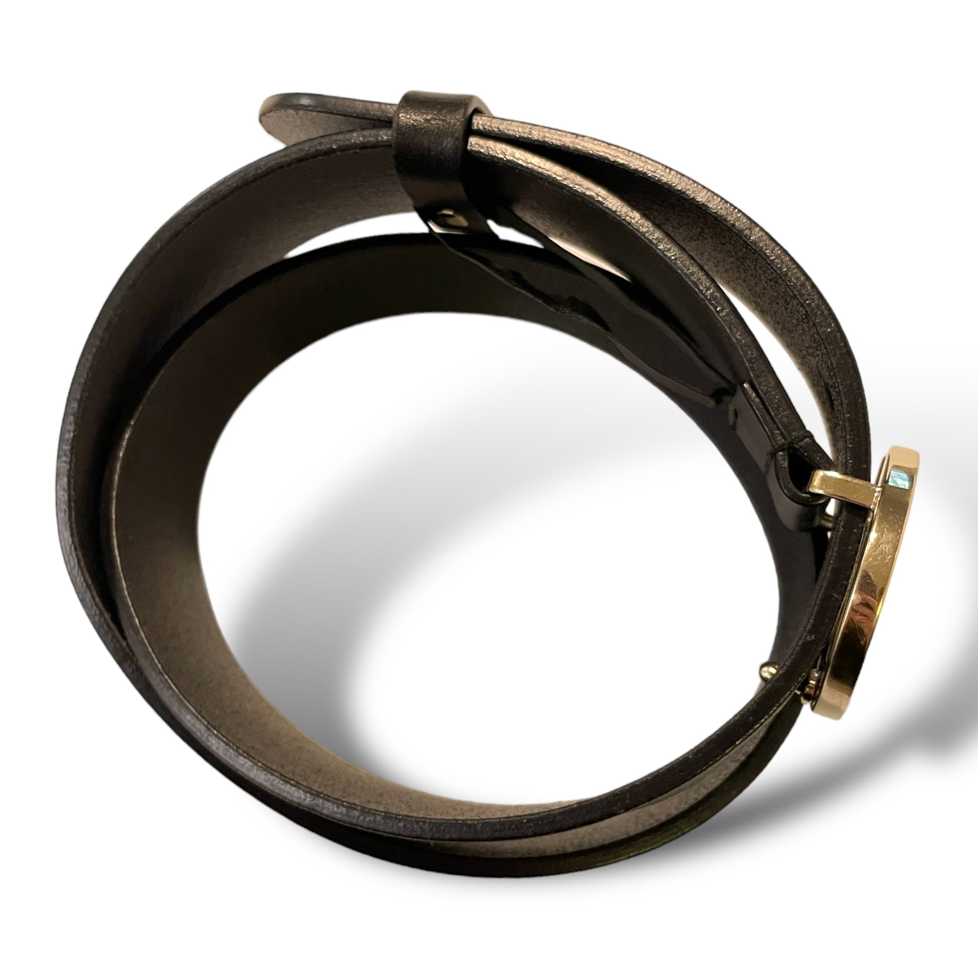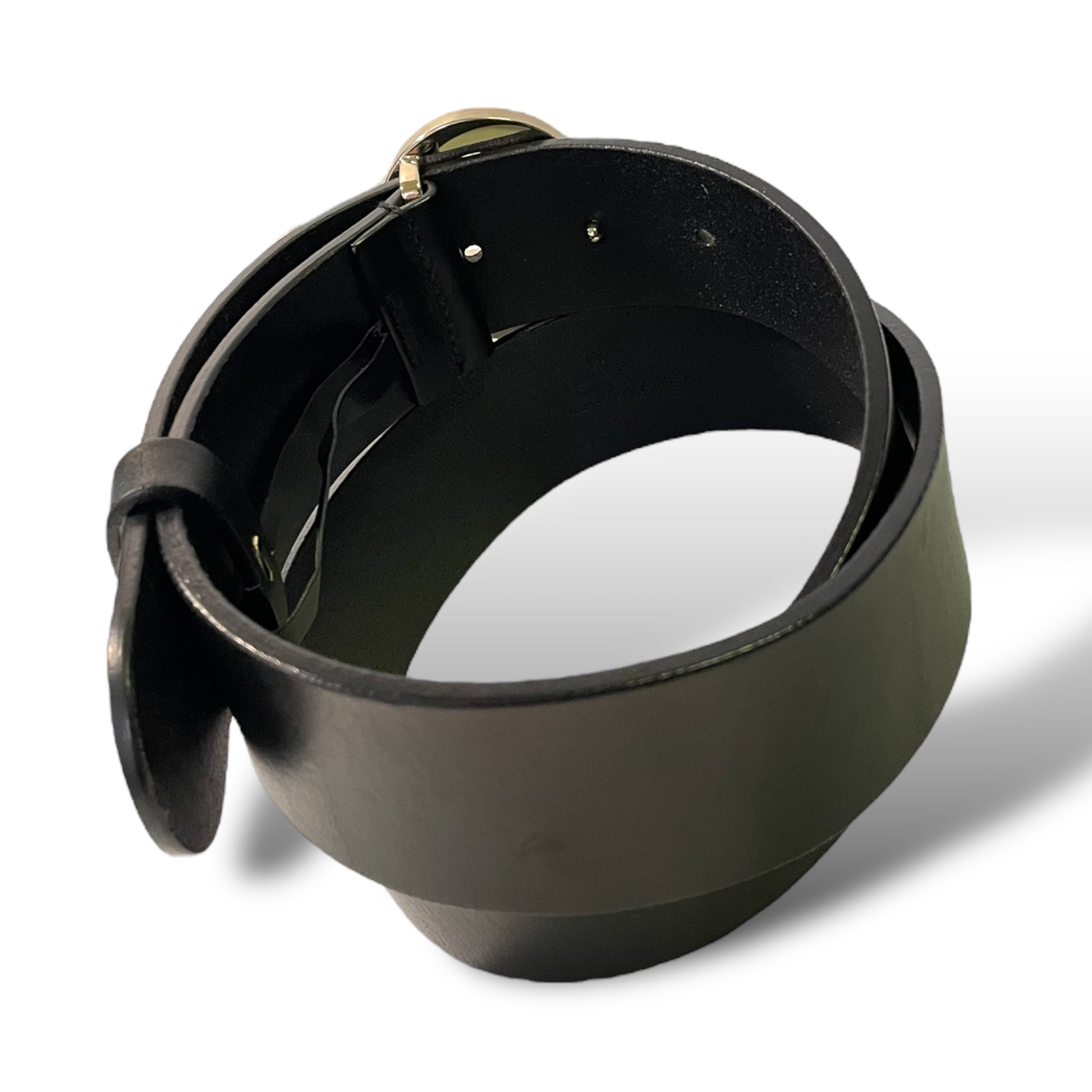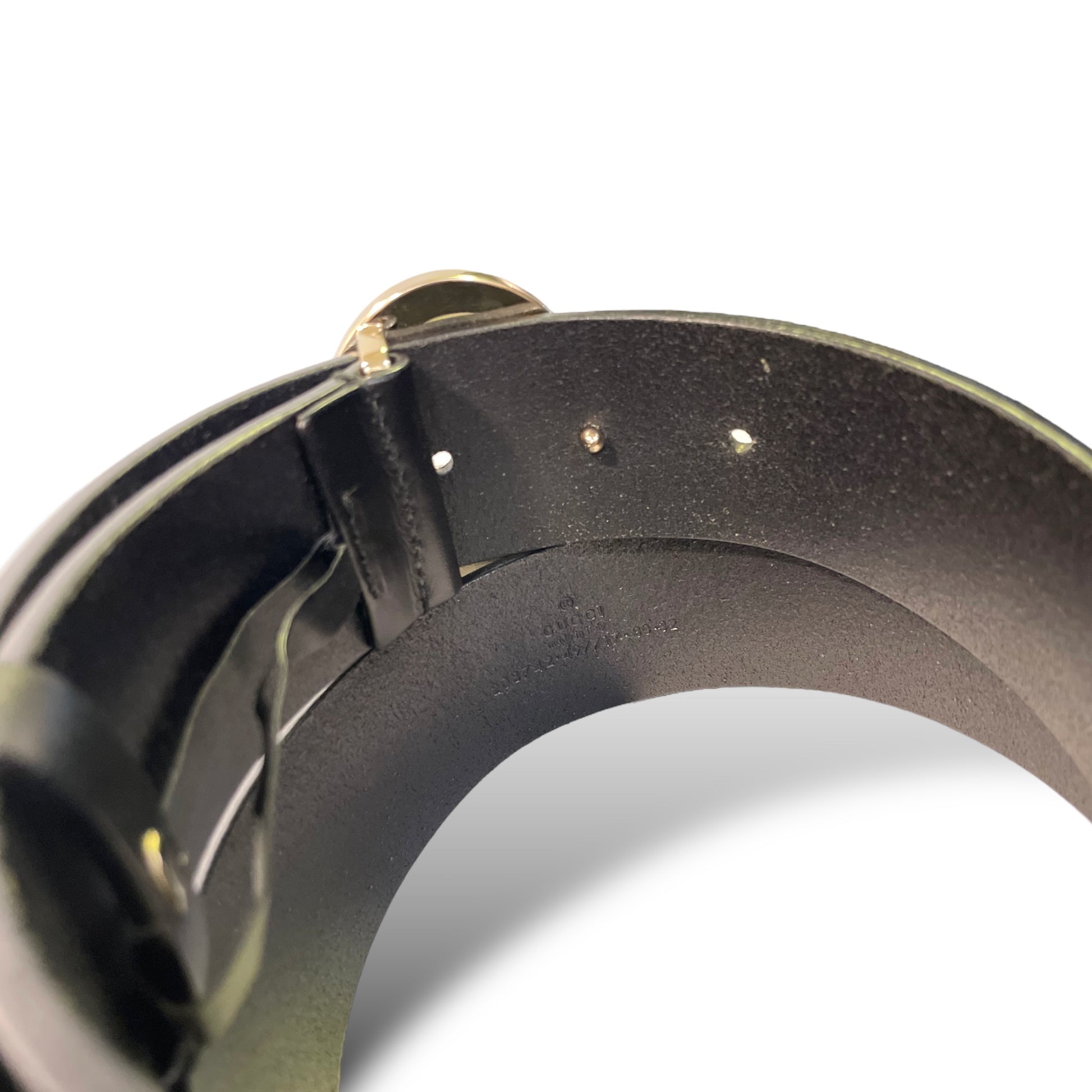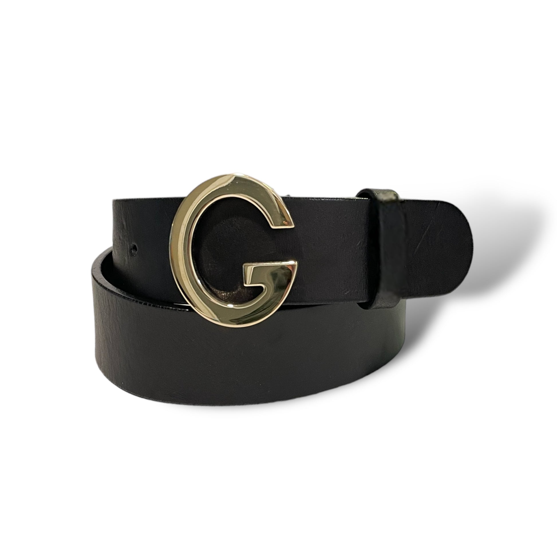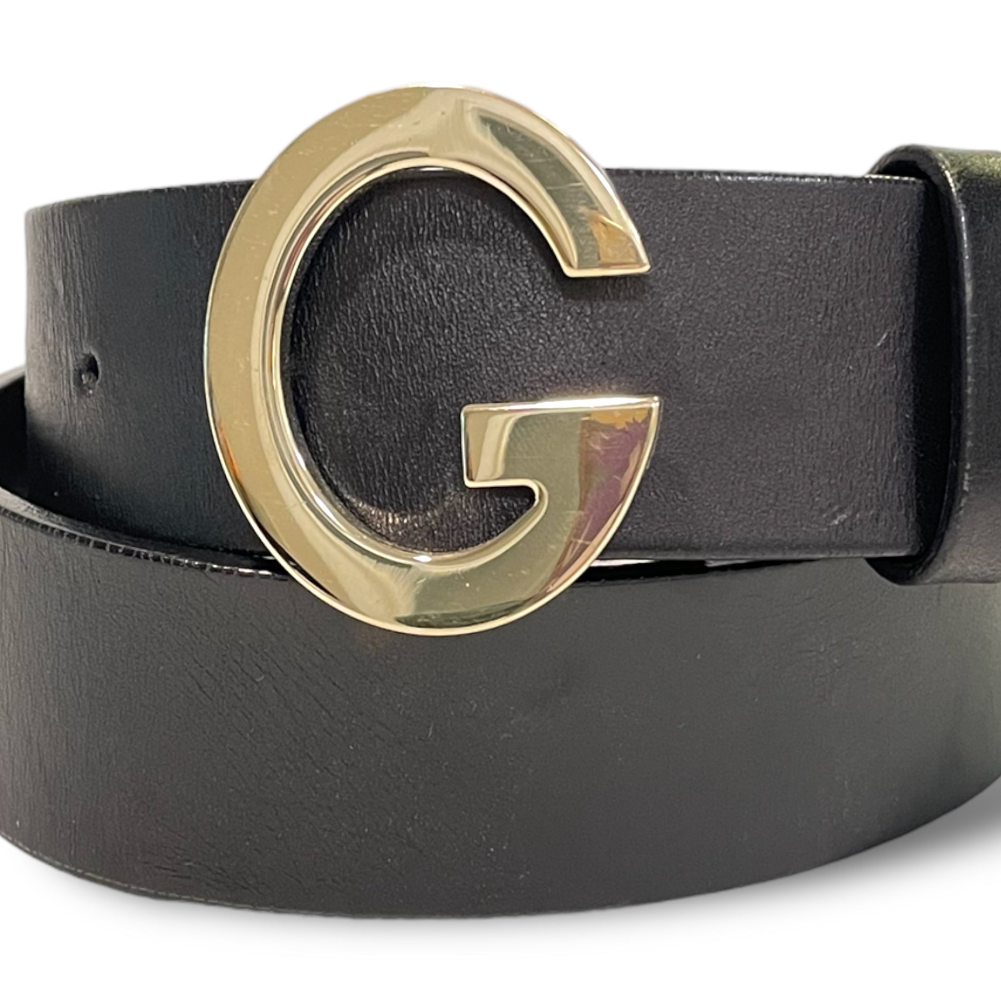 GUCCI Womens Champagne Gold G Buckle Black Leather Belt |Size:32”|