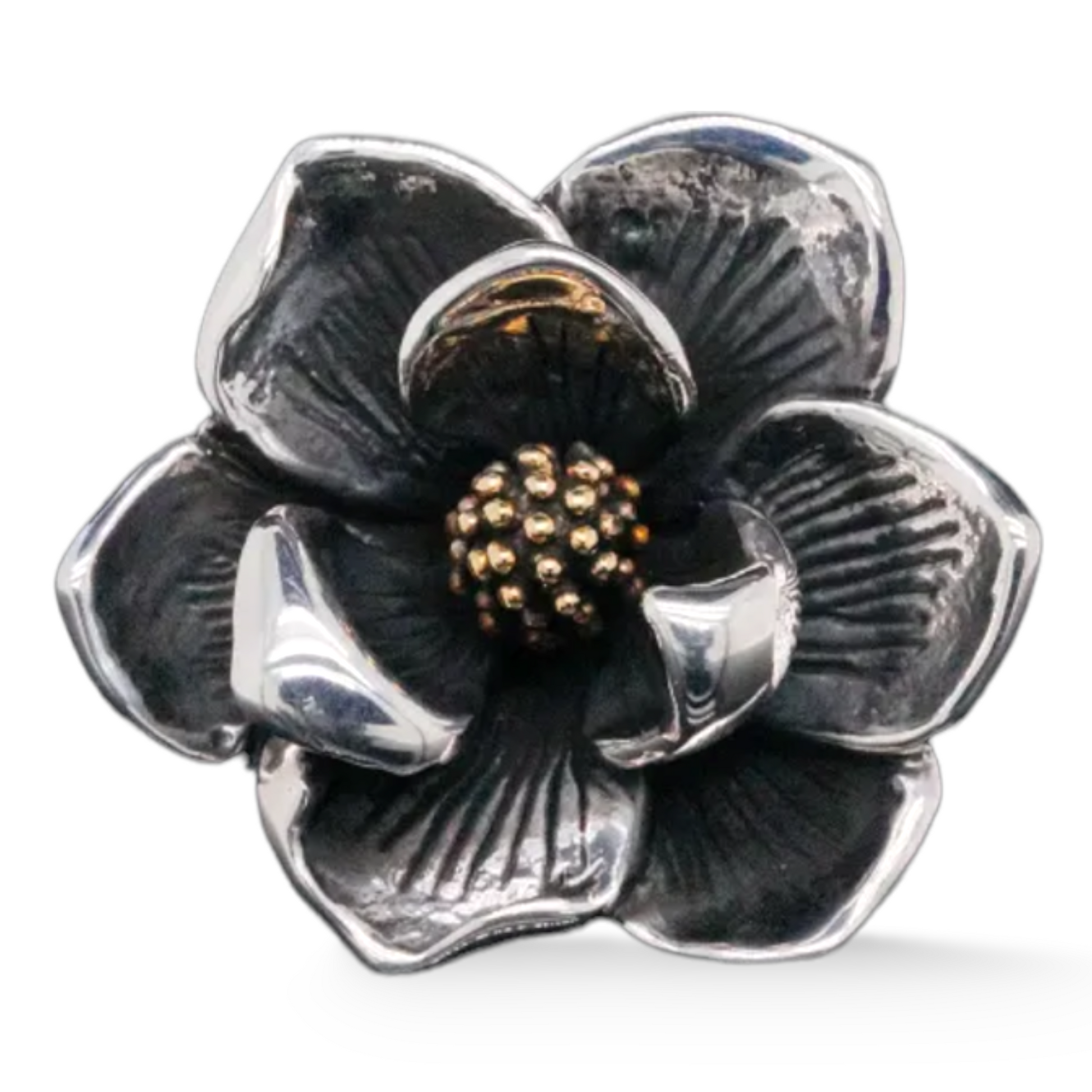 King Baby Solid Sterling Silver Magnolia Flower Ring