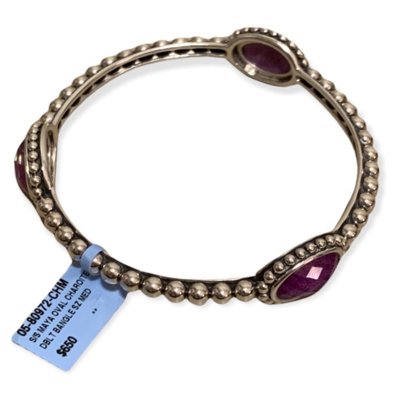 Lagos Maya Oval Sterling Silver Charoite Doublet Bangle Bracelet (med)