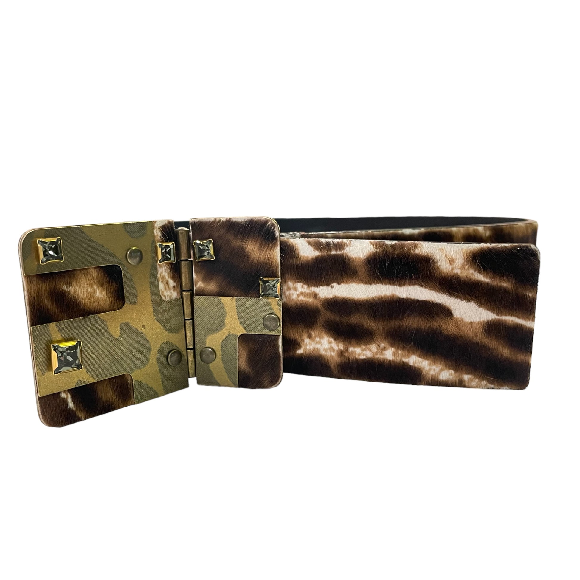 LANVIN Calf Hair Waist Belt with Antique Gold and Crystal Buckle |Size: Small|