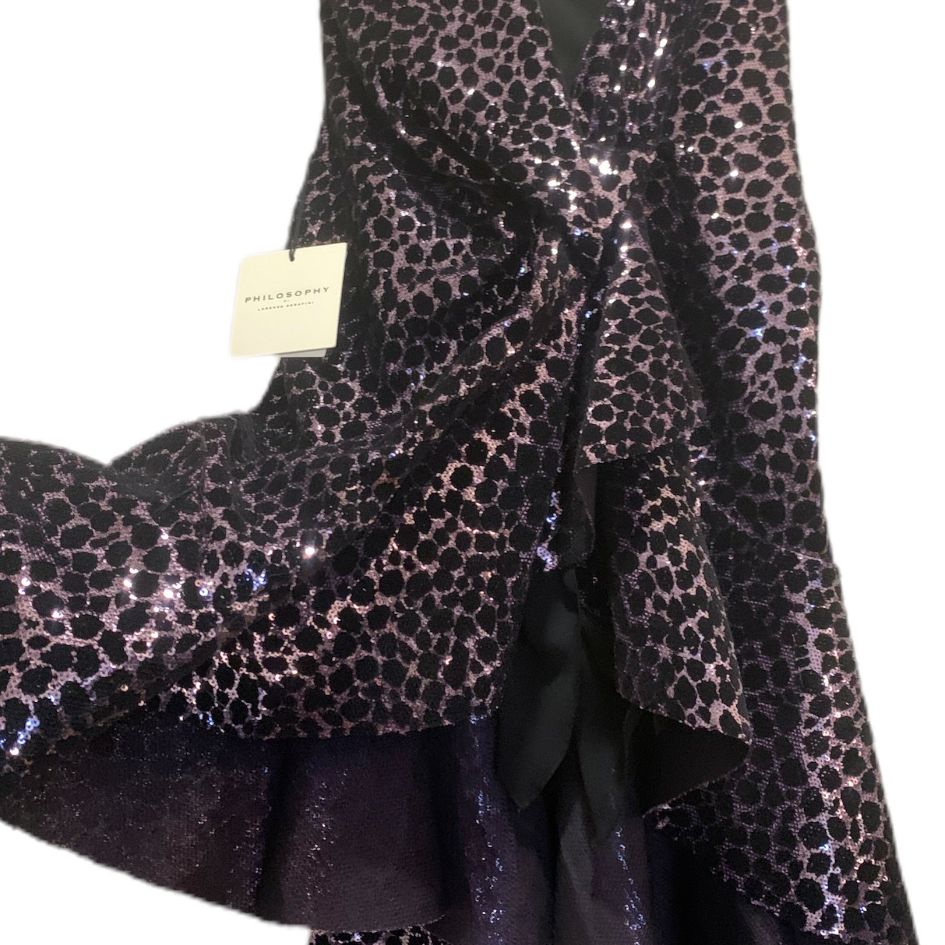 PHILOSOPHY DI LORENZO SERAFINI Ruffled flocked sequined mini dress |Size:38 IT|