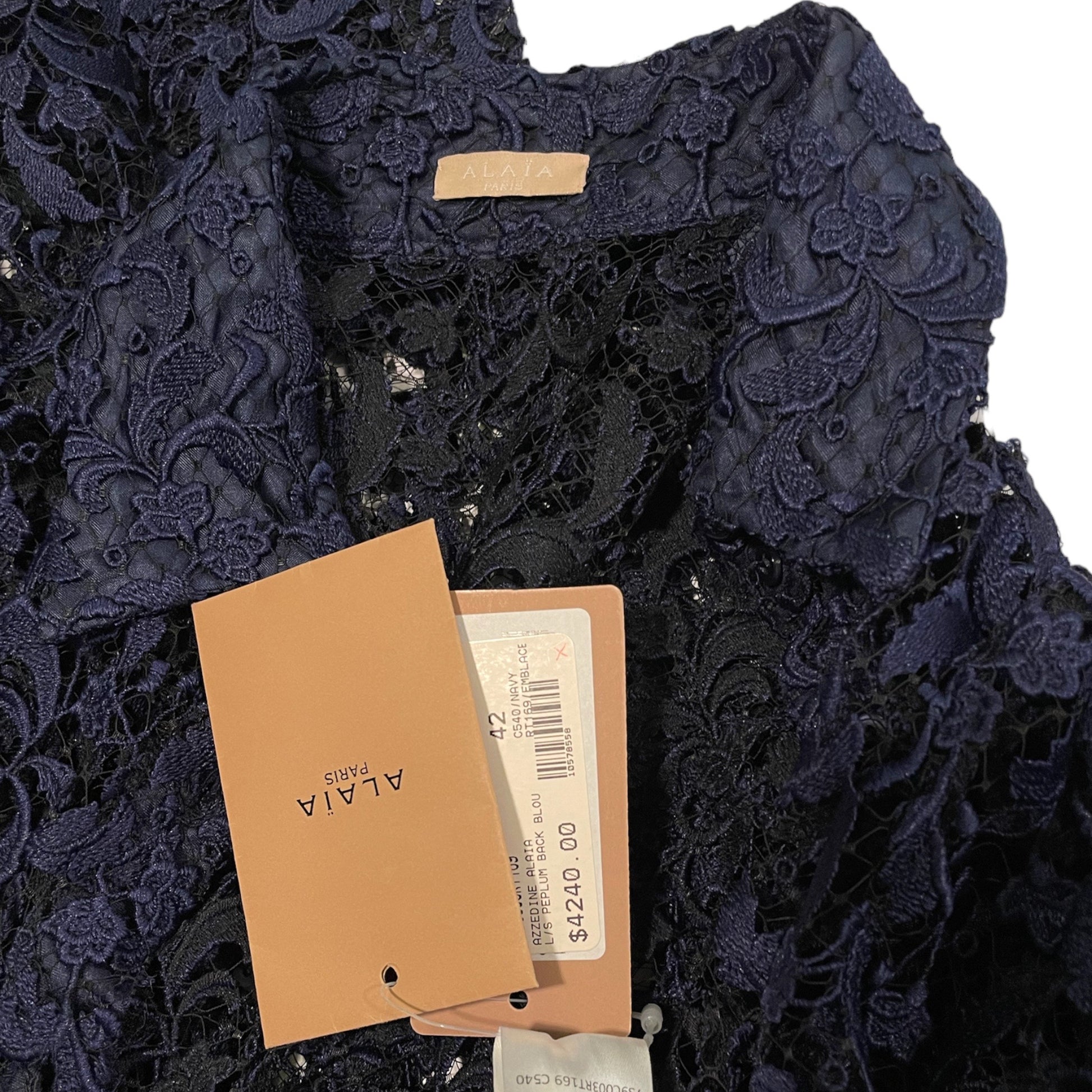 AZZEDINE ALAÏA Long Sleeve Peplum Back Lace Blouse |Size:42|
