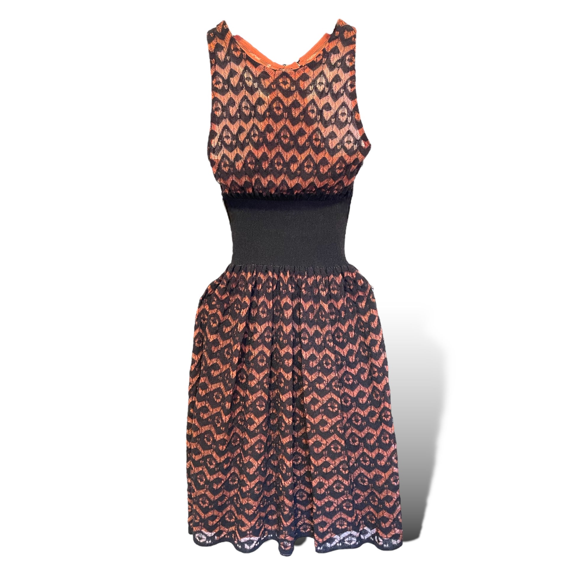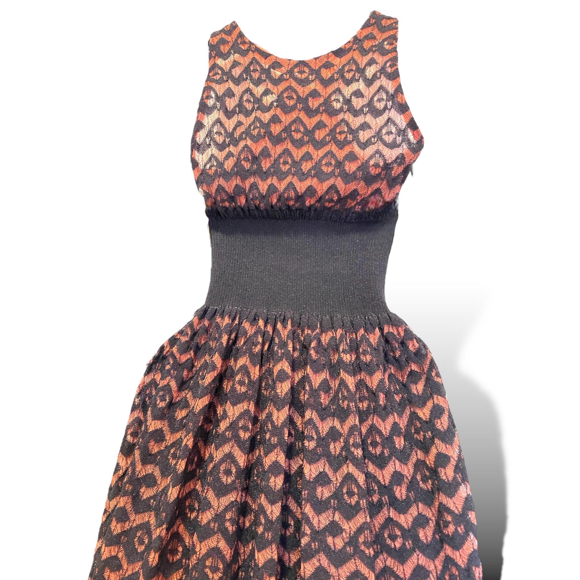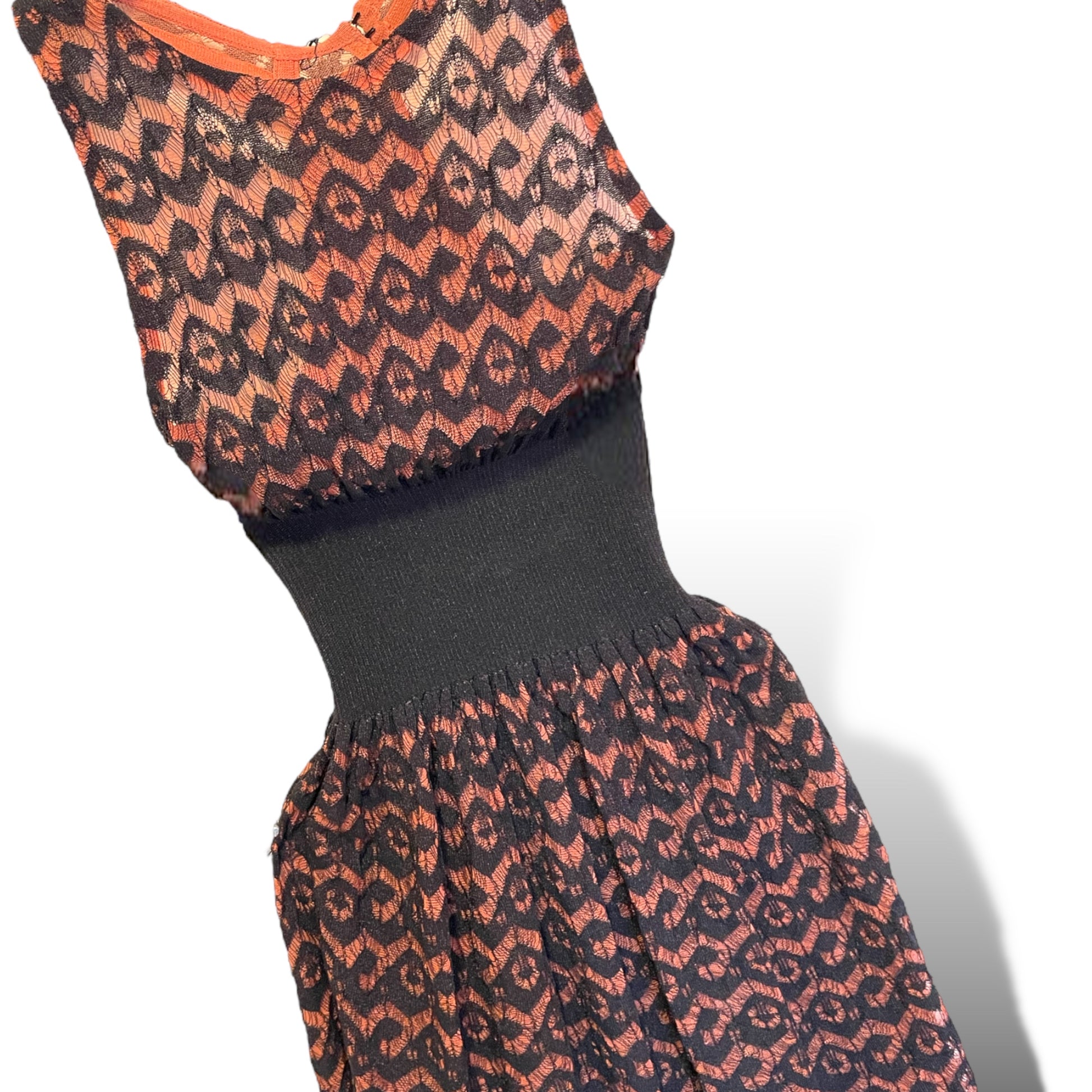ALAÏA PARIS Orange/Coral & Black STUNNING Crochet Dress