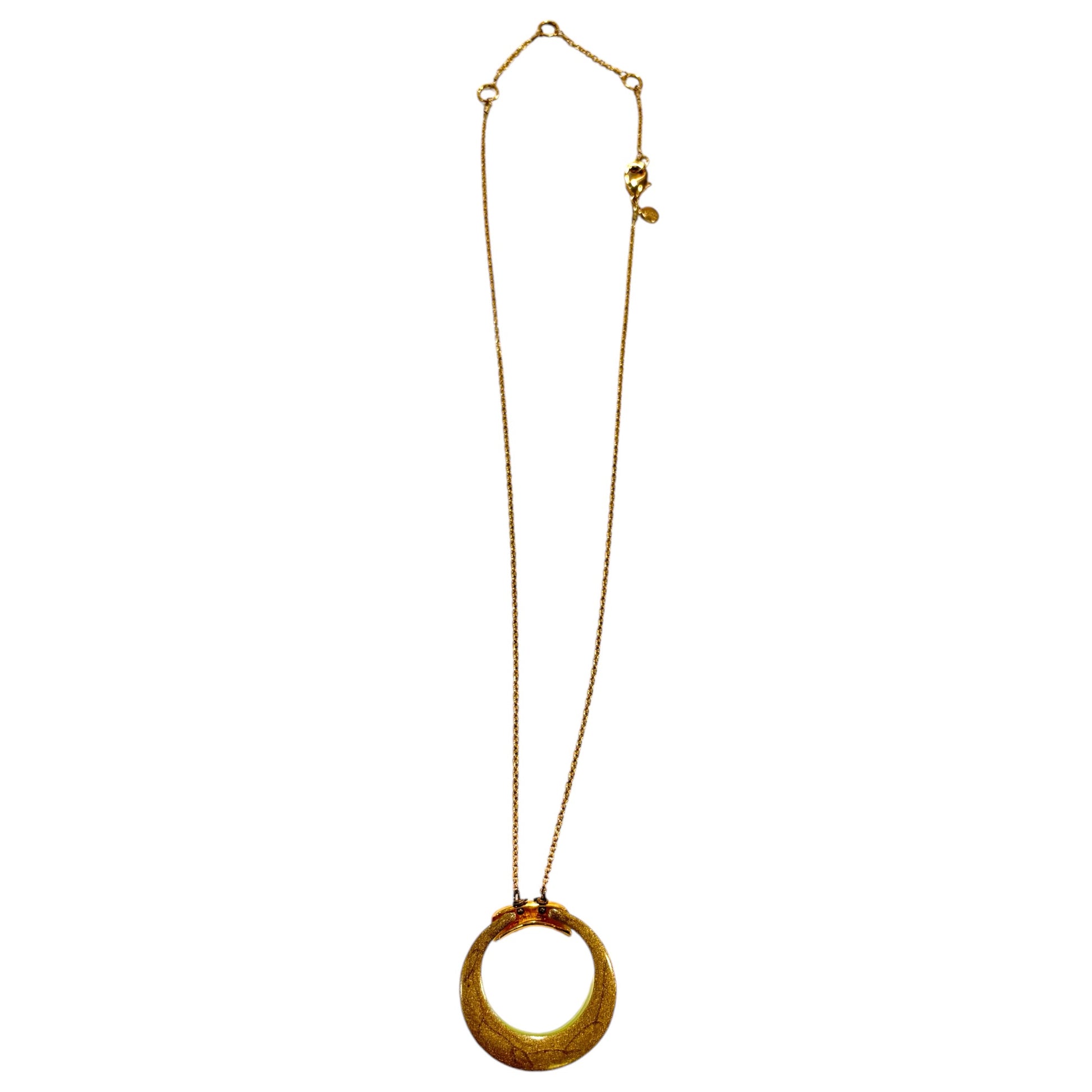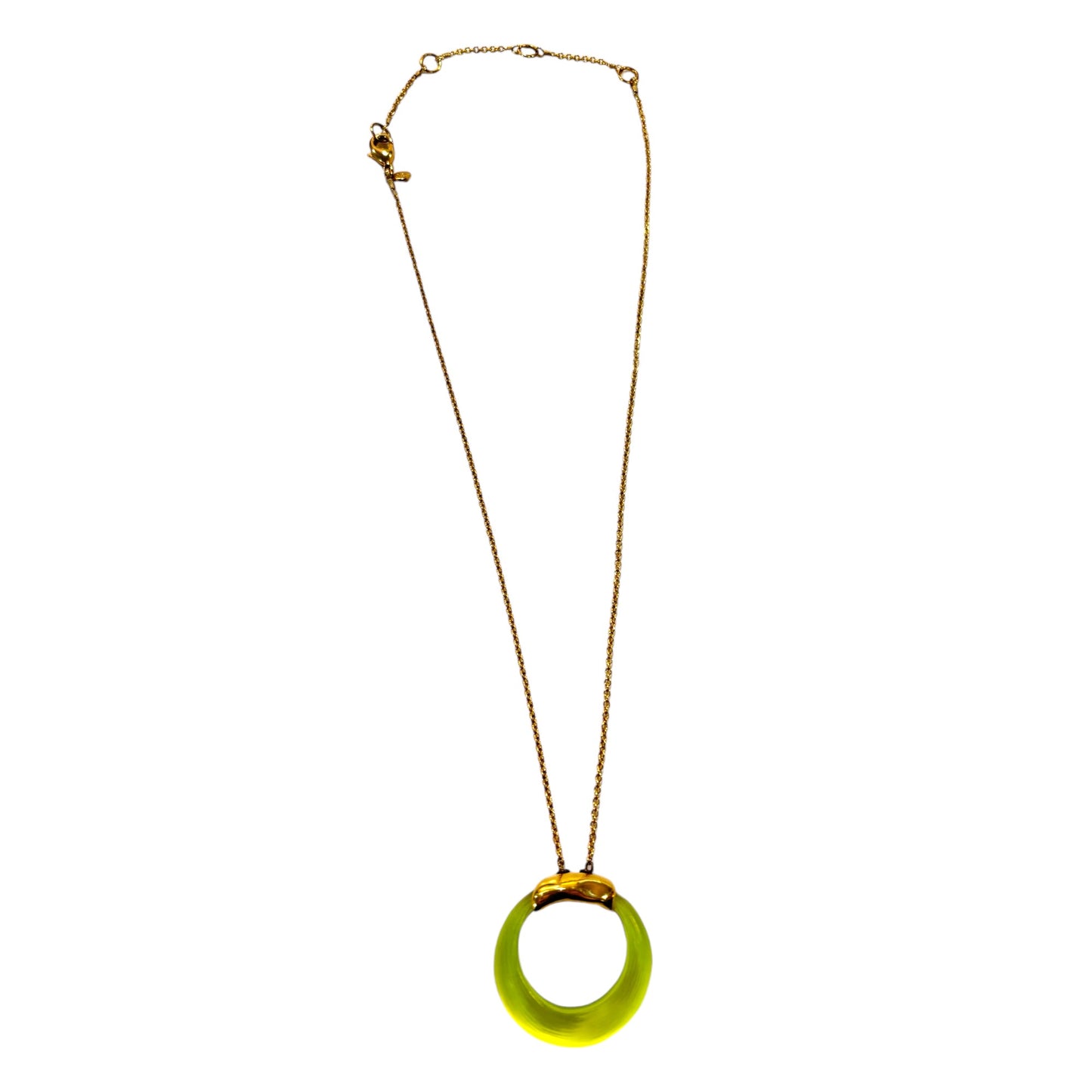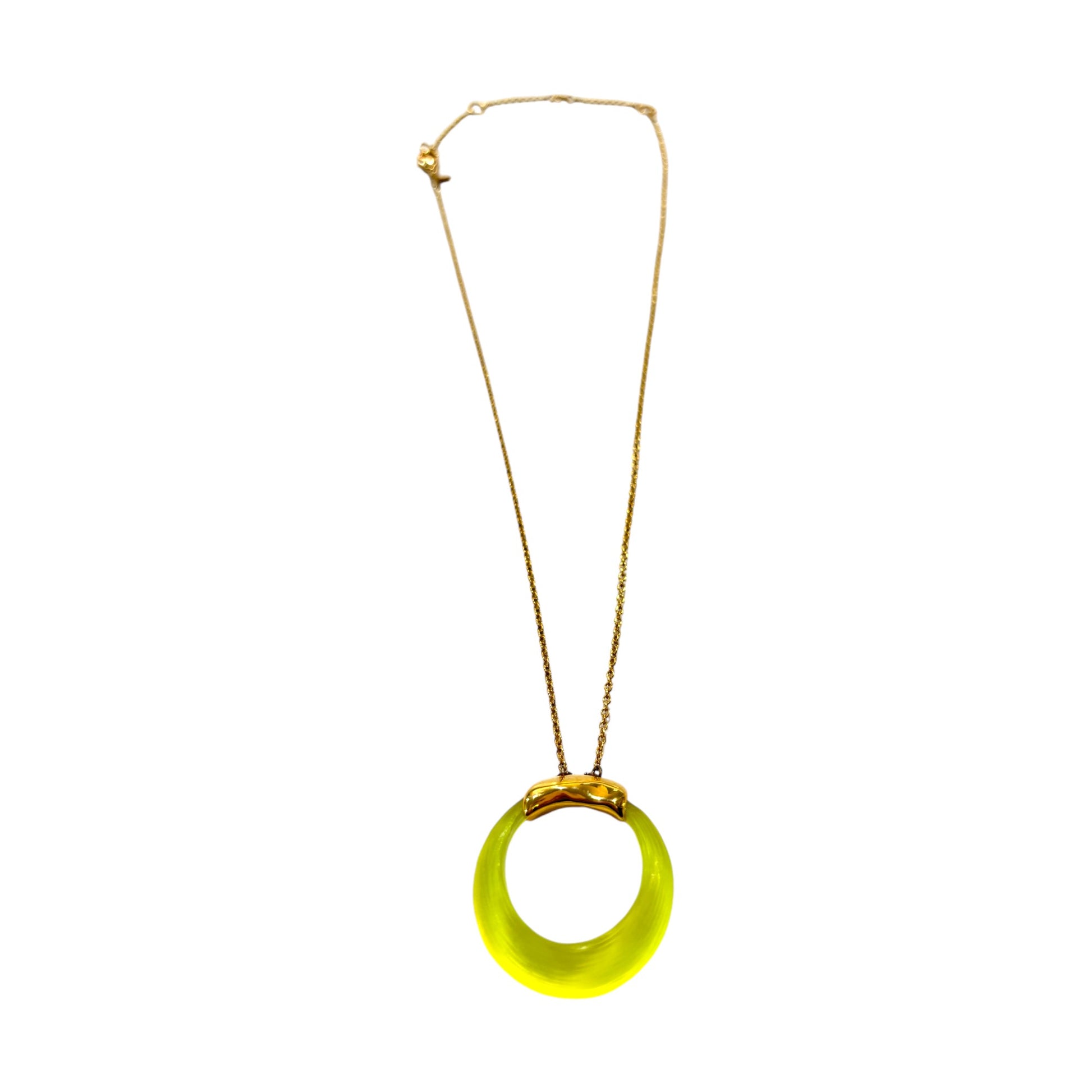 ALEXIS BITTAR Hand Carved Neon Yellow Lucite Circle Pendant Necklace