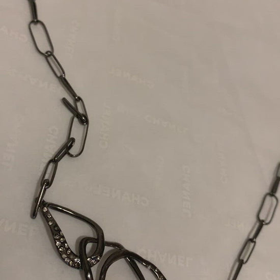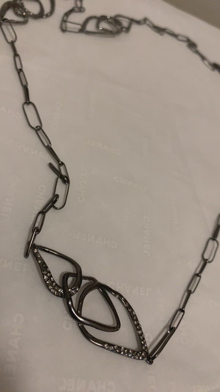 Crystals add dazzling detail to interlocking stations set into this unique necklace.