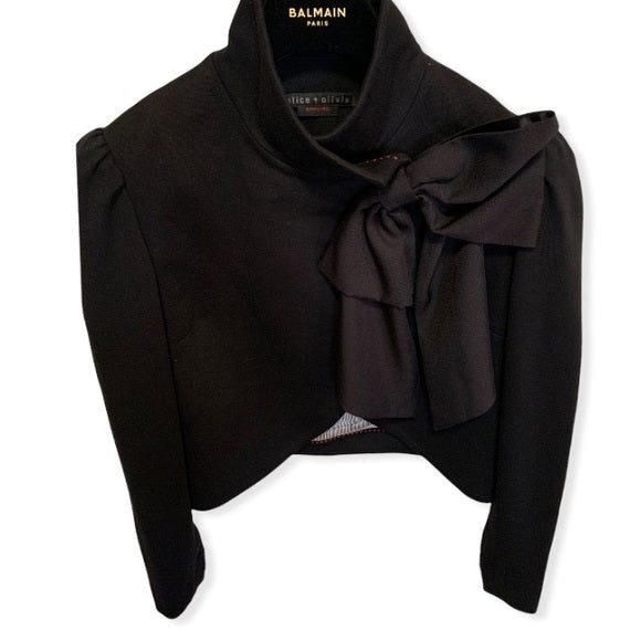 Alice+Olivia Silk Bow Embellished Cropped Jacket