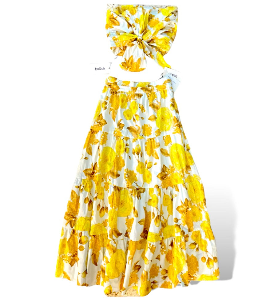 BA&SH Yellow Floral Print Maxi-Skirt & Top Set |Size: Medium| | US6|