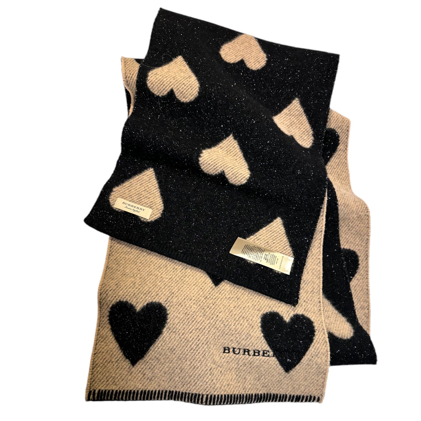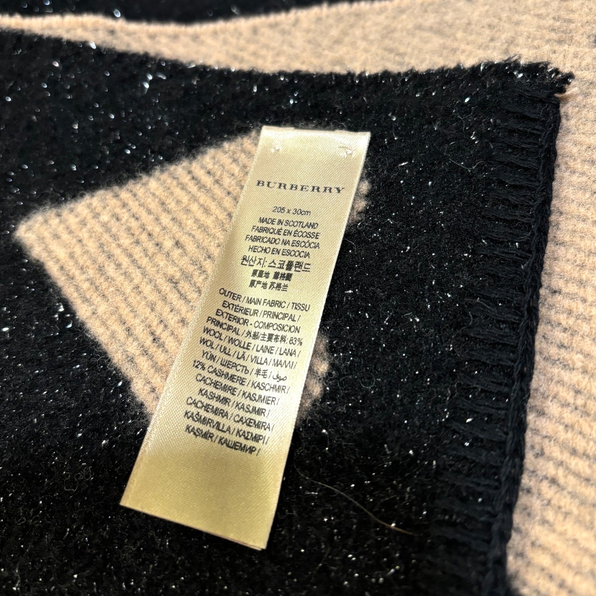 BURBERRY London Reversible Black & Beige Wool/Cashmere Long Scarf