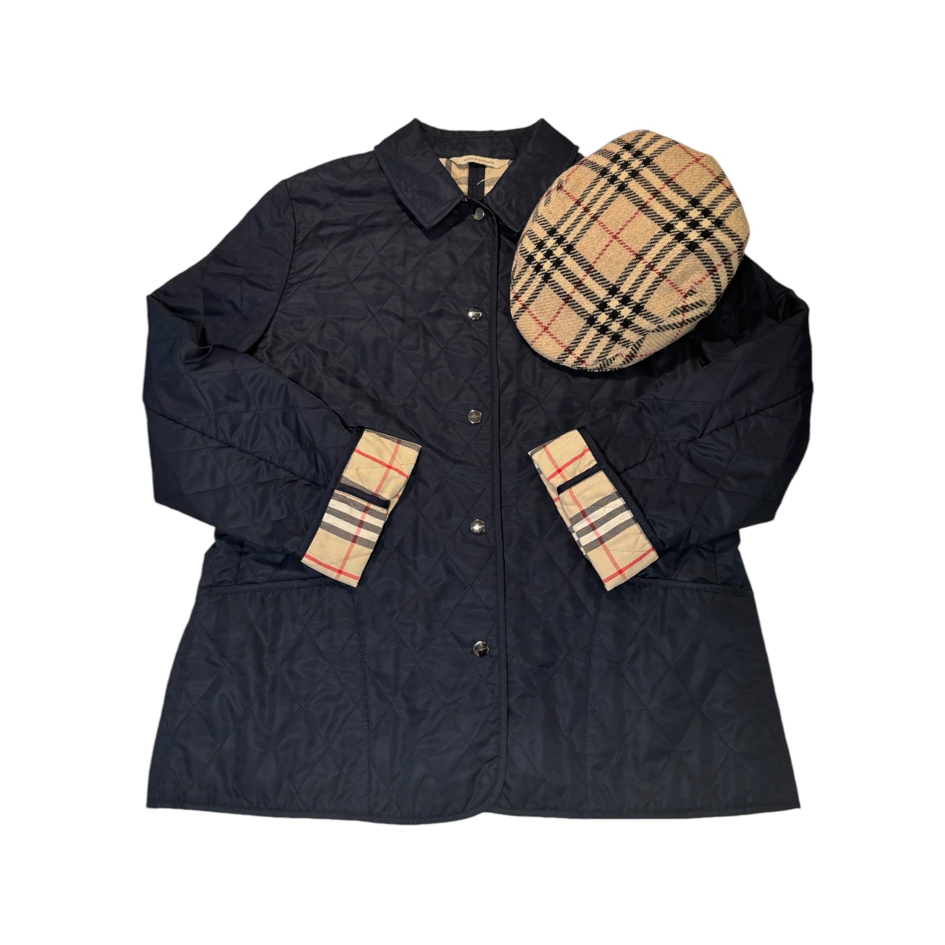 BURBERRY London Navy Blue Quilted Check Lined Jacket