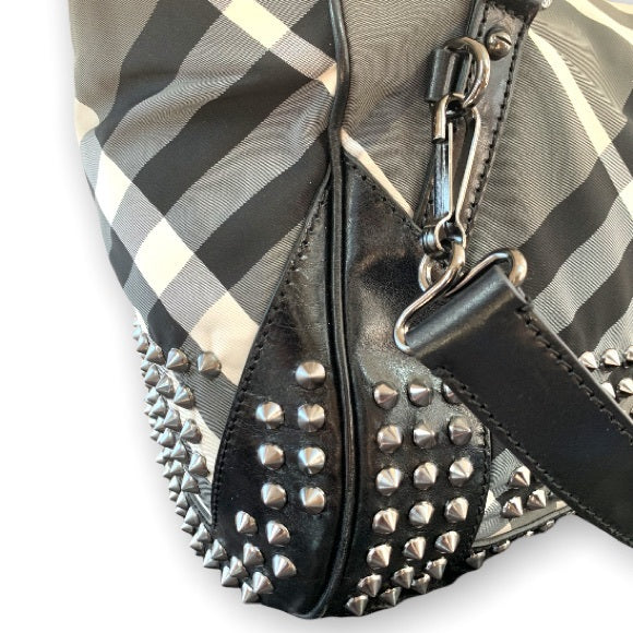 BURBERRY Nylon Beat Check Studded Medium Edenham Satchel Black