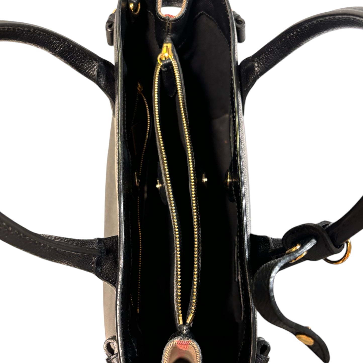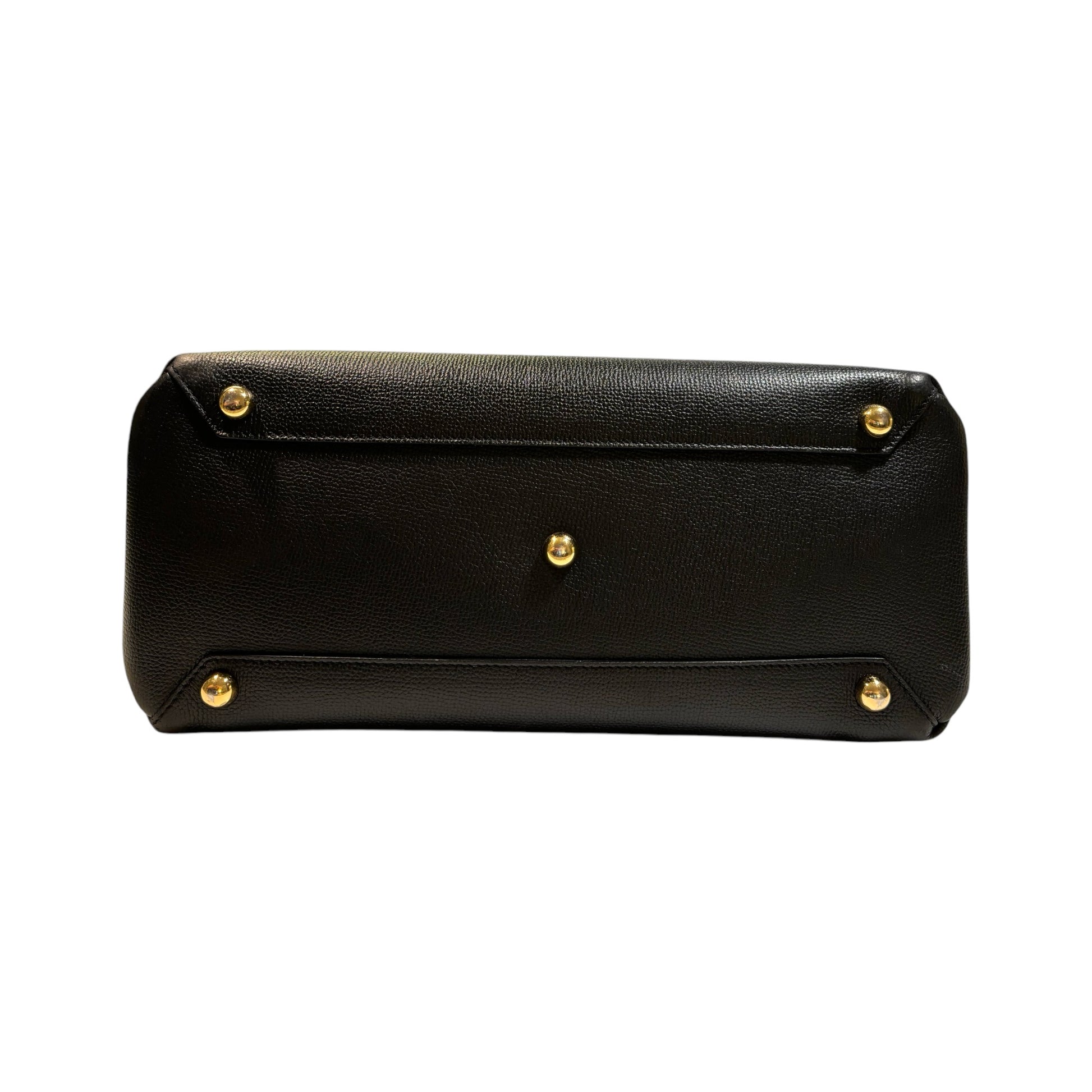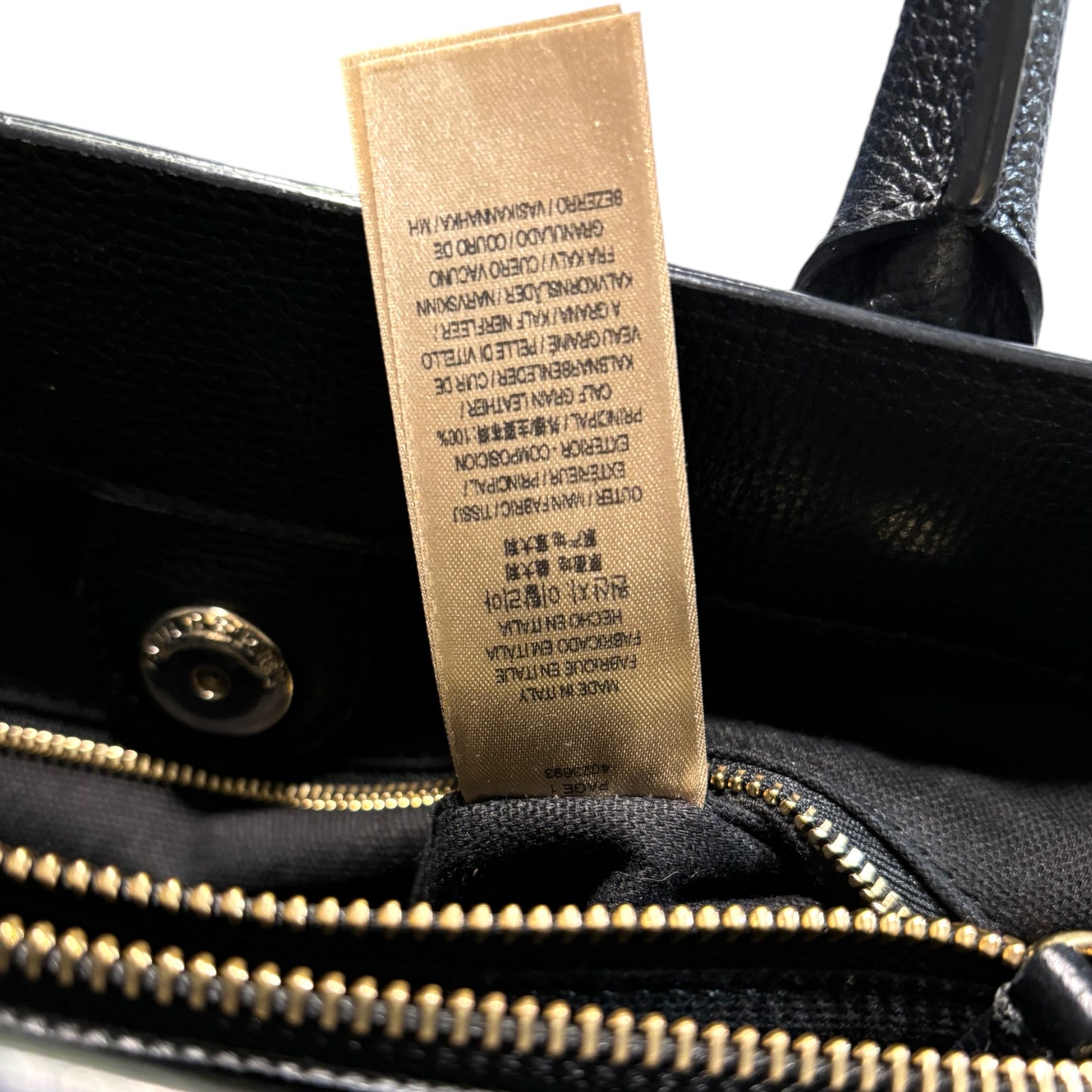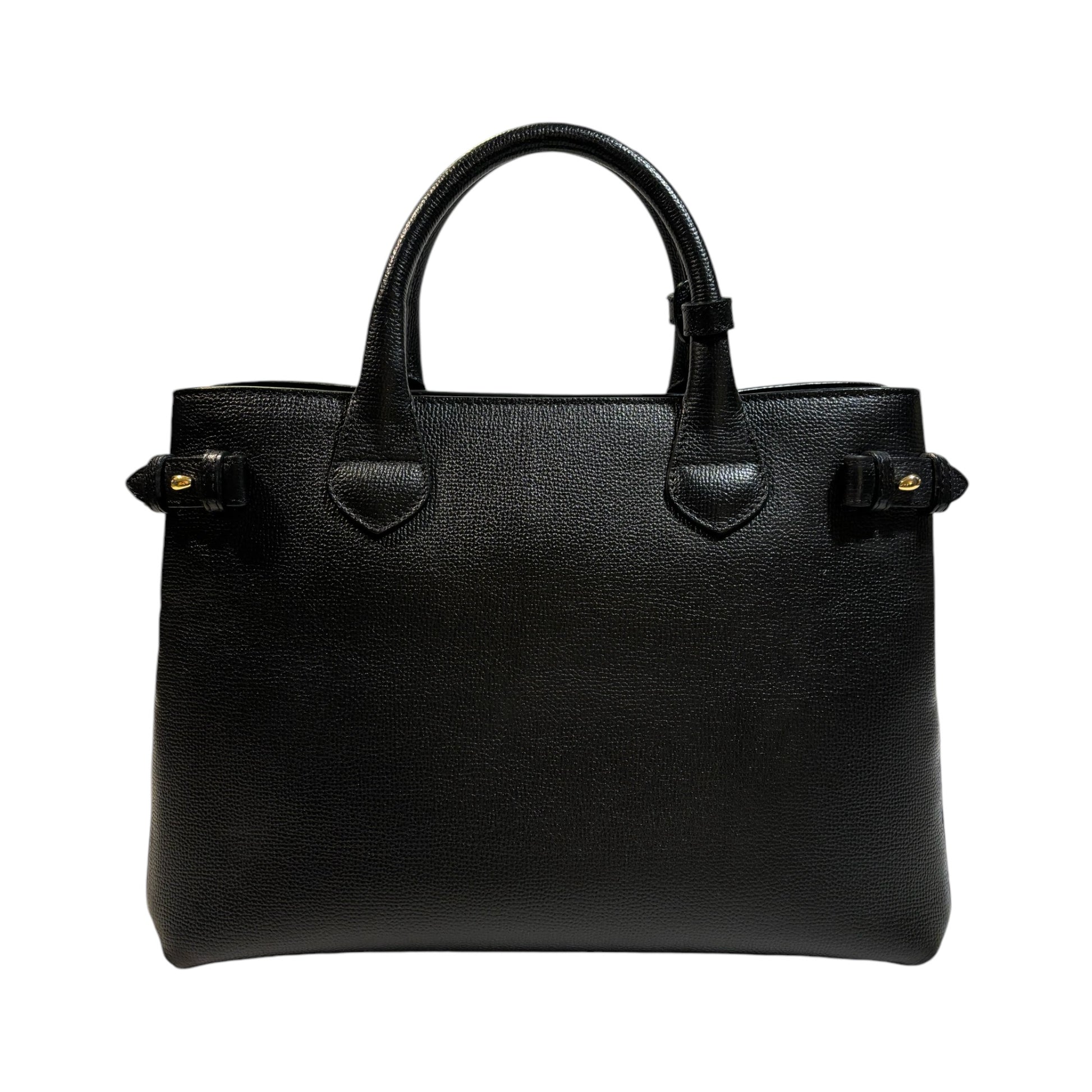 Burberry London England Women's Medium Black Leather And House Check Print Banner Tote Bag