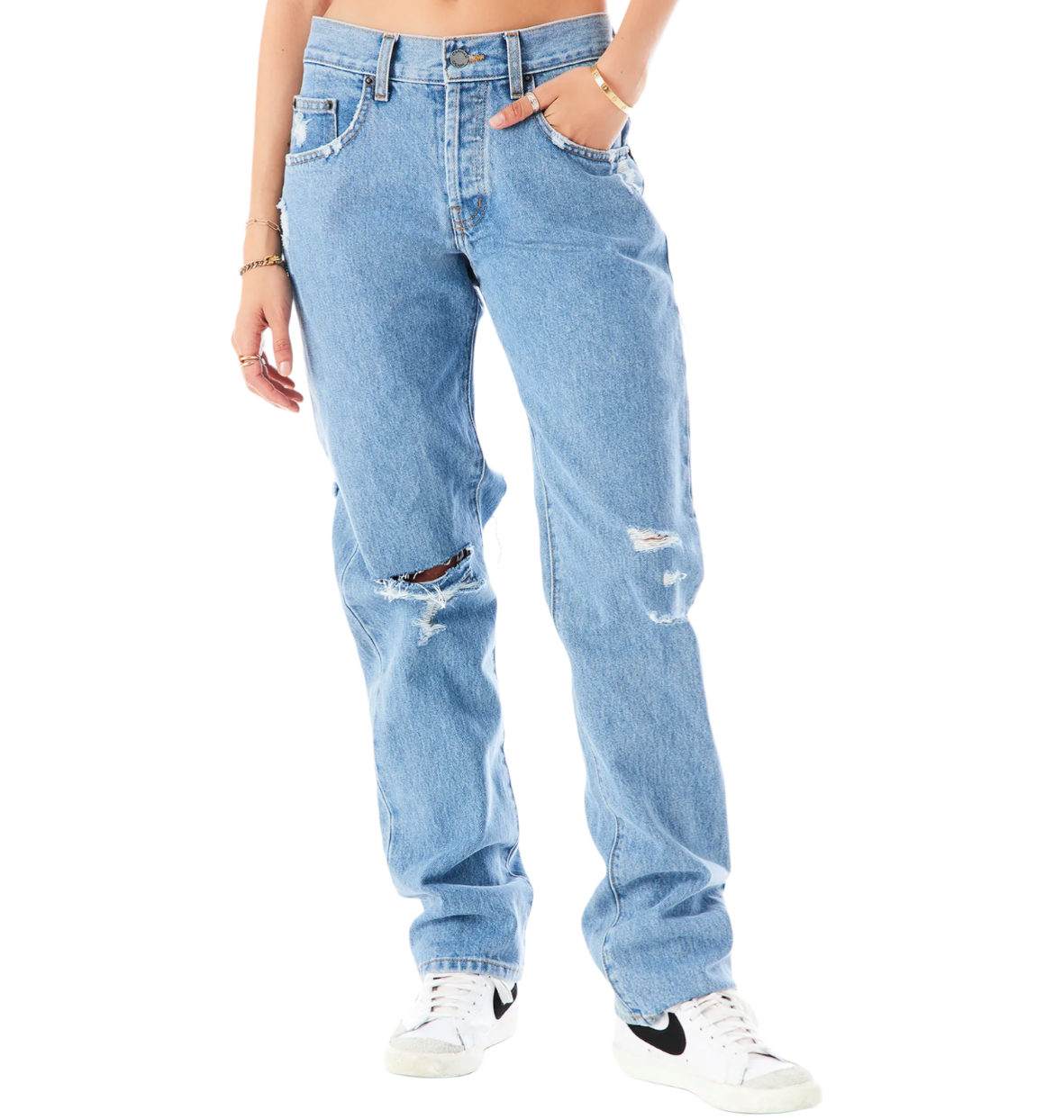 Want to know how to turn heads? Walk in wearing Alexas Apatite, your new medium wash denim jean. With a low rise and cheeky back slashing, this denim is irresistible. The relaxed and ultra loose full leg cheeky jean that's perfect to amp up all your fits. Size up to get the ultimate baggy fit.
