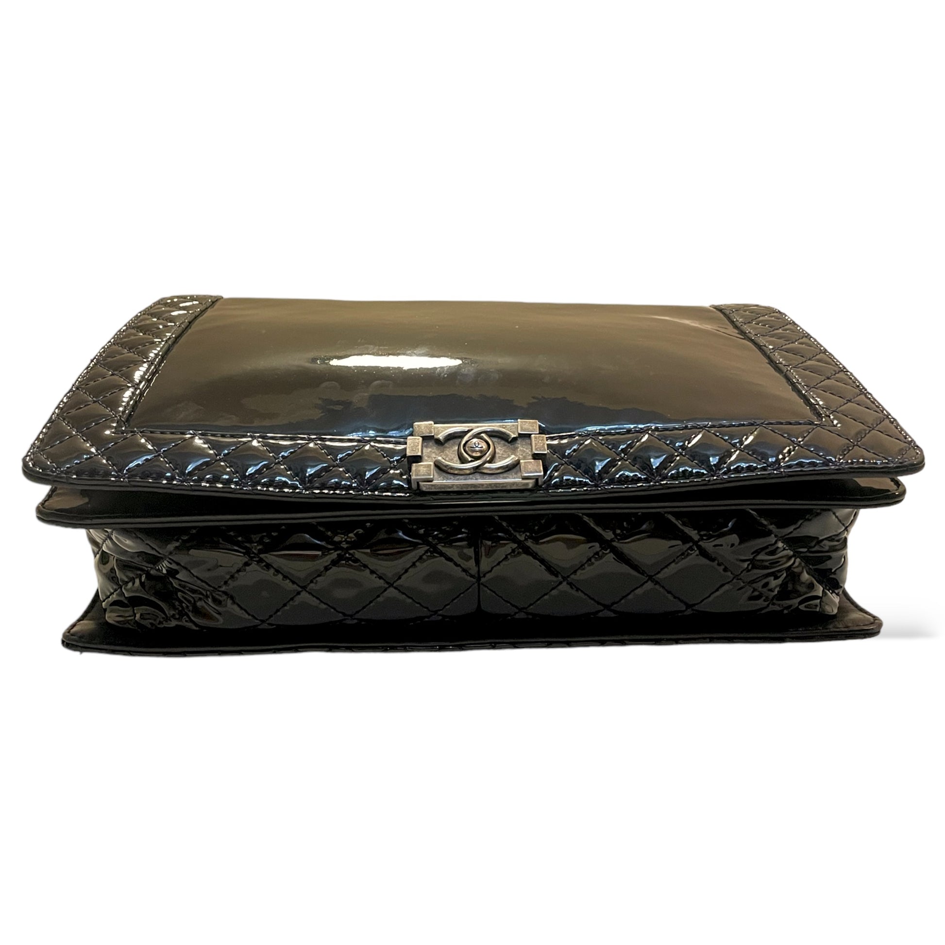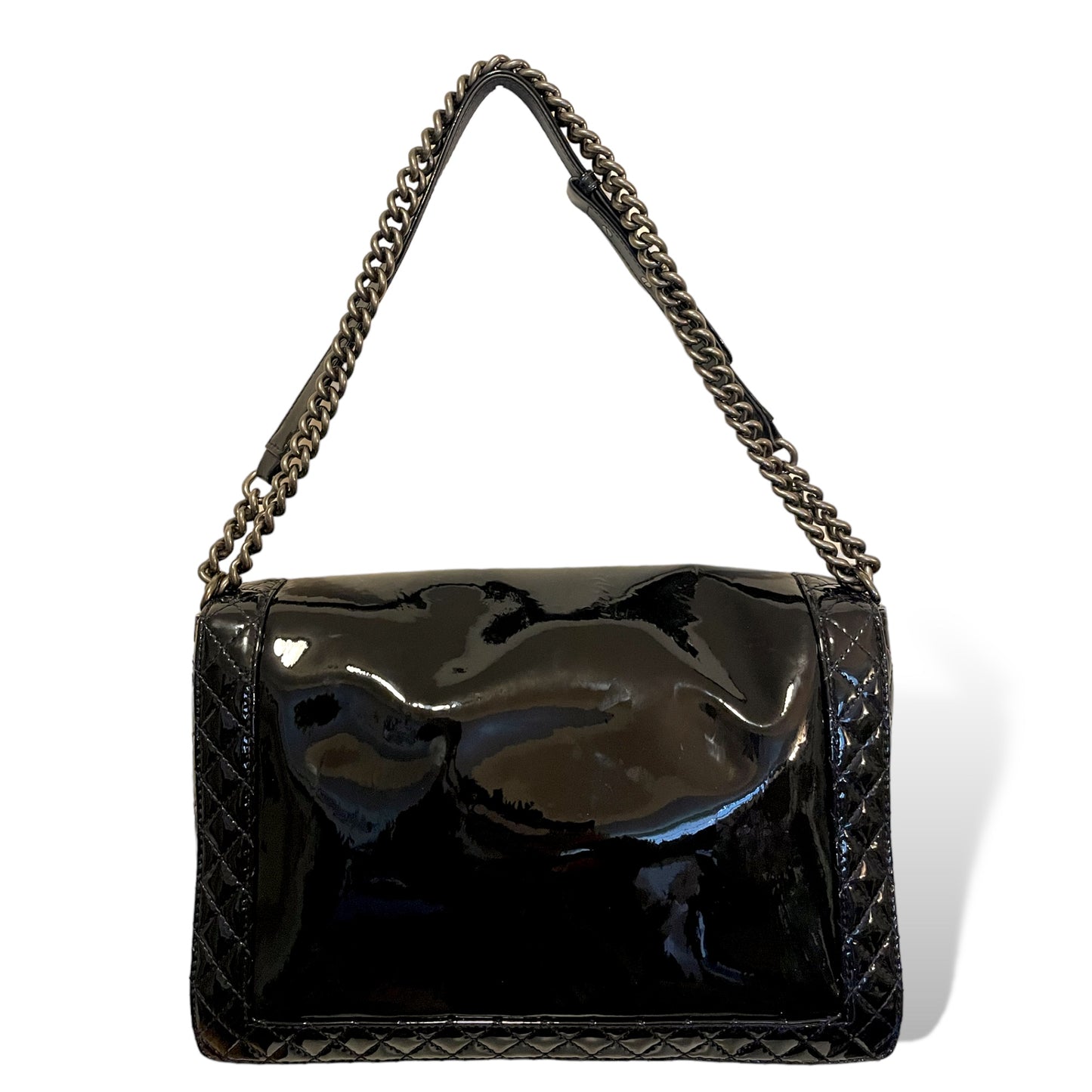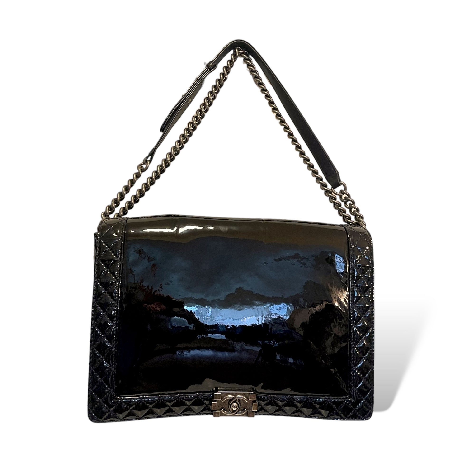 Crafted with the highest attention to detail, this Chanel Reverso Boy Flap Bag Patent Large is a timeless investment piece that will elevate any outfit and last for years to come.