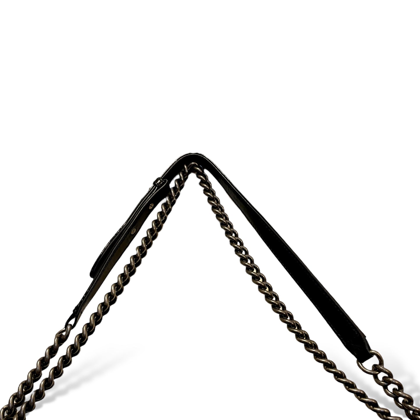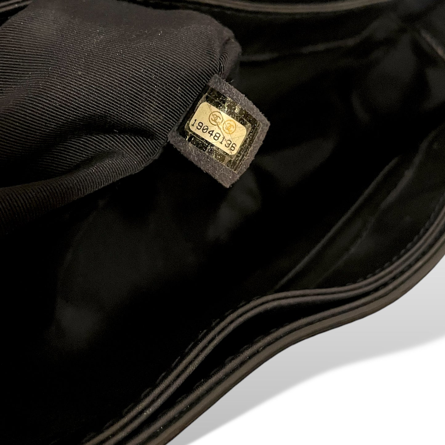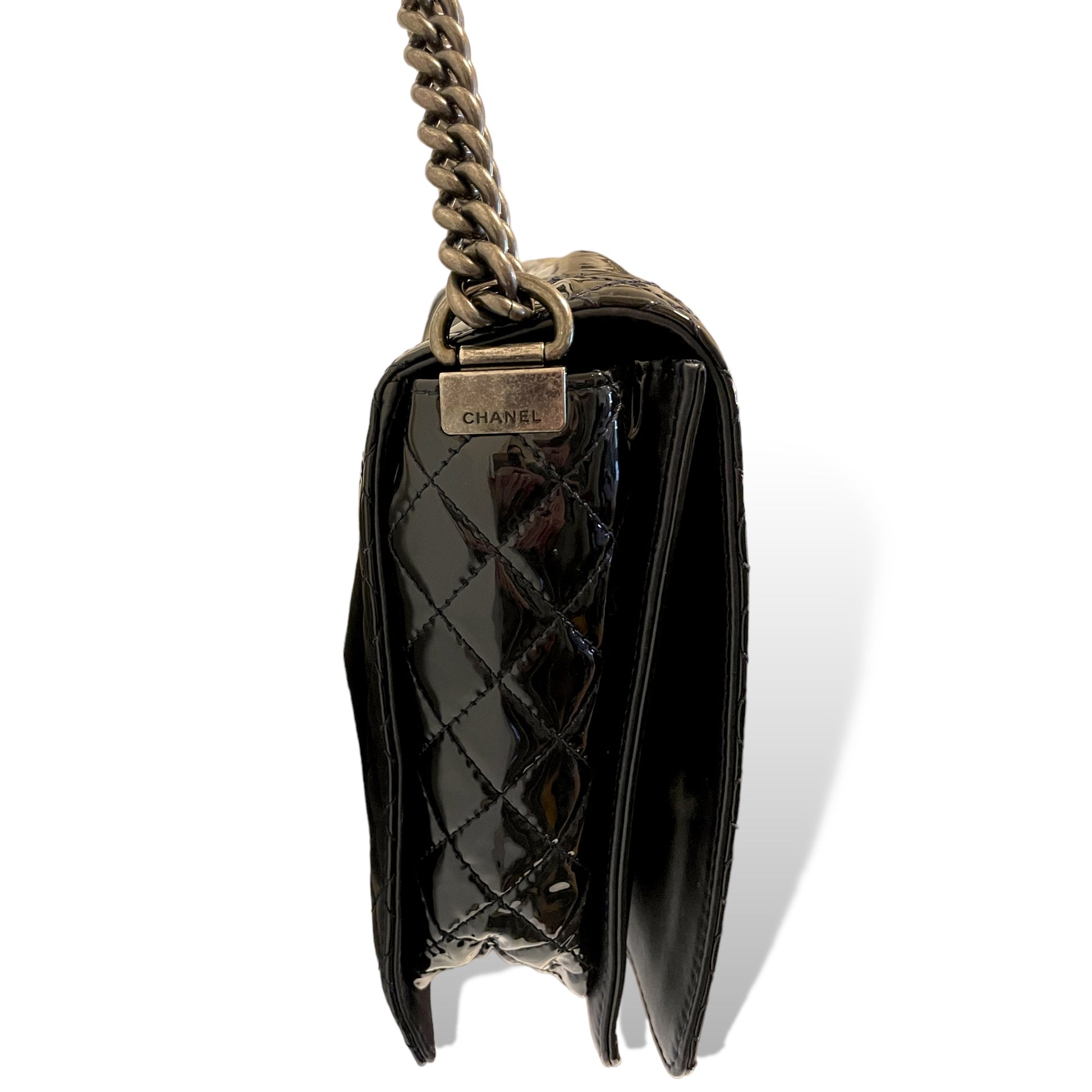 Crafted with the highest attention to detail, this Chanel Reverso Boy Flap Bag Patent Large is a timeless investment piece that will elevate any outfit and last for years to come.