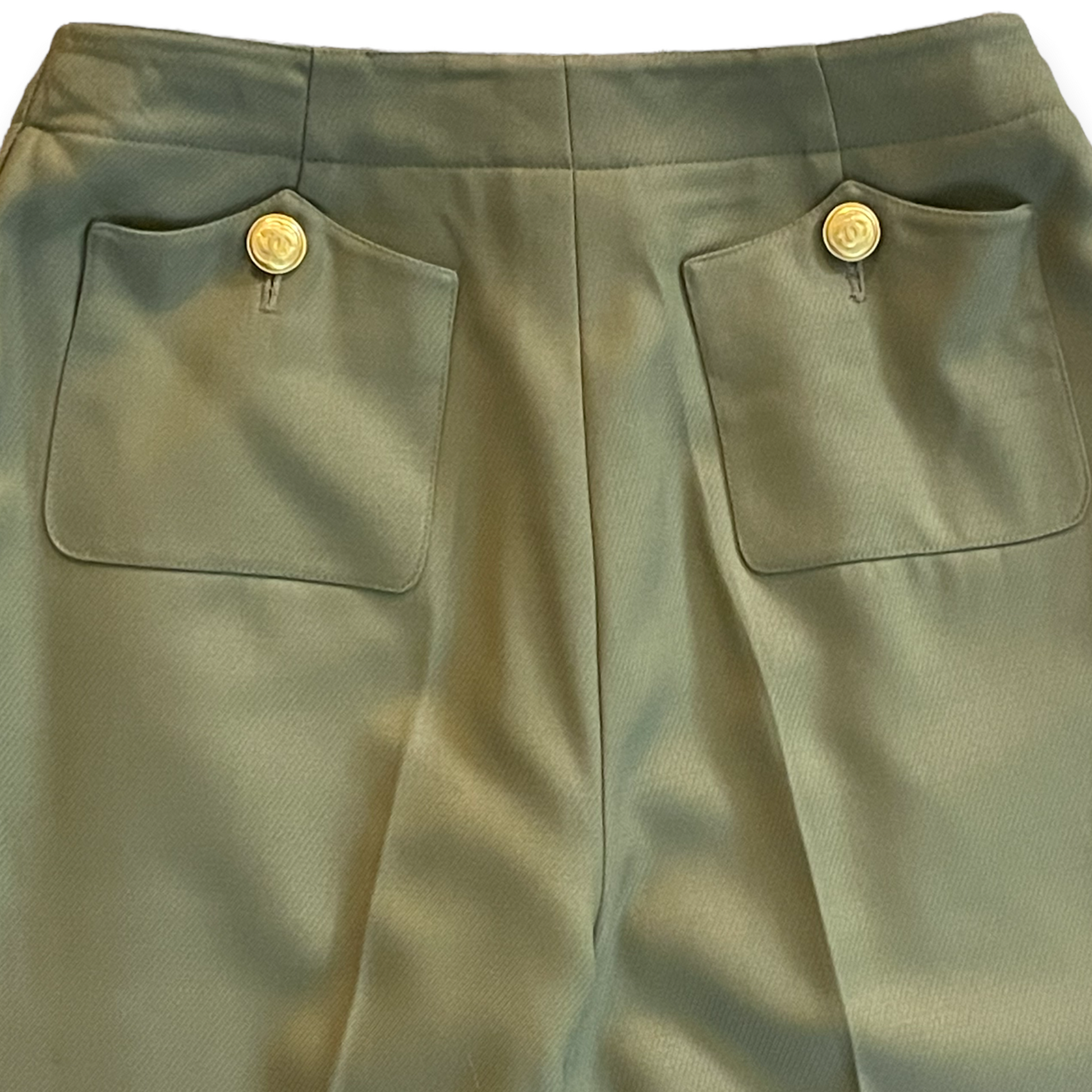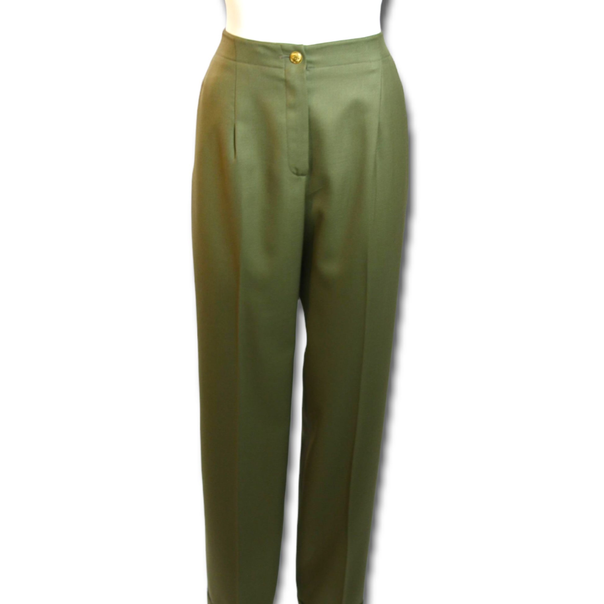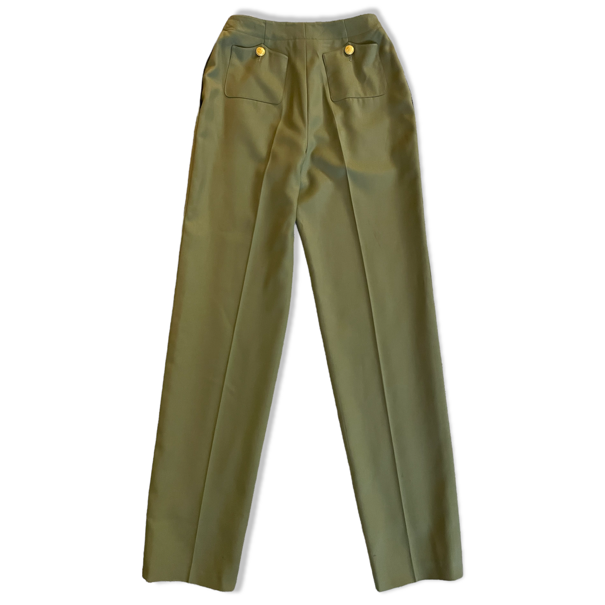 VINTAGE CHANEL Women’s Military Green Stunning High-Waisted Wool & Silk Tailored Pants |Size: EU36|