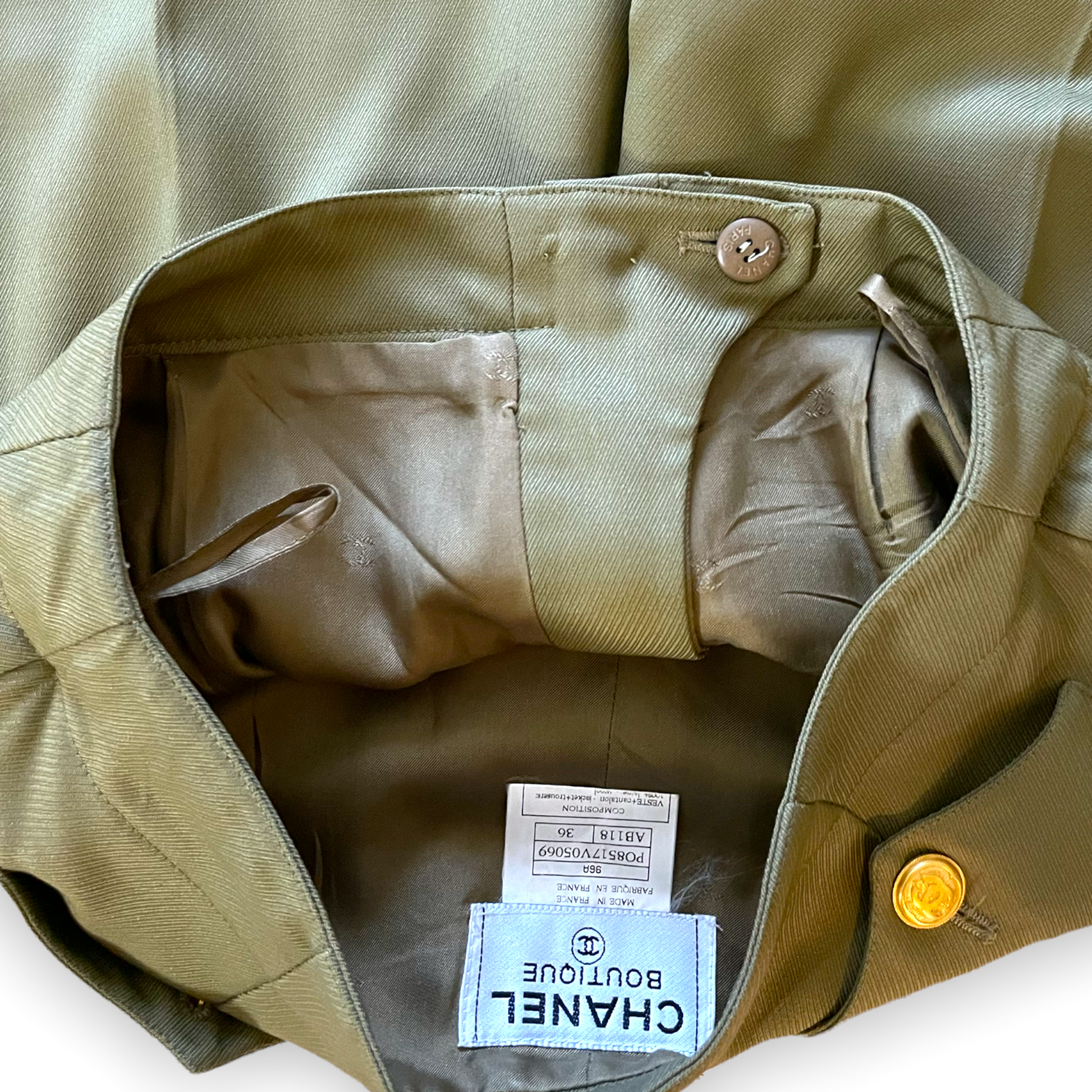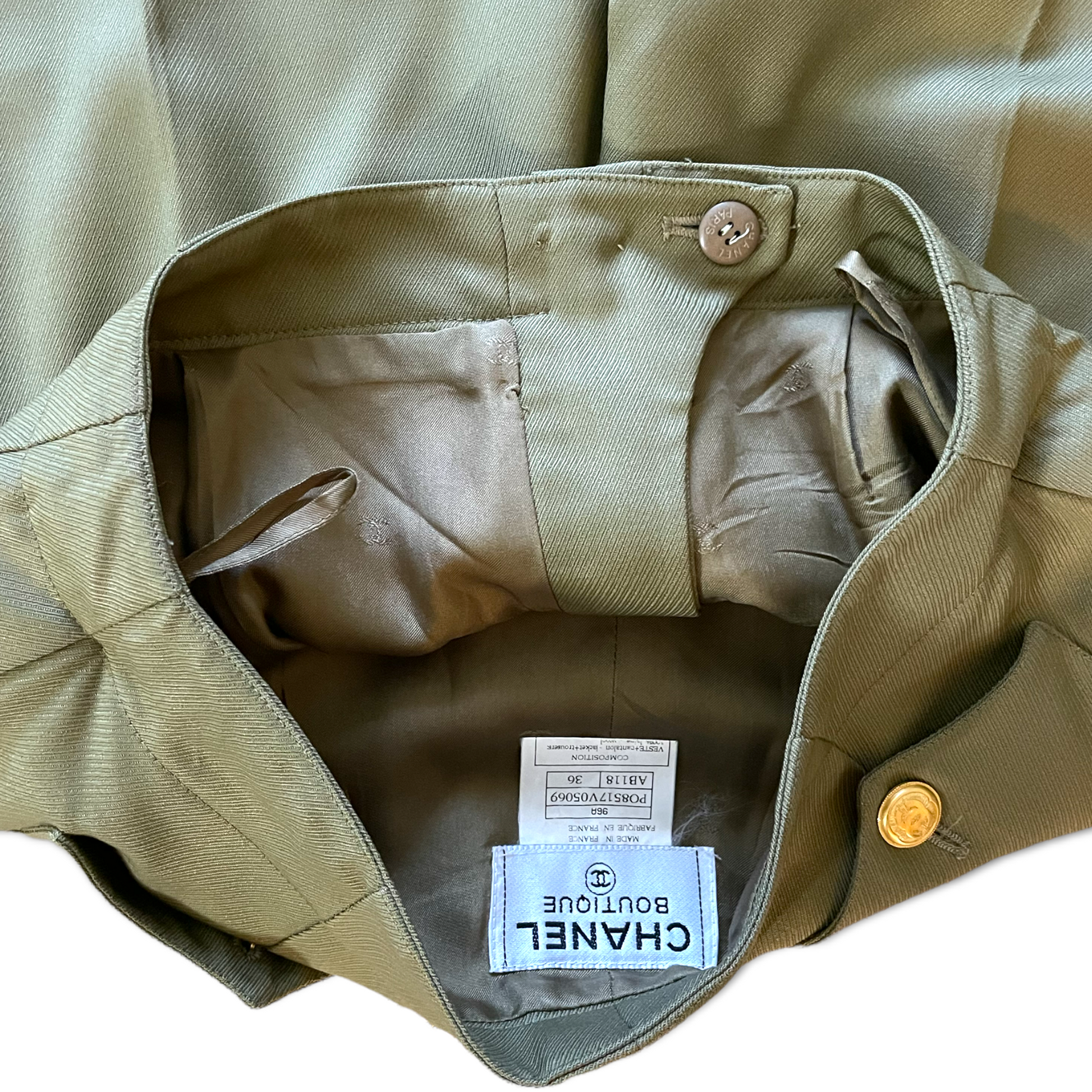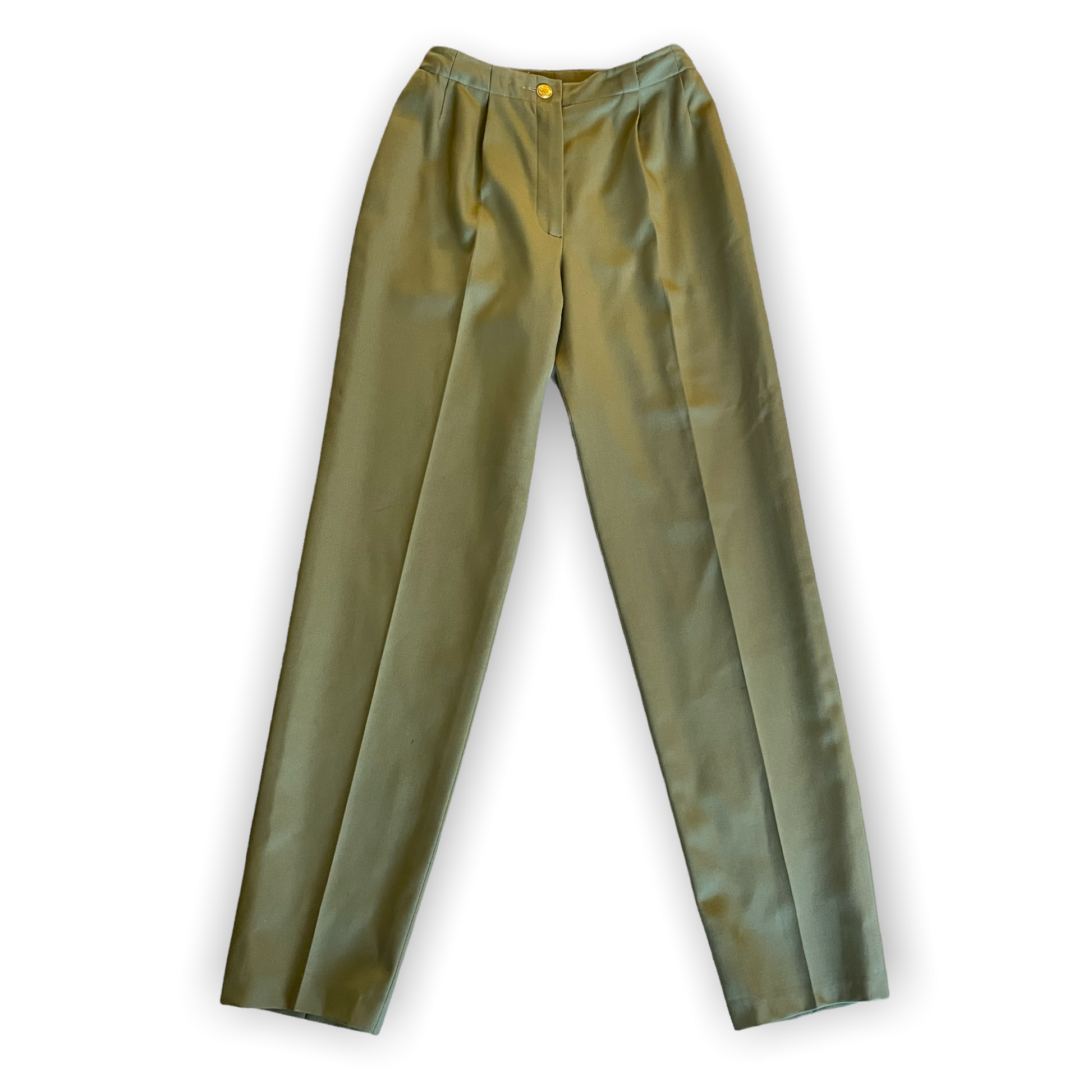 VINTAGE CHANEL Women’s Military Green Stunning High-Waisted Wool & Silk Tailored Pants |Size: EU36|