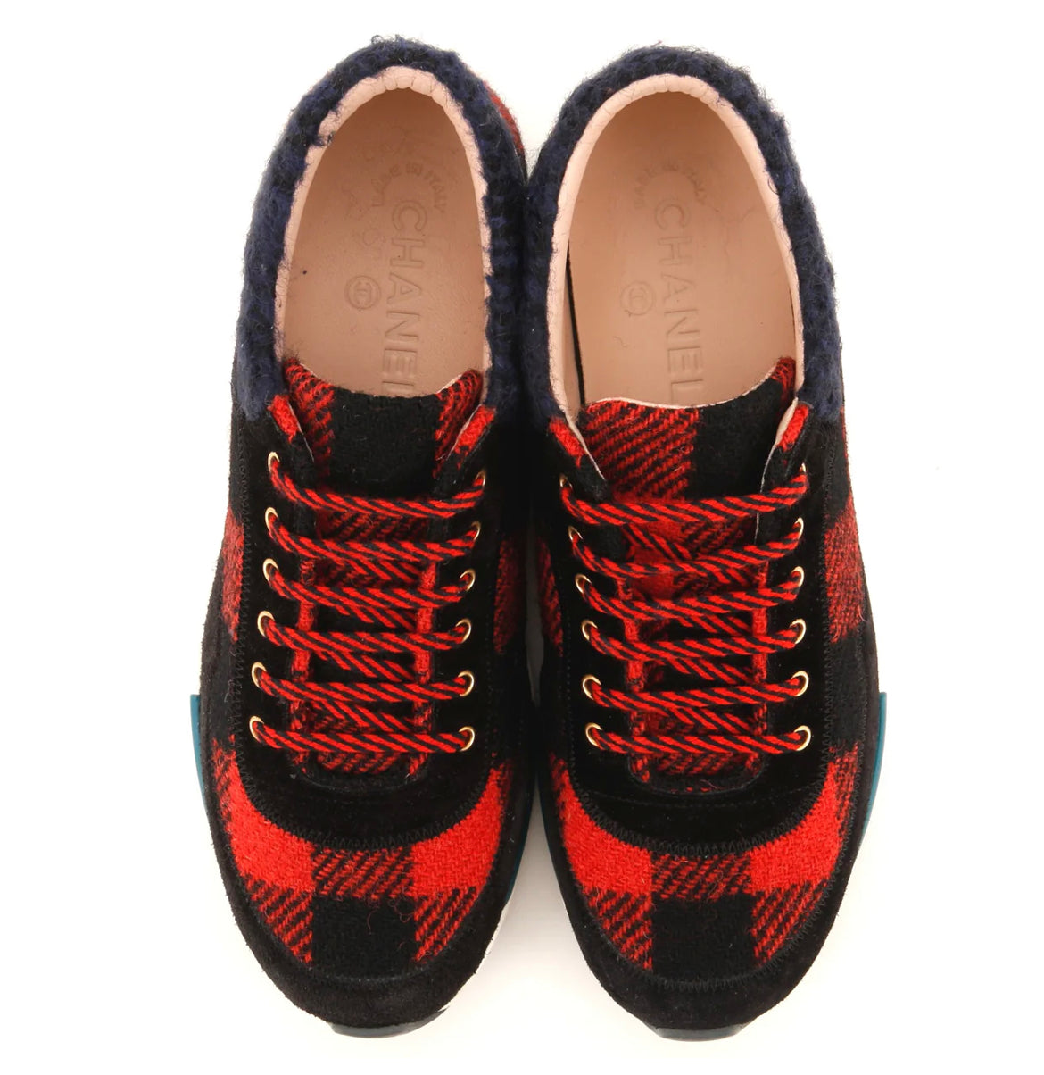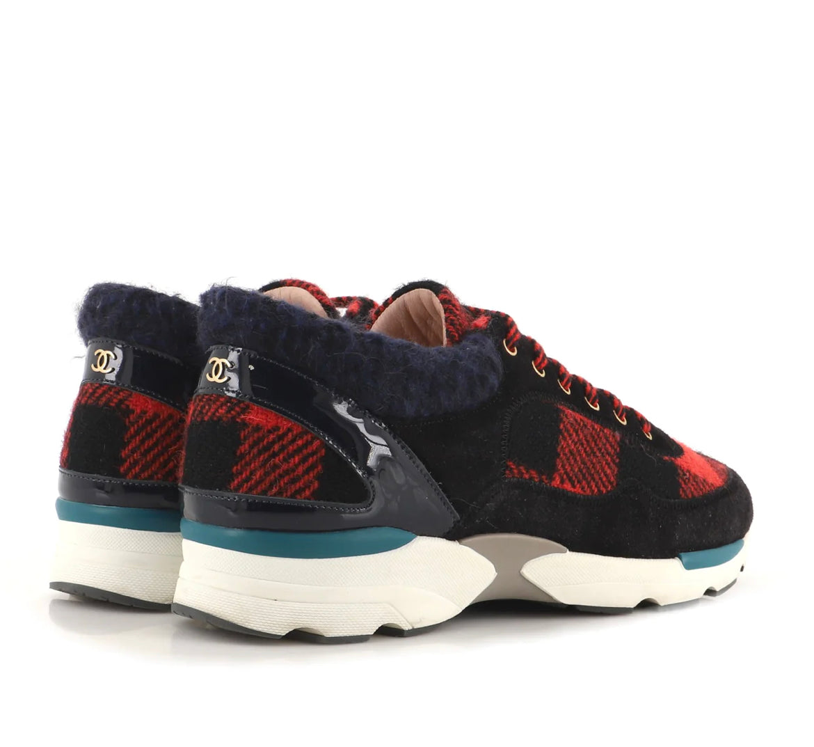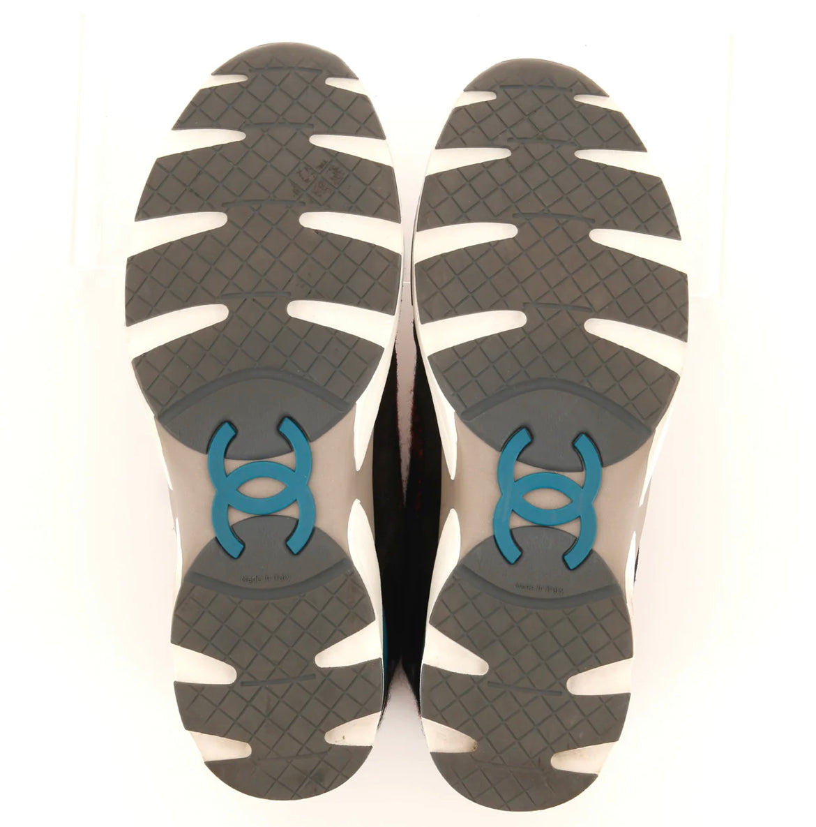 Chanel Women's CC Lace Up Sneakers Suede with Leather and Tweed | Size: US 8 | IT 38 |