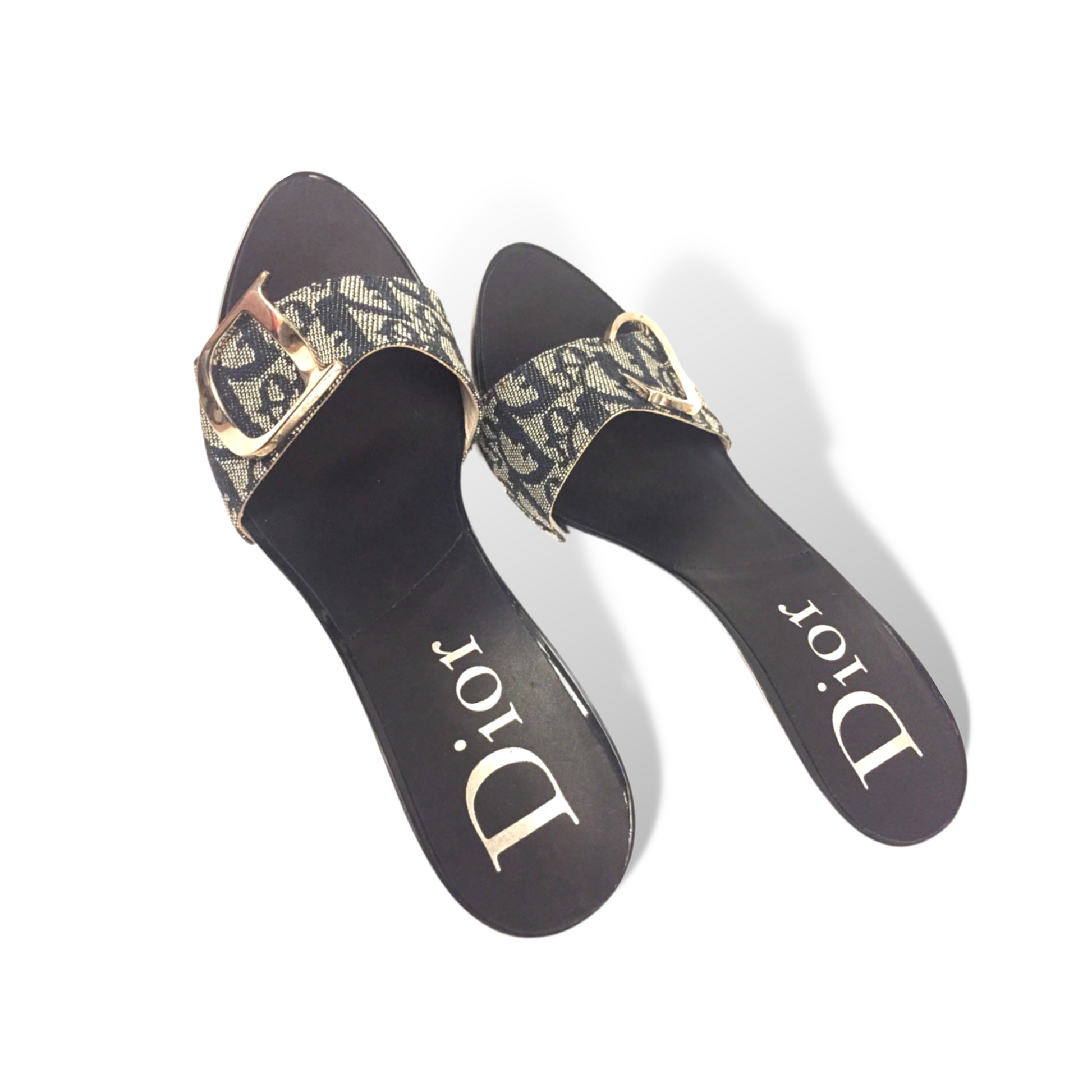 CHRISTIAN DIOR Monogram Trotter Mule Heels with Large Silver C & D Detail EU39