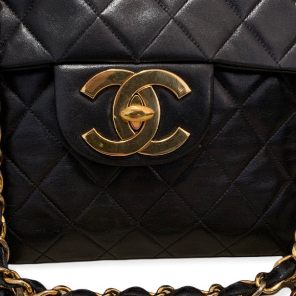 CHANEL Classic Large Black Quilted Vintage Large Single Flap Shoulder Bag