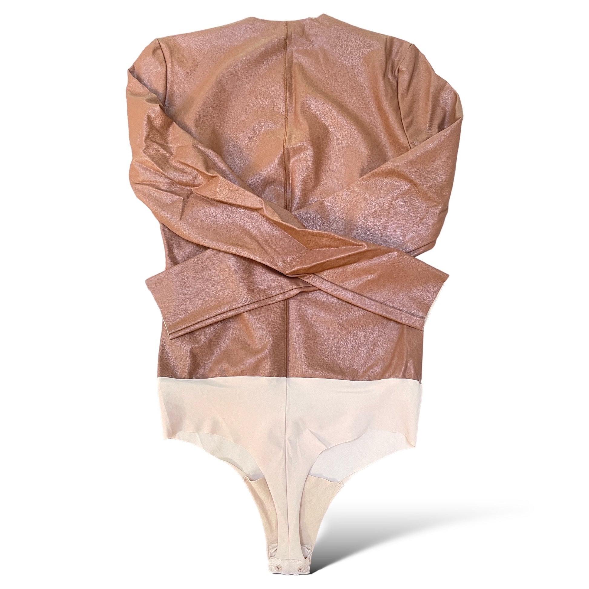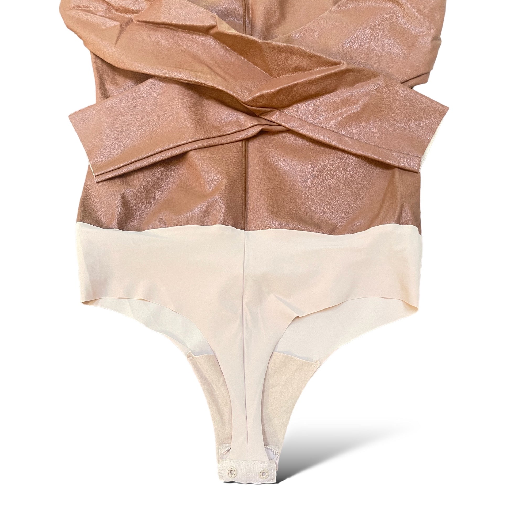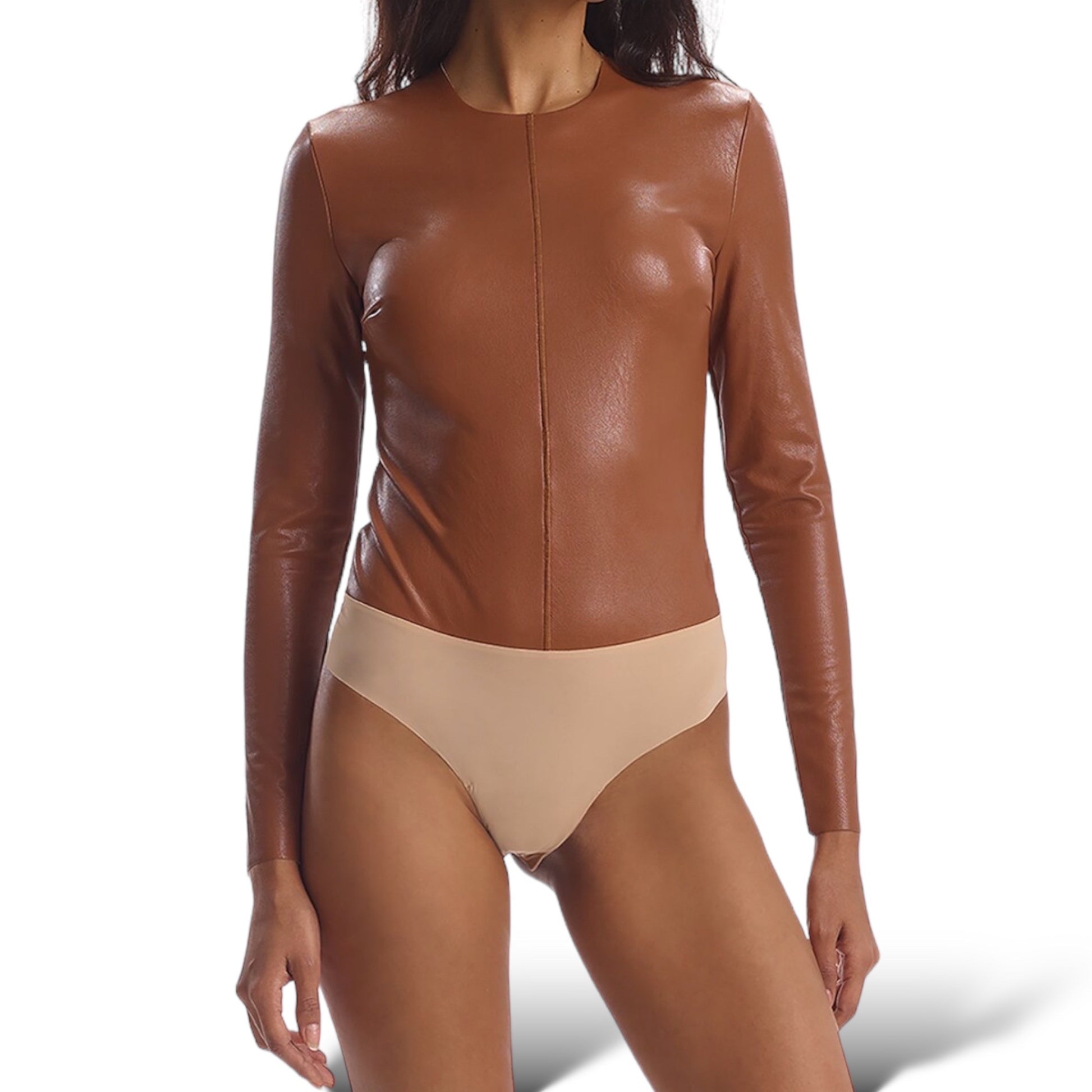 COMMANDO Faux Leather Long Sleeve Cocoa Brown Bodysuit | S |