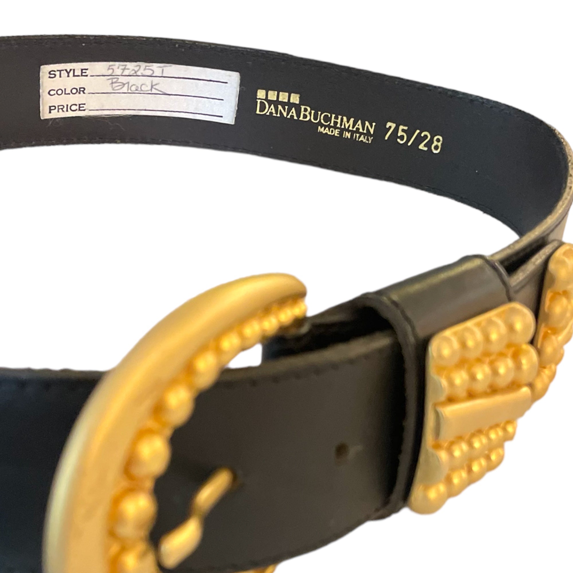 DANA BUCHMAN Made in Italy Black Leather Belt with Brushed Gold Buckle