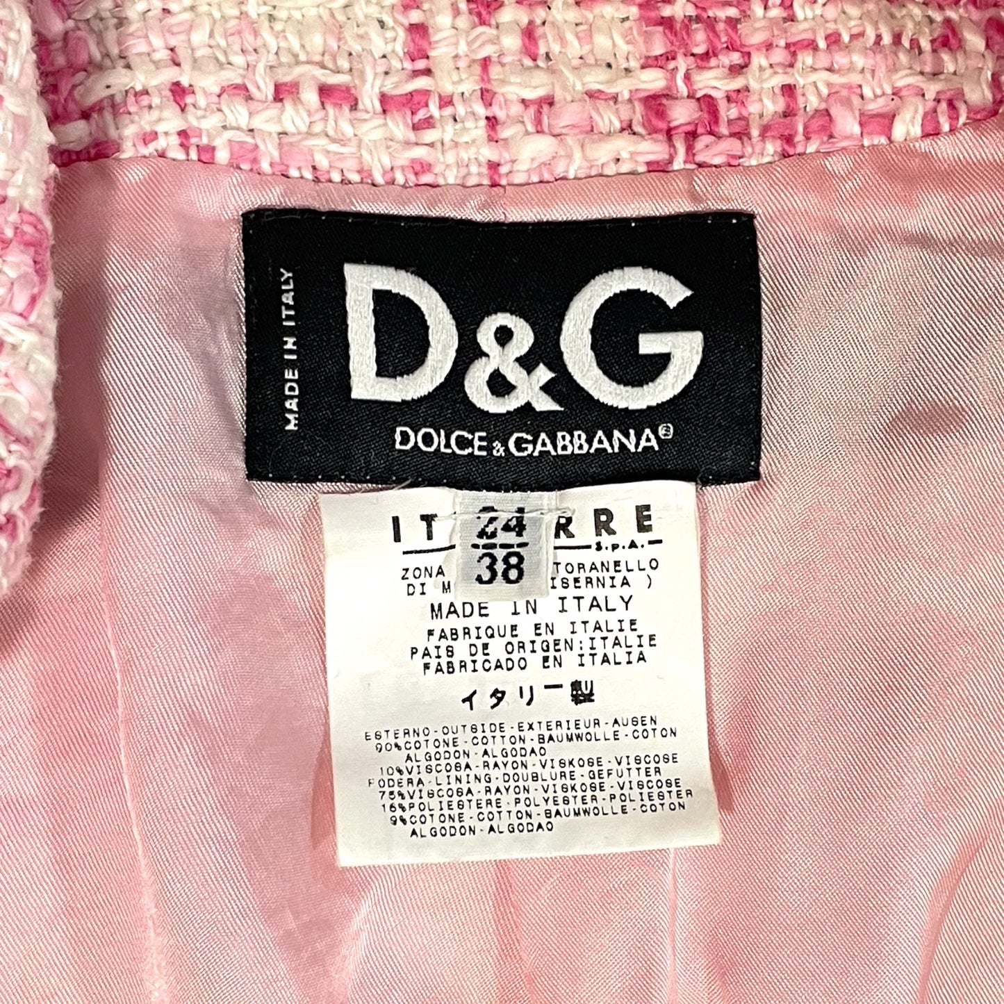 DOLCE & GABBANA Pink Tweed & Denim Fitted Jacket | Size: 38 |
