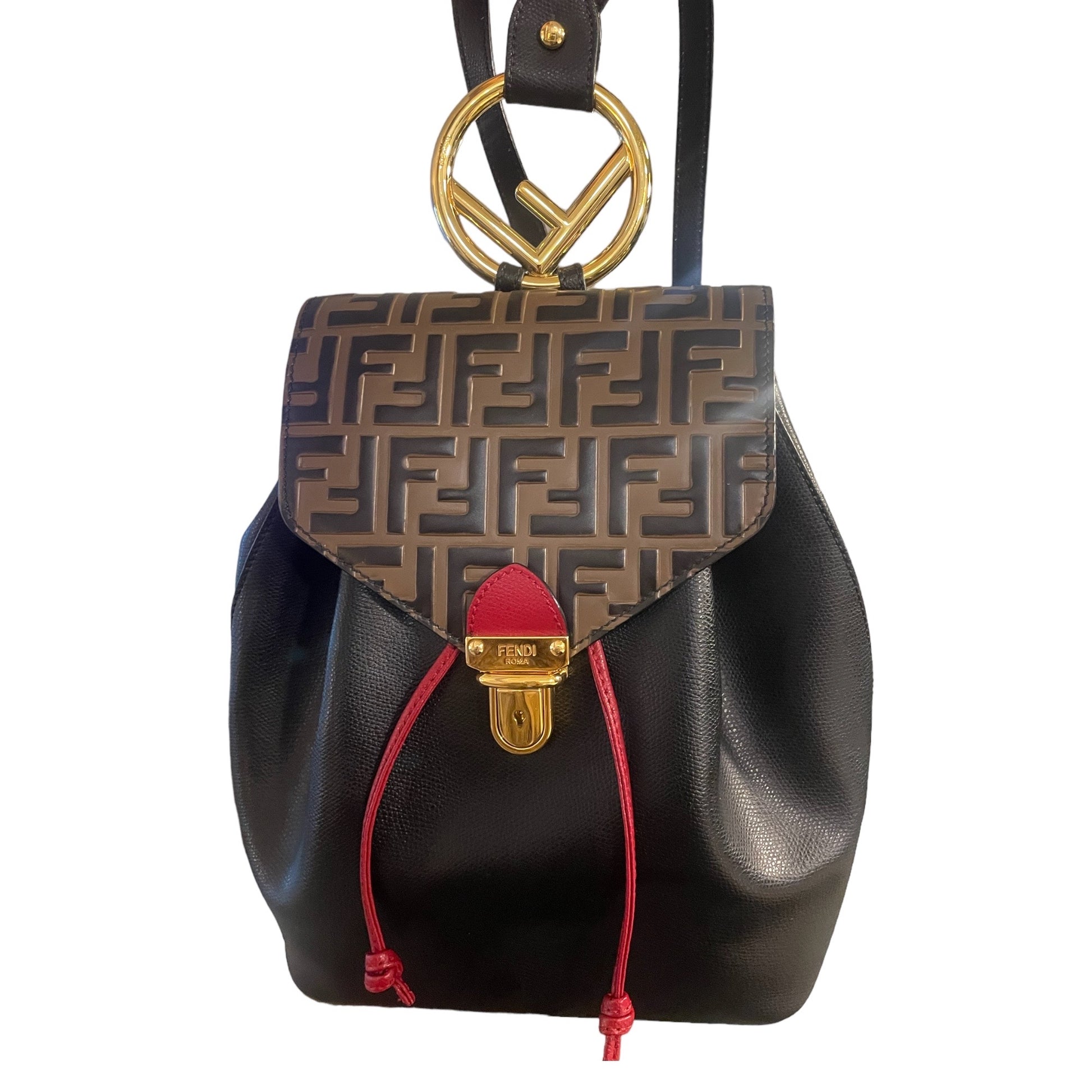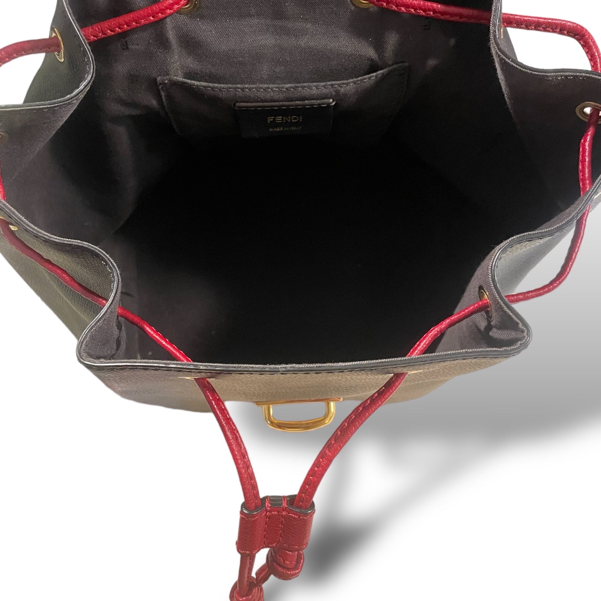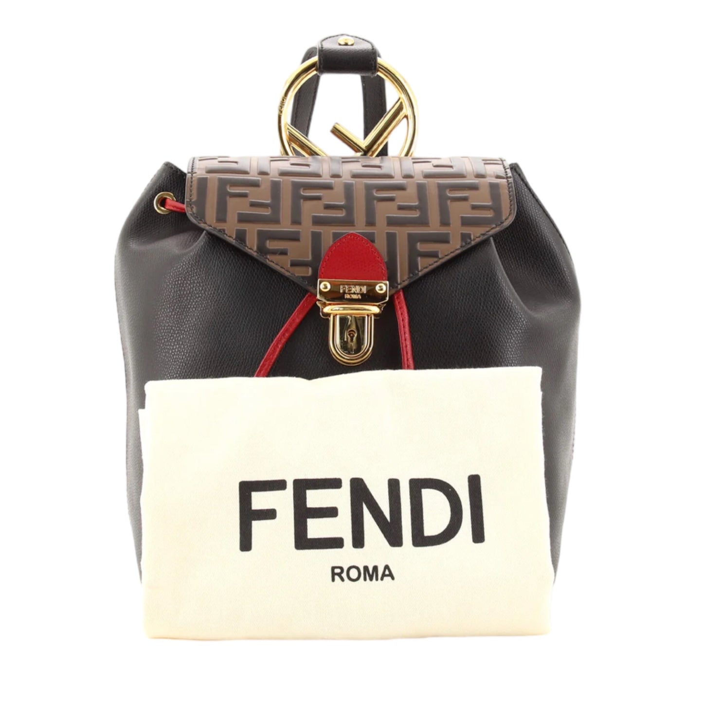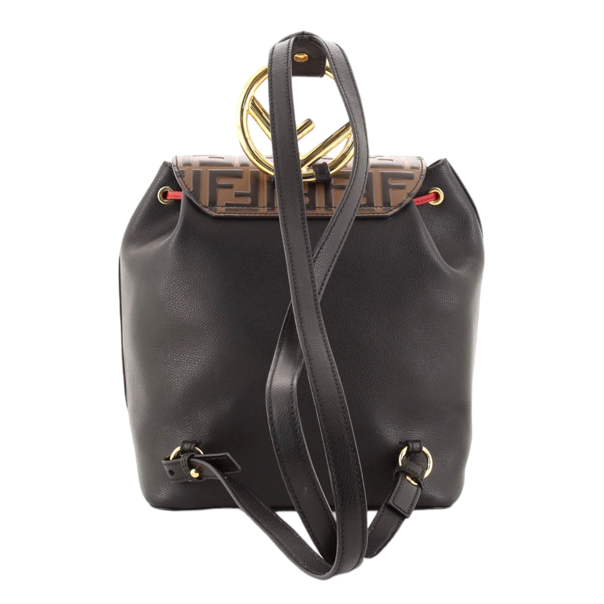 Fendi Drawstring Flap Backpack Leather with Zucca Embossed Detail