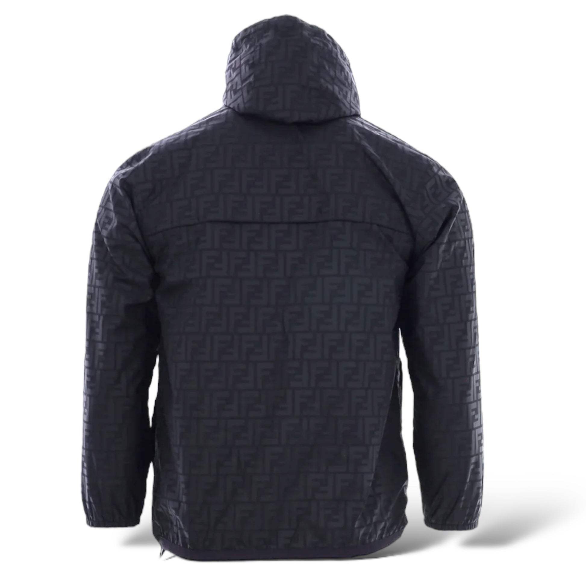 Fendi x K-Way Gold-Tone/Black Zucca Printed Reversible Nylon Windbreaker |Size: MENS XS|