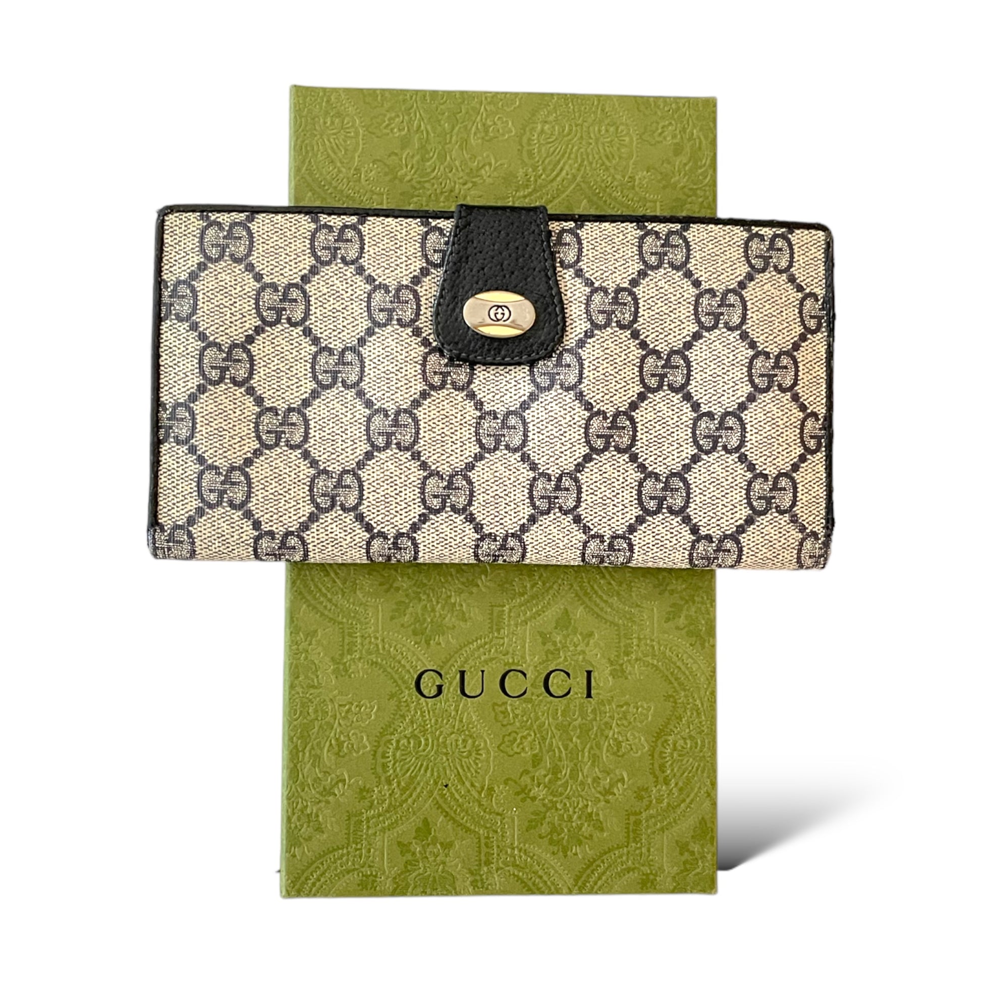GUCCI Vintage Navy Blue Classic GG Motif Monogram Long Wallet