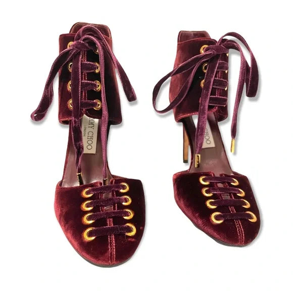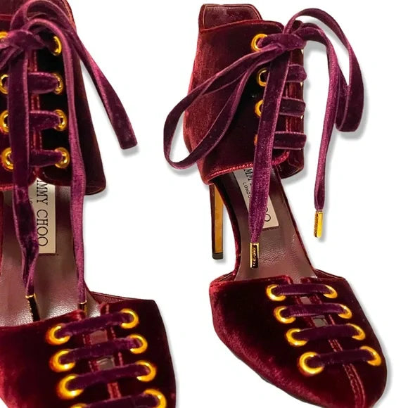 Jimmy Choo Velvet lace-up Tie Heels |Size:IT38|