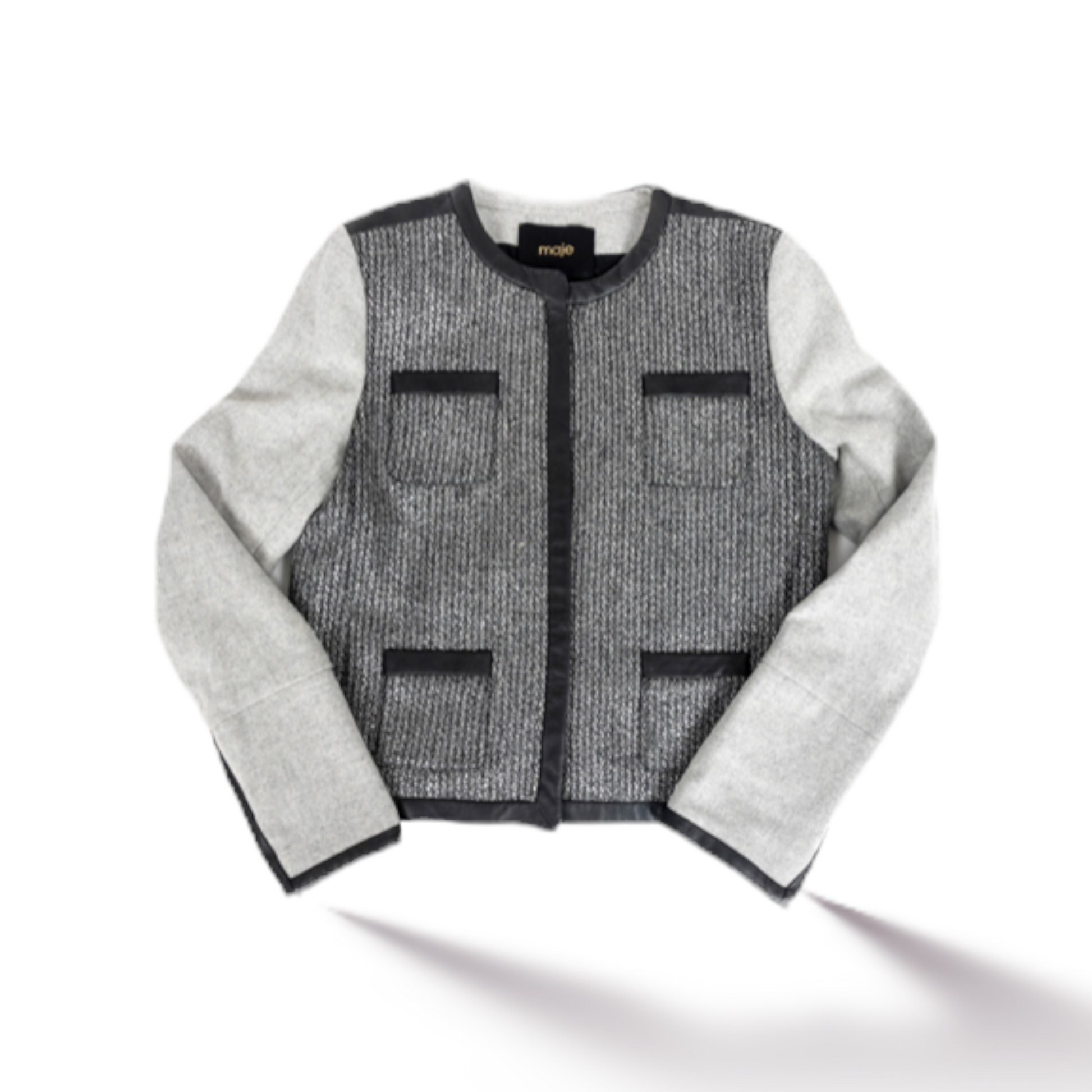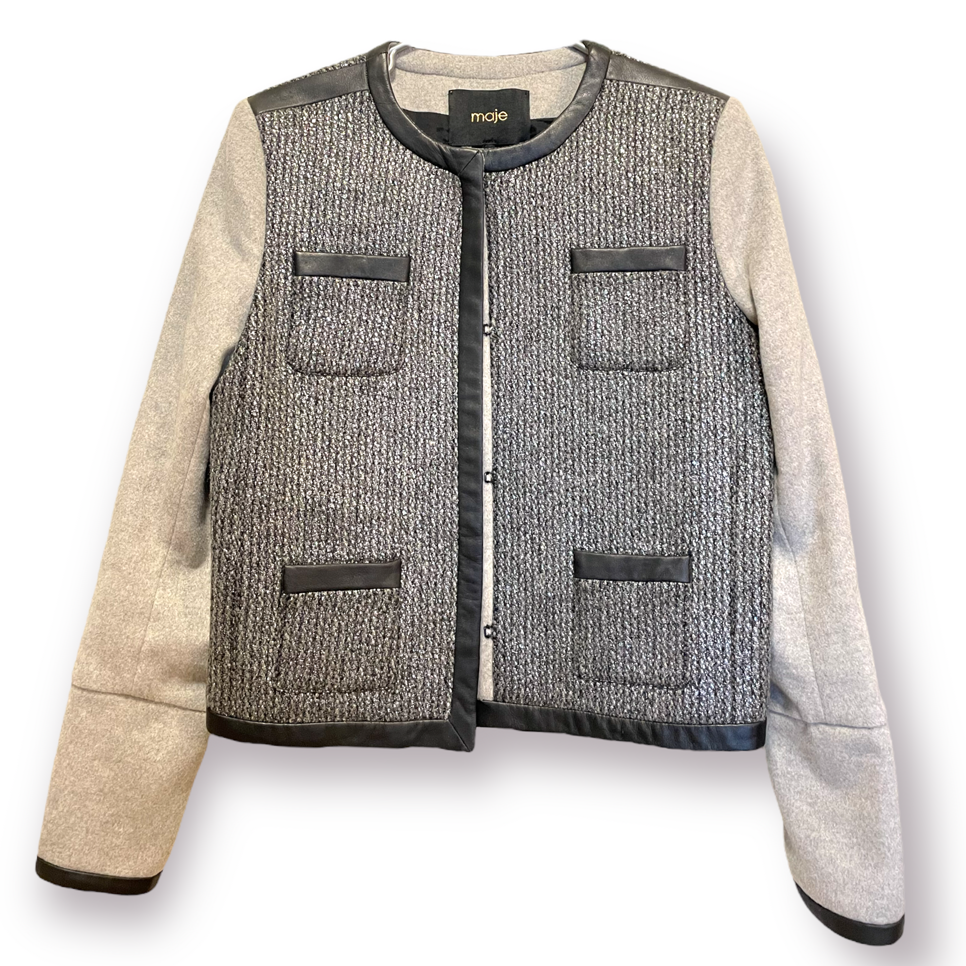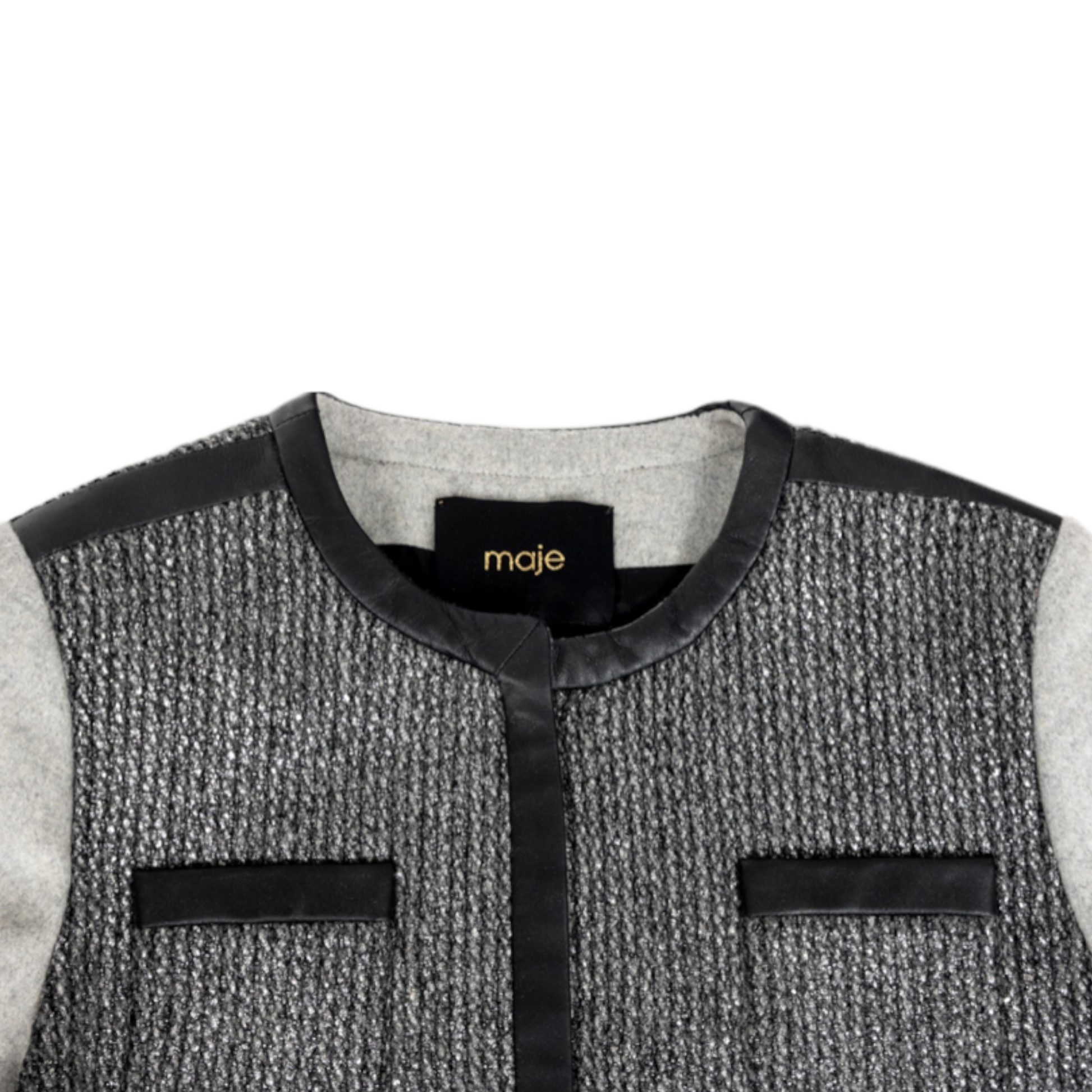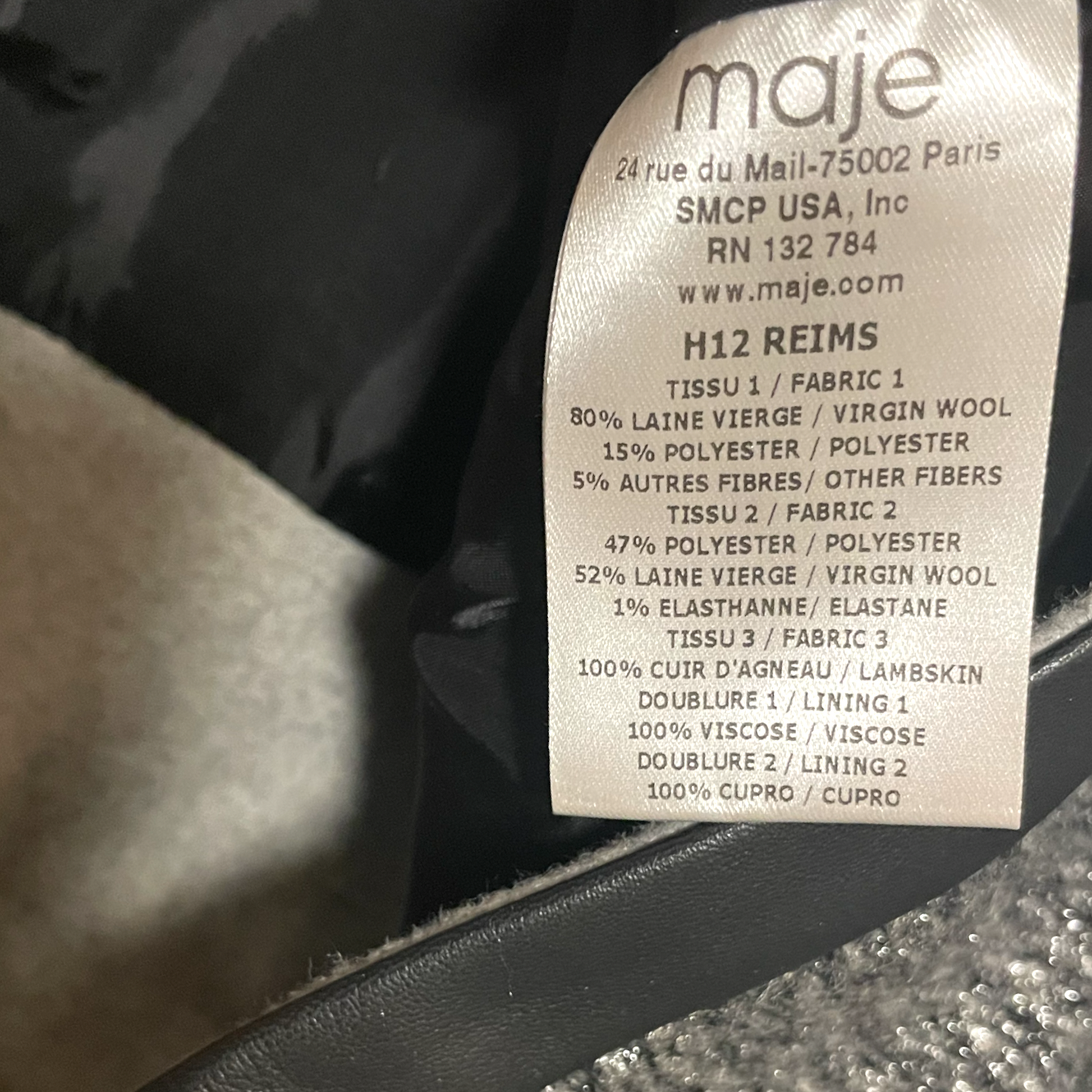 MAJE Virgin Wool & Lambskin Leather Trim STUNNING Fitted Coat