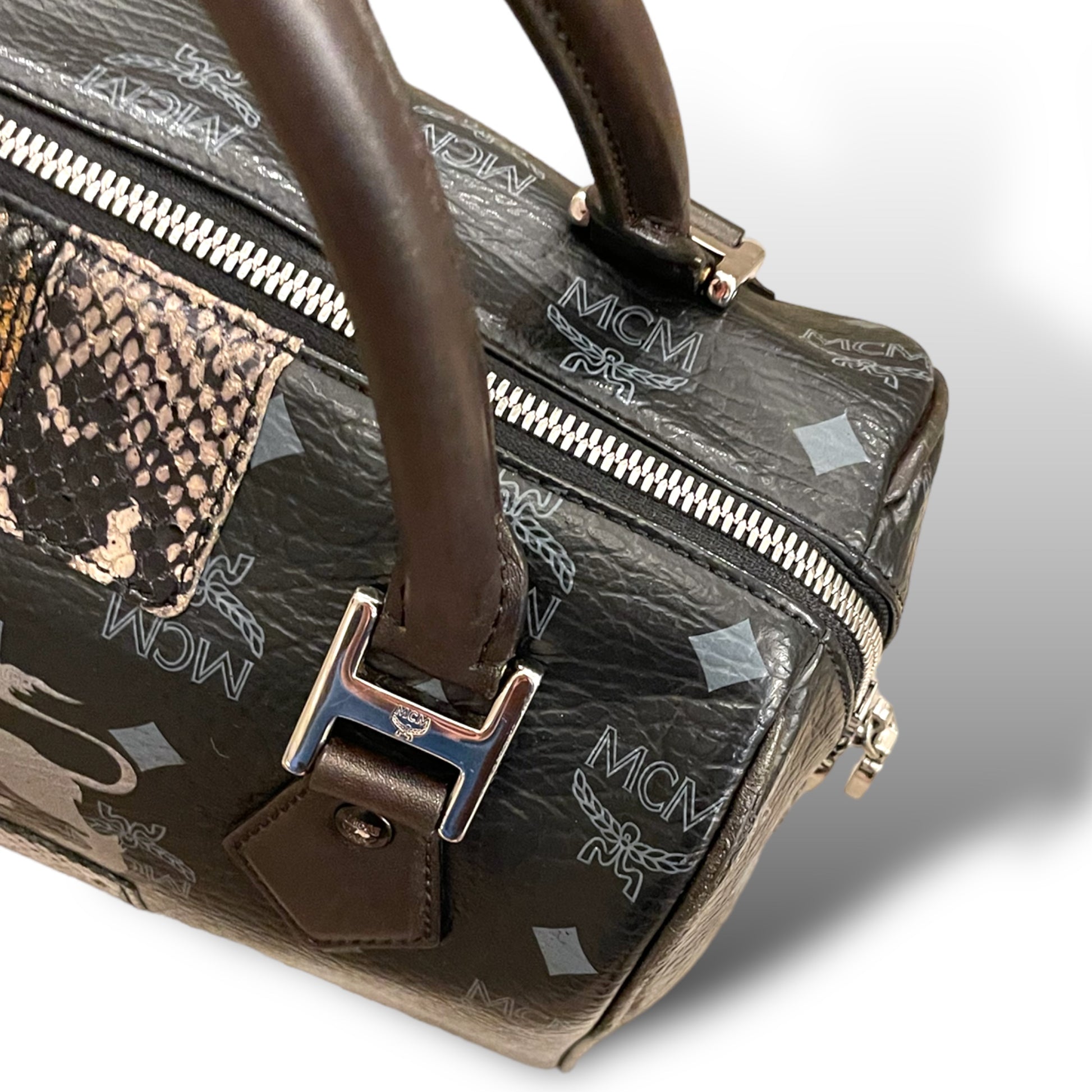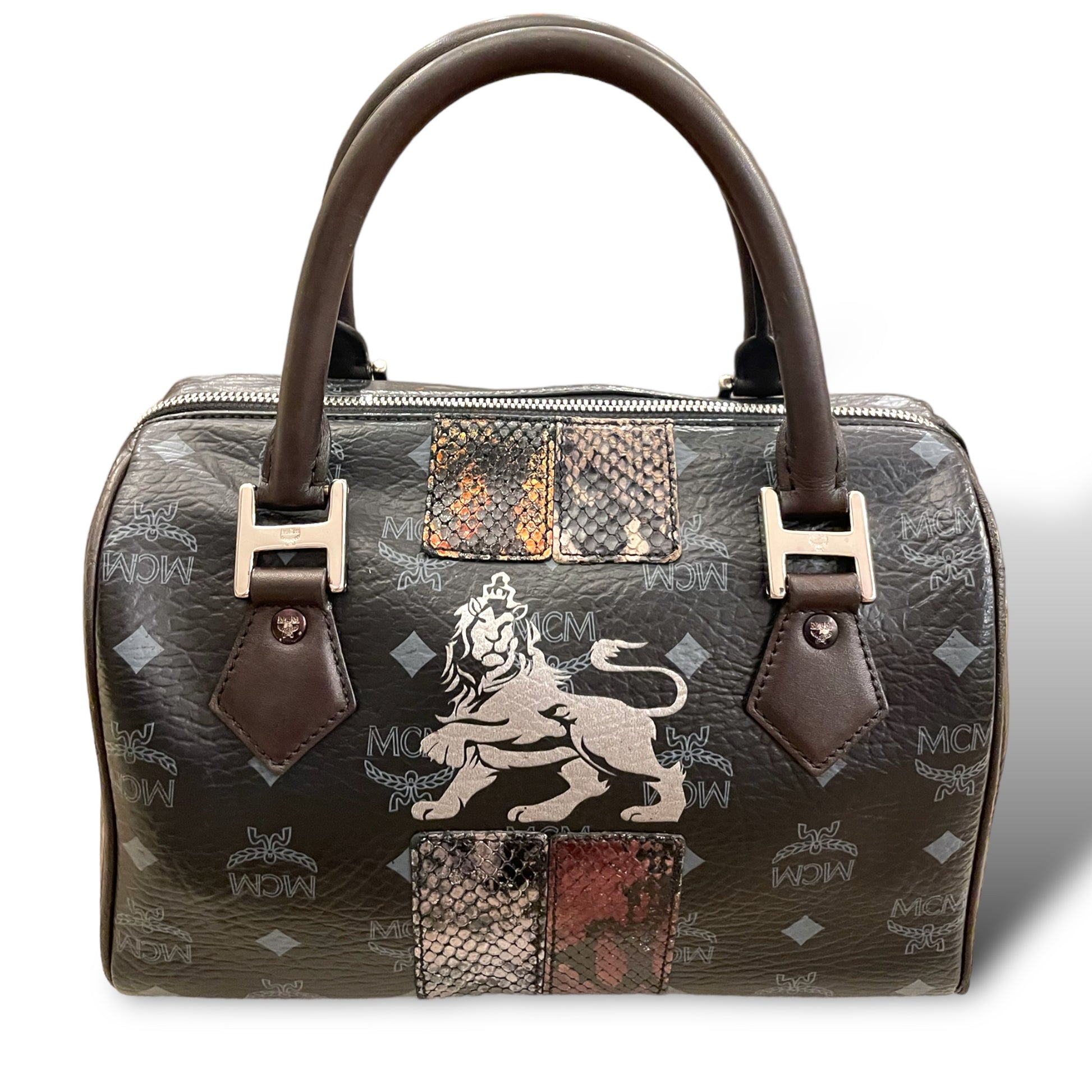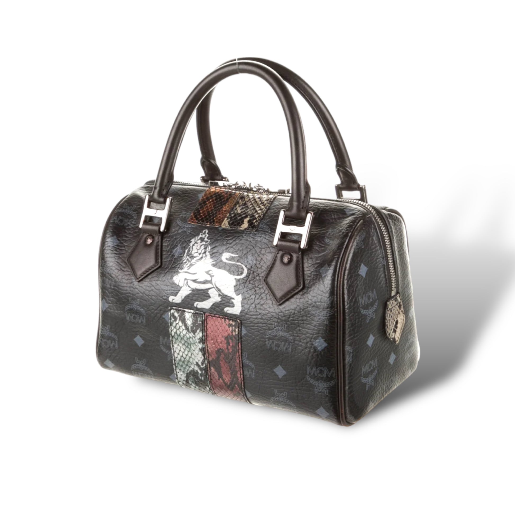 MCM Visetos Python Lion Princess Boston Top Handle Bag