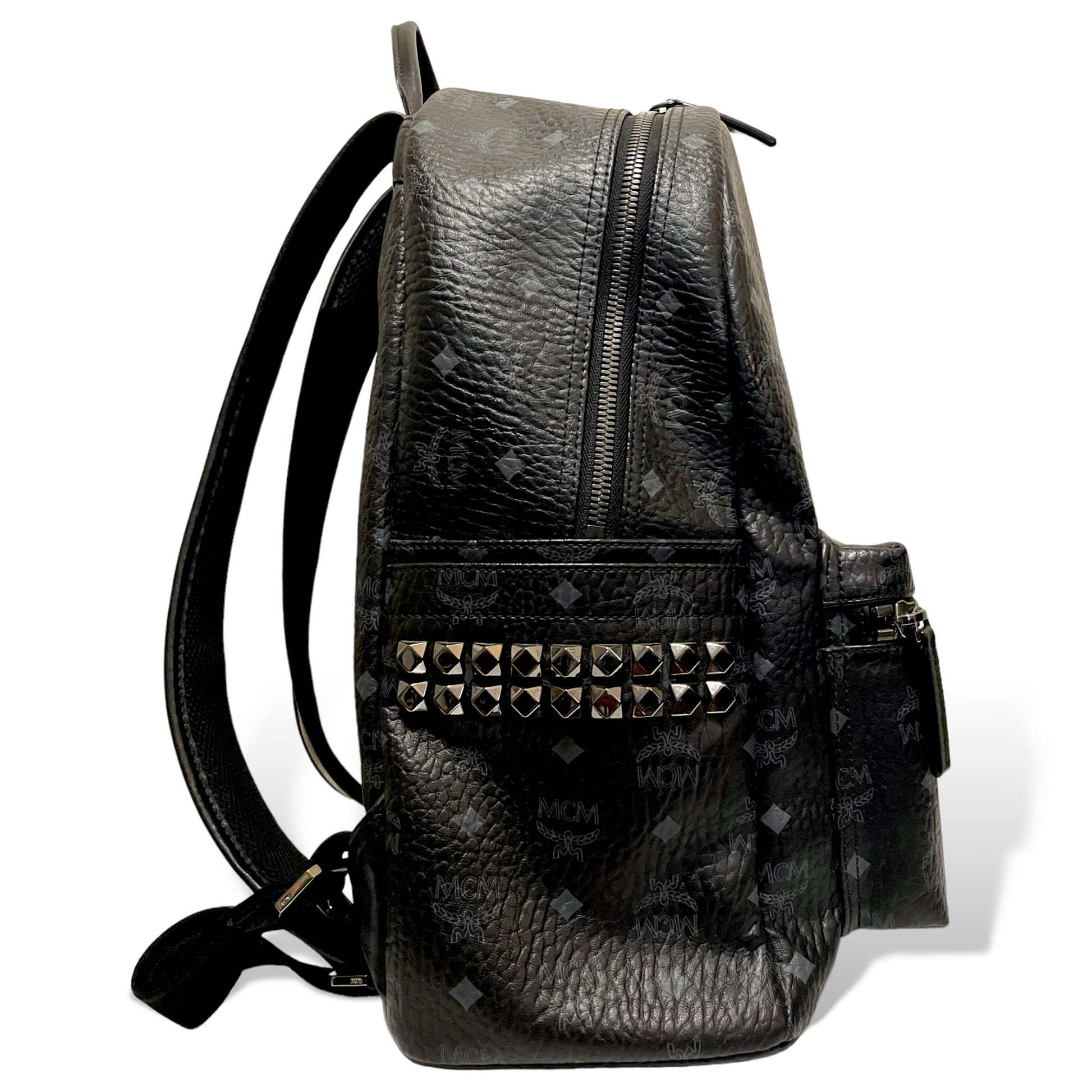 Men’s MCM Blk/Gry Monogram Stark Side Studs Backpack in Visetos |Size: 42.5cm|