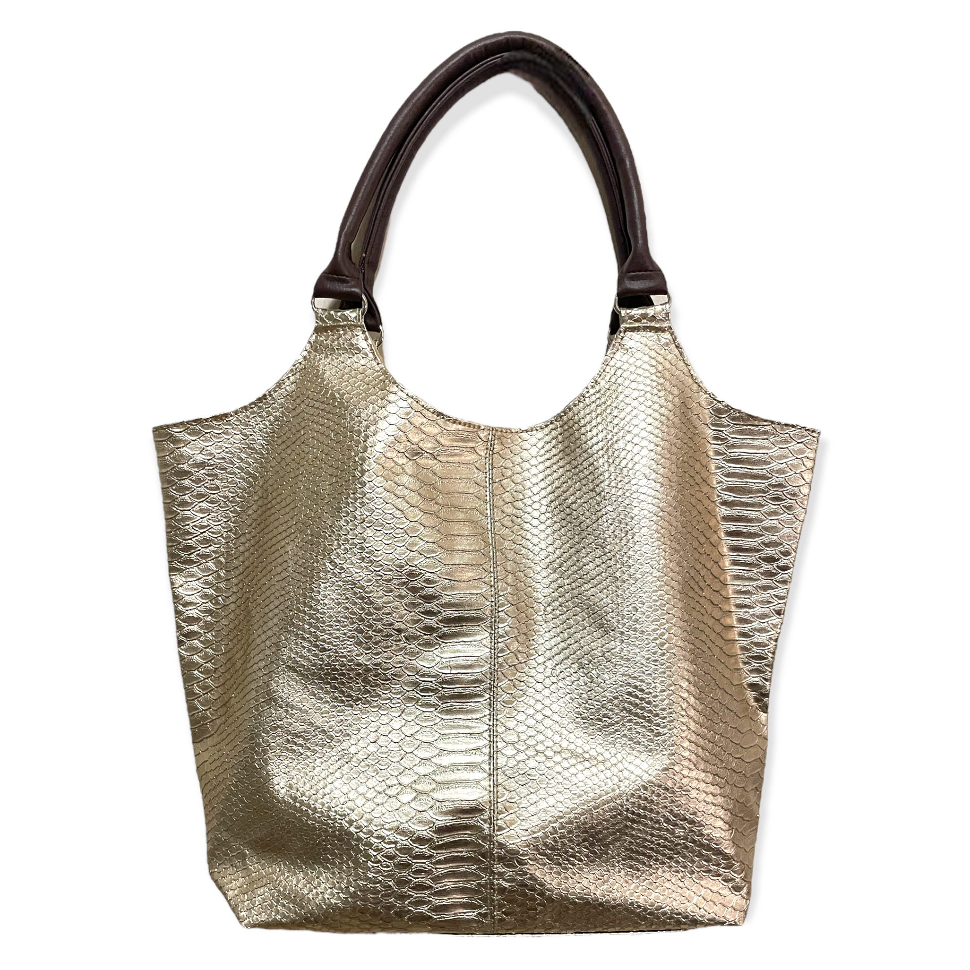 DETAILS: NEIMAN MARCUS Brand -Embossed Python -Double Handle -No inside compartments Measurements: (Approx.) -Length (Across): 18” -Width (Side): 5” -Height (Top—Bottom): 13” -Shoulder Drop: 9”