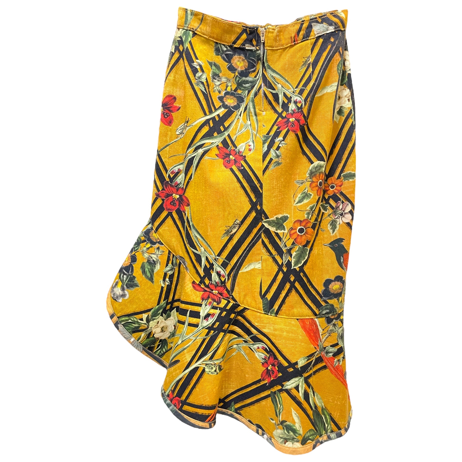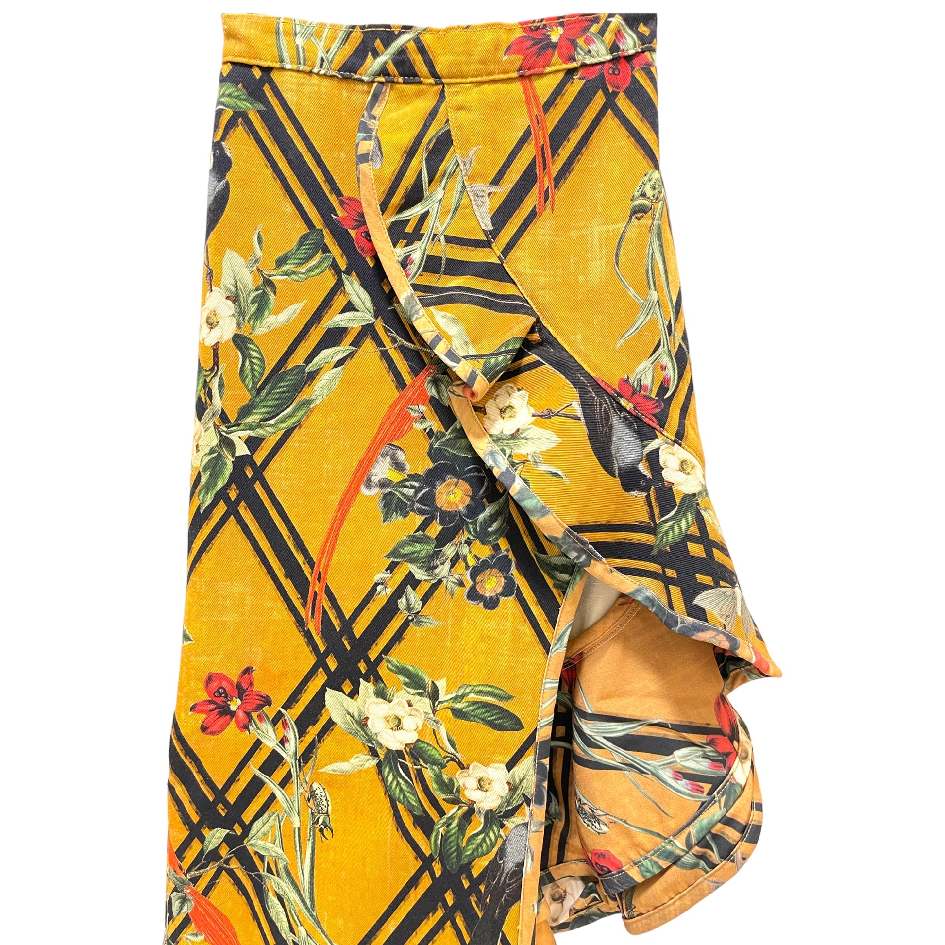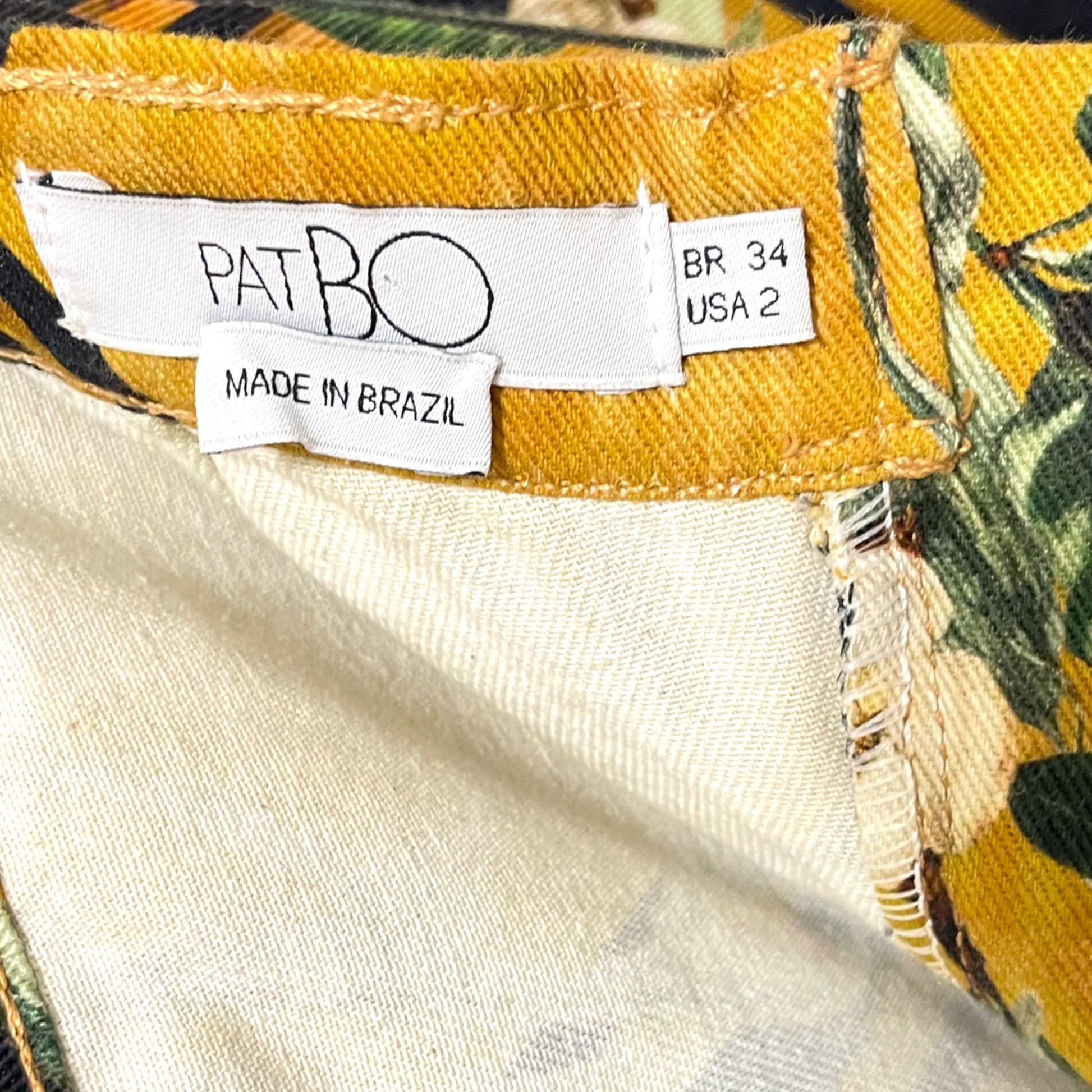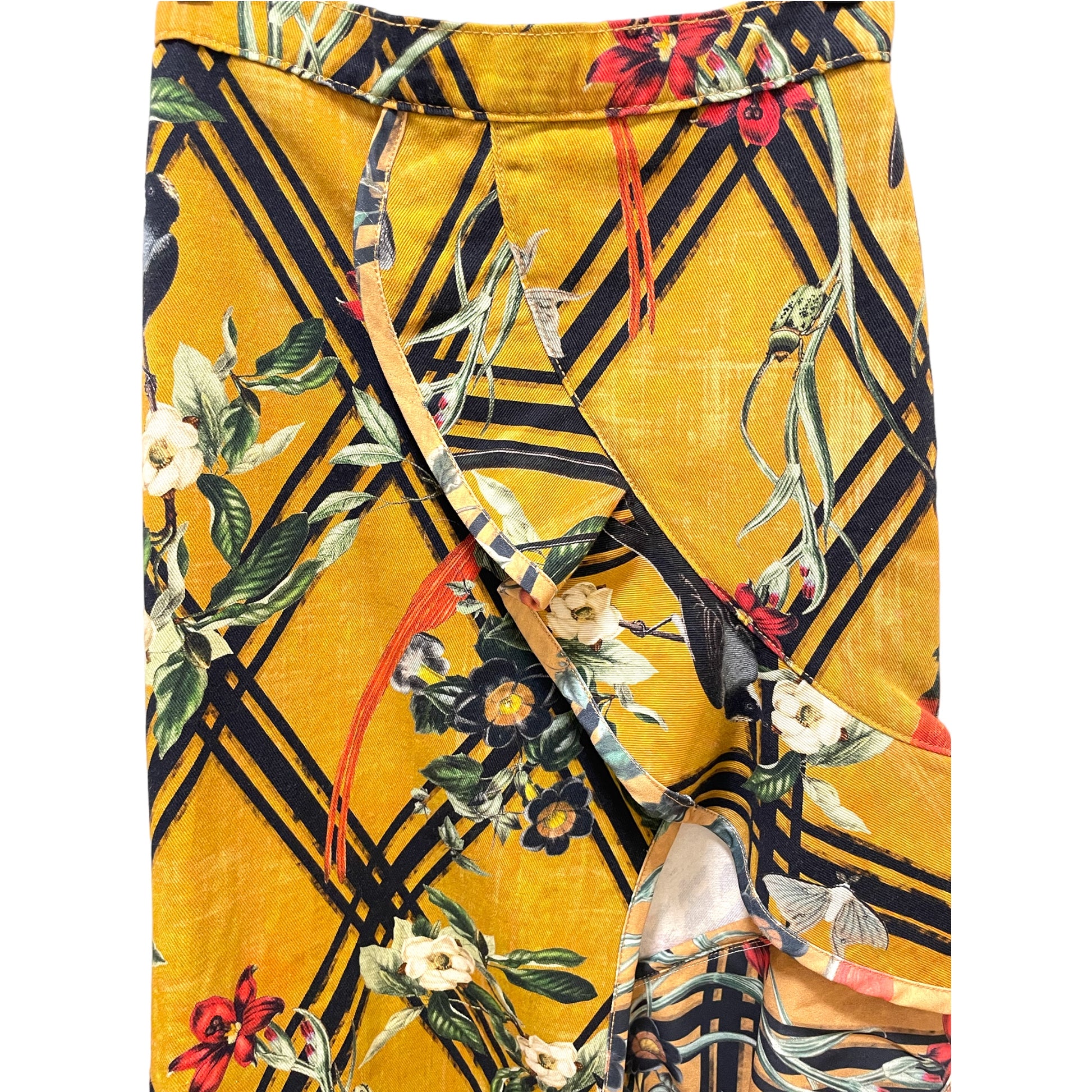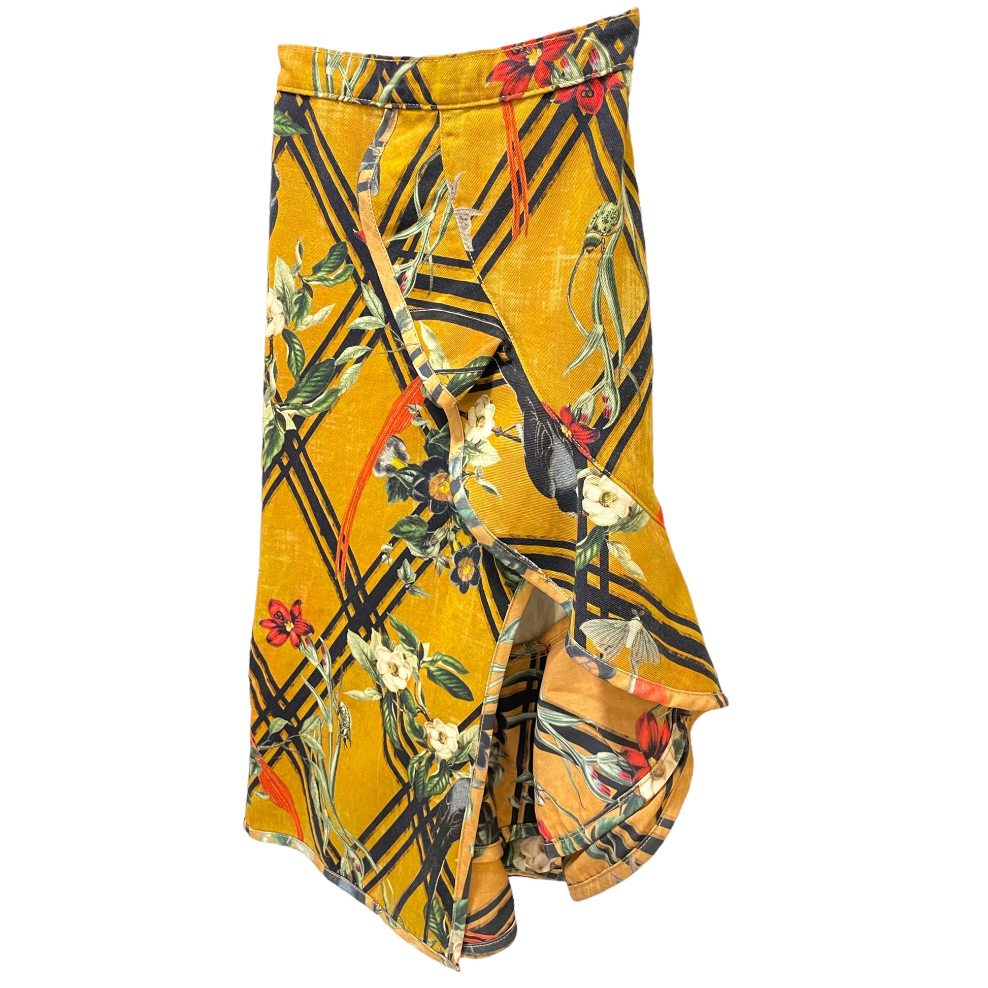 PATBO Floral Printed Knee-Length Ruffle Embellished Skirt with Slit | US 2|