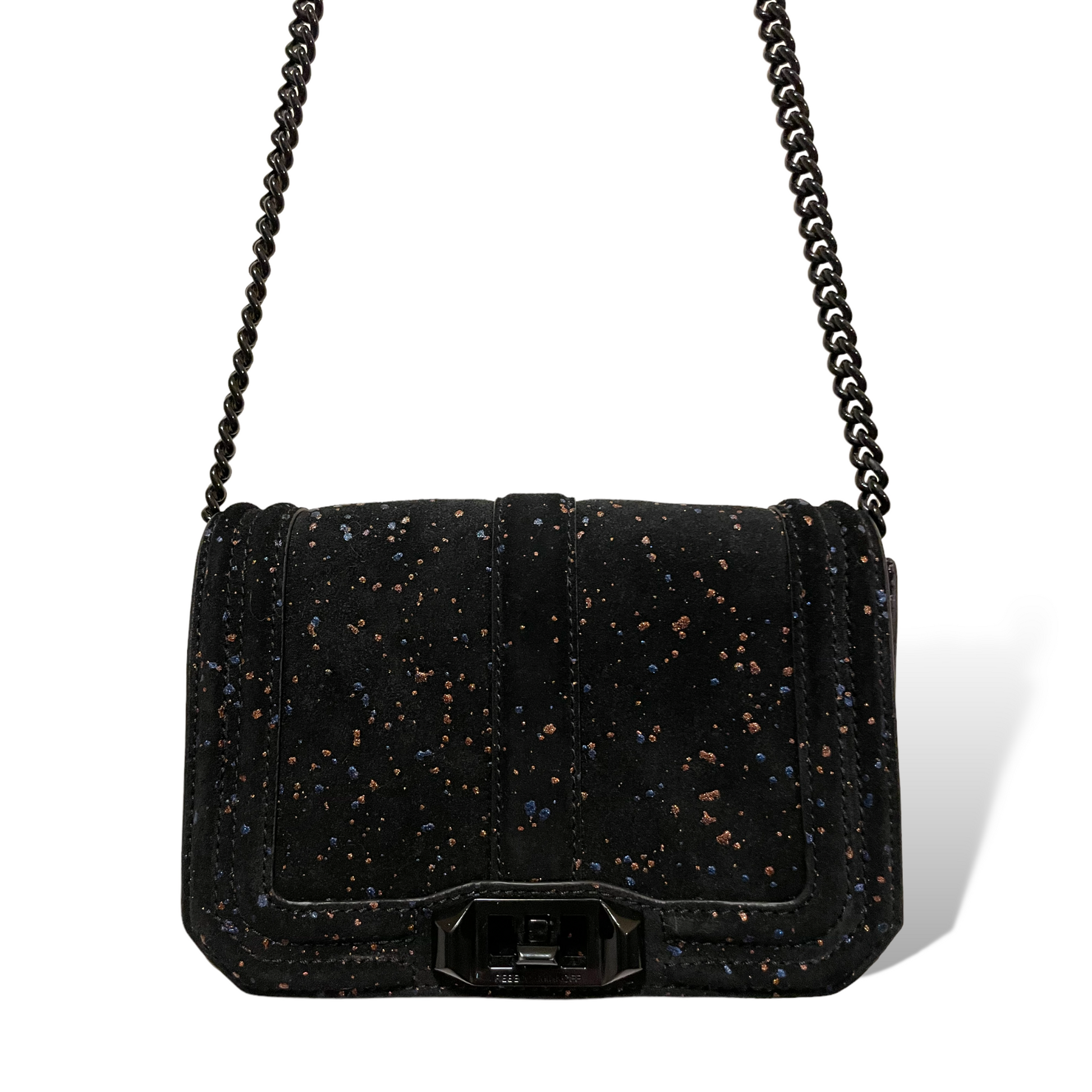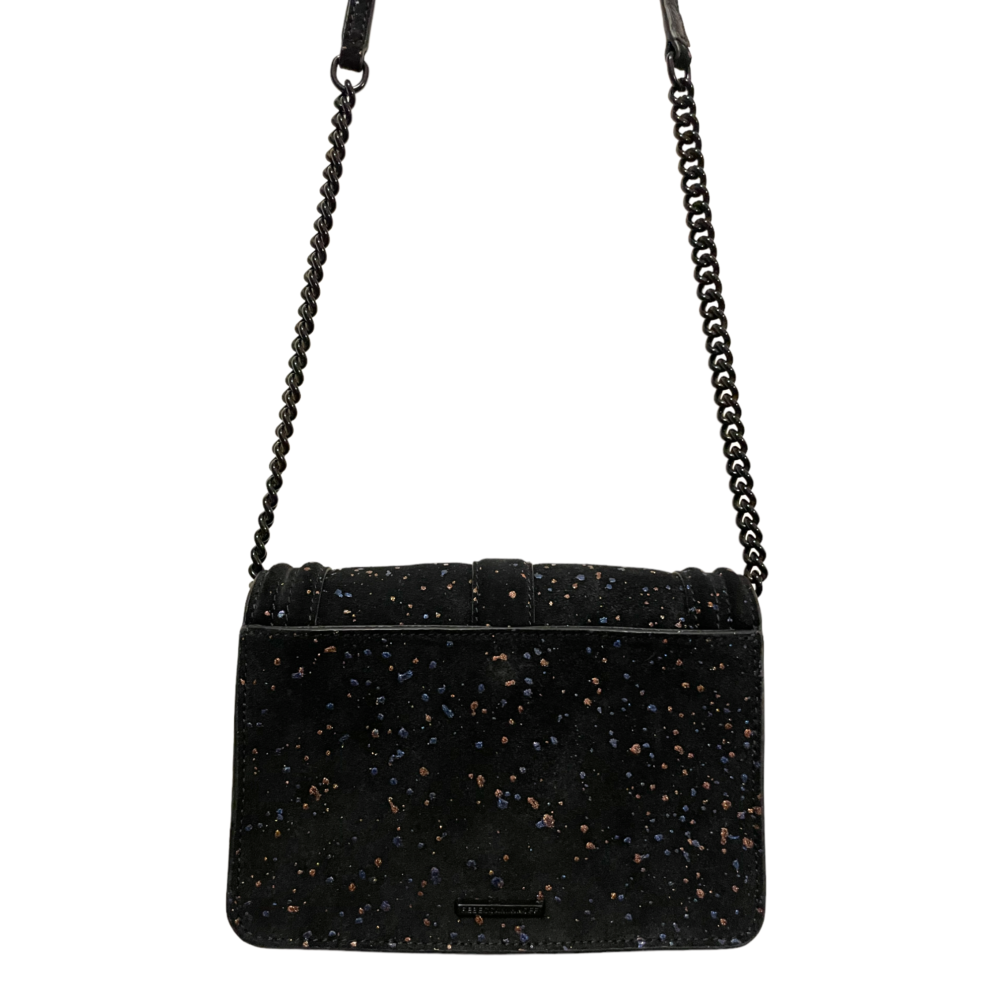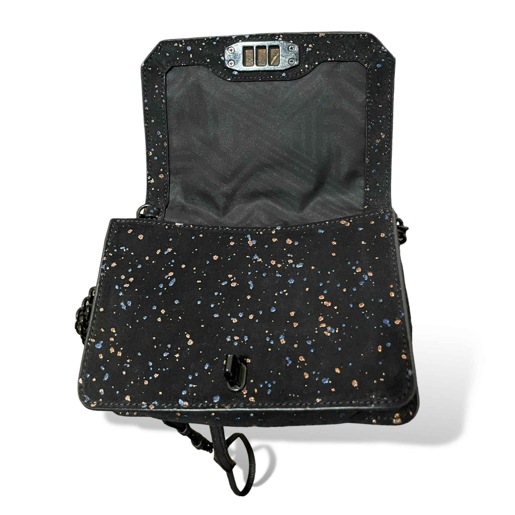 Rebecca Minkoff Black Hardware & Suede Crossbody Bag with Cobalt Blue & Rose Gold Splatter